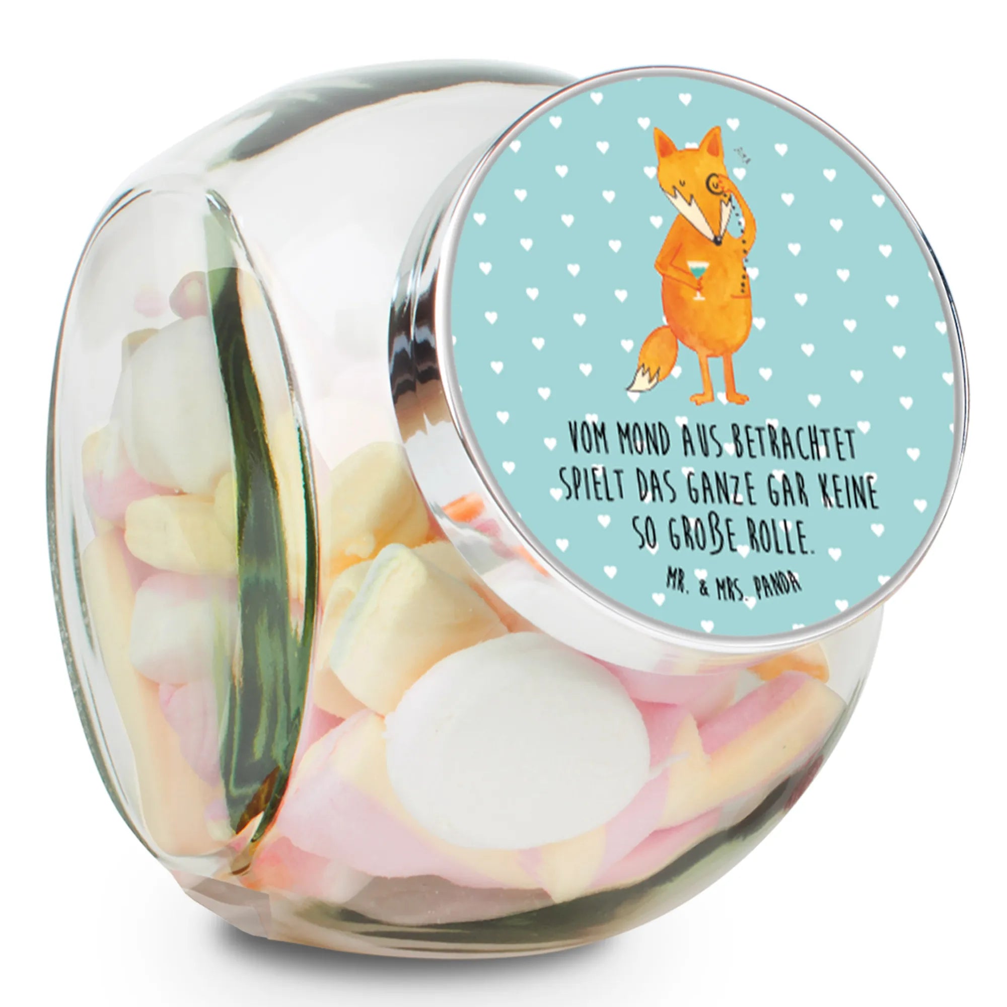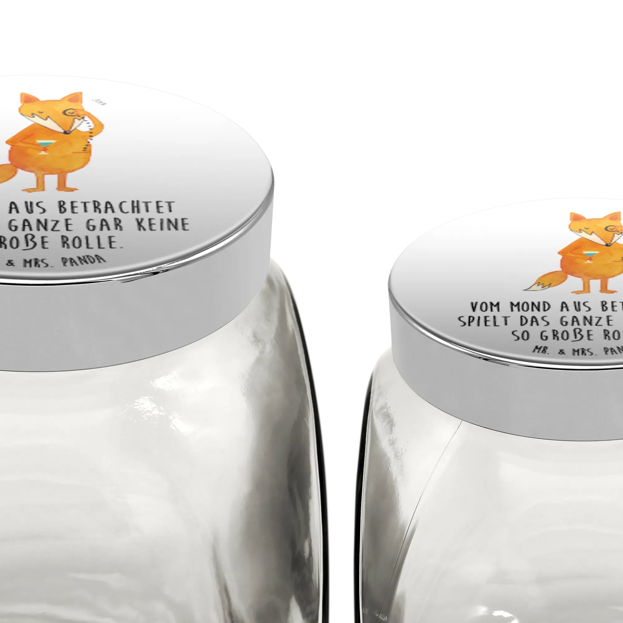 Der stattliche Fuchs mit dem Monokel verzaubert mit seinem tollen Design und den aufmunternden Worten: 'Vom Mond aus betrachtet spielt das Ganze gar keine so große Rolle.' Diese Botschaft macht das Bonbonglas nicht nur zu einem praktischen Aufbewahrungsbehälter, sondern auch zu einer liebenswerten Erinnerung daran, das Leben leicht zu nehmen.