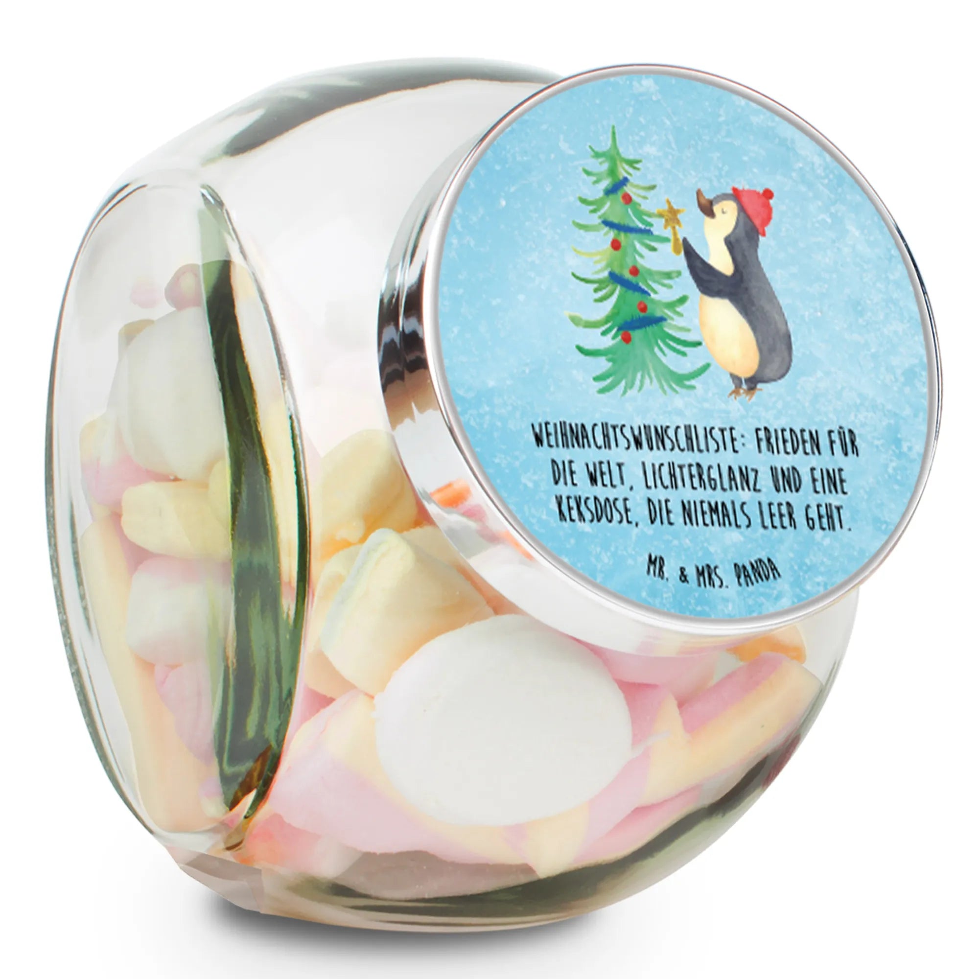Wusstest du schon, dass das wunderschöne Bonbonglas mit dem niedlichen Pinguin Weihnachtsbaum von Mr. & Mrs. Panda die perfekte Geschenkidee für die Winter- und Weihnachtszeit ist? Mit einem Füllvolumen von 2000 ml ist es der ideale Aufbewahrungsort für all deine Lieblingsleckereien, sei es für die süßen Bonbons, die frisch gebackenen Kekse oder die duftenden Teesorten. In der kalten Jahreszeit gibt es doch nichts Schöneres, als sich mit einer Tasse Tee und ein paar Plätzchen auf die Couch zu kuscheln oder die besten Freunde mit Süßigkeiten zu überraschen!
