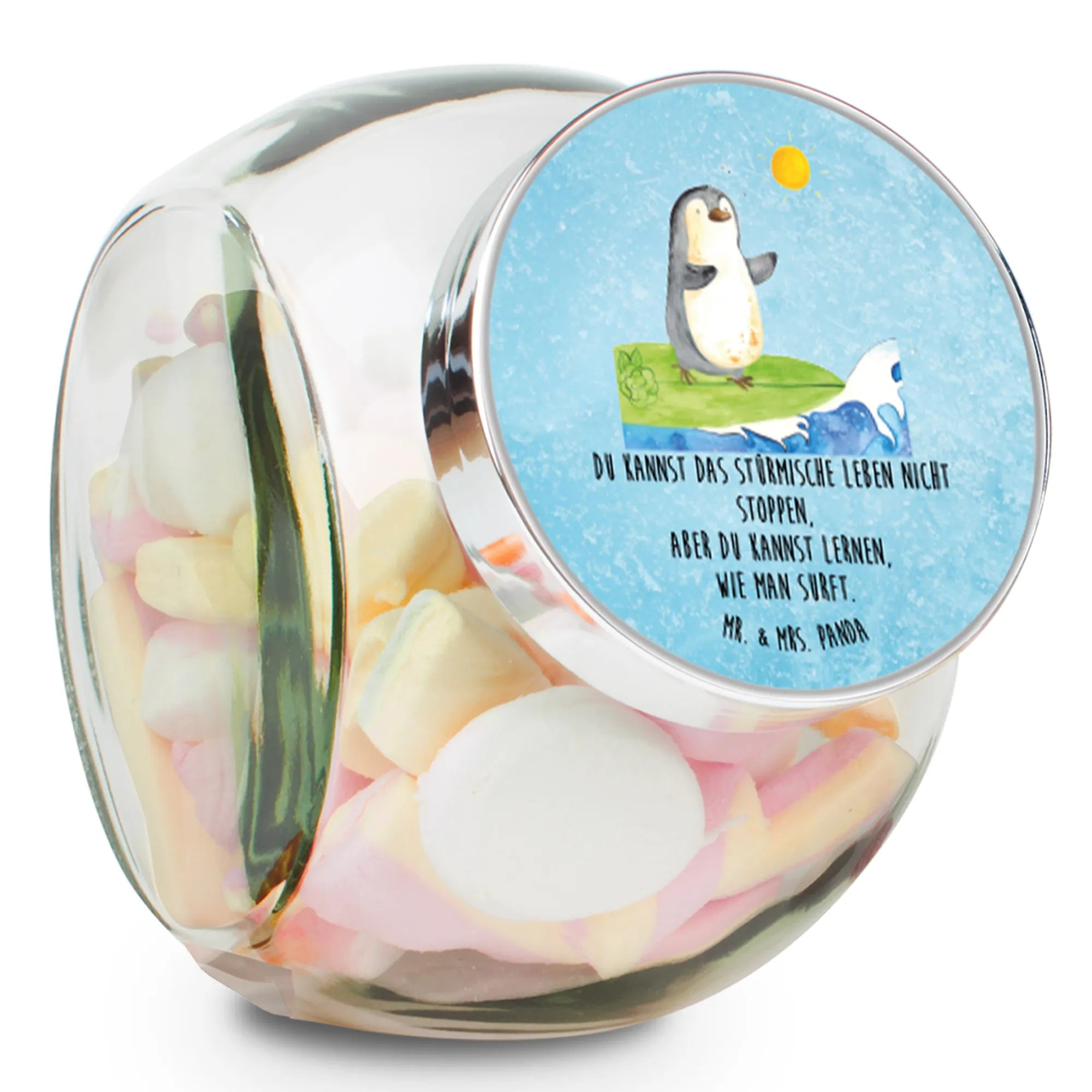 Das wunderschöne Bonbonglas mit dem süßen Pinguin Surfer-Motiv von Mr. & Mrs. Panda ist das perfekte Geschenk für alle, die das Surfleben und die coolen Pinguine lieben! 🌊