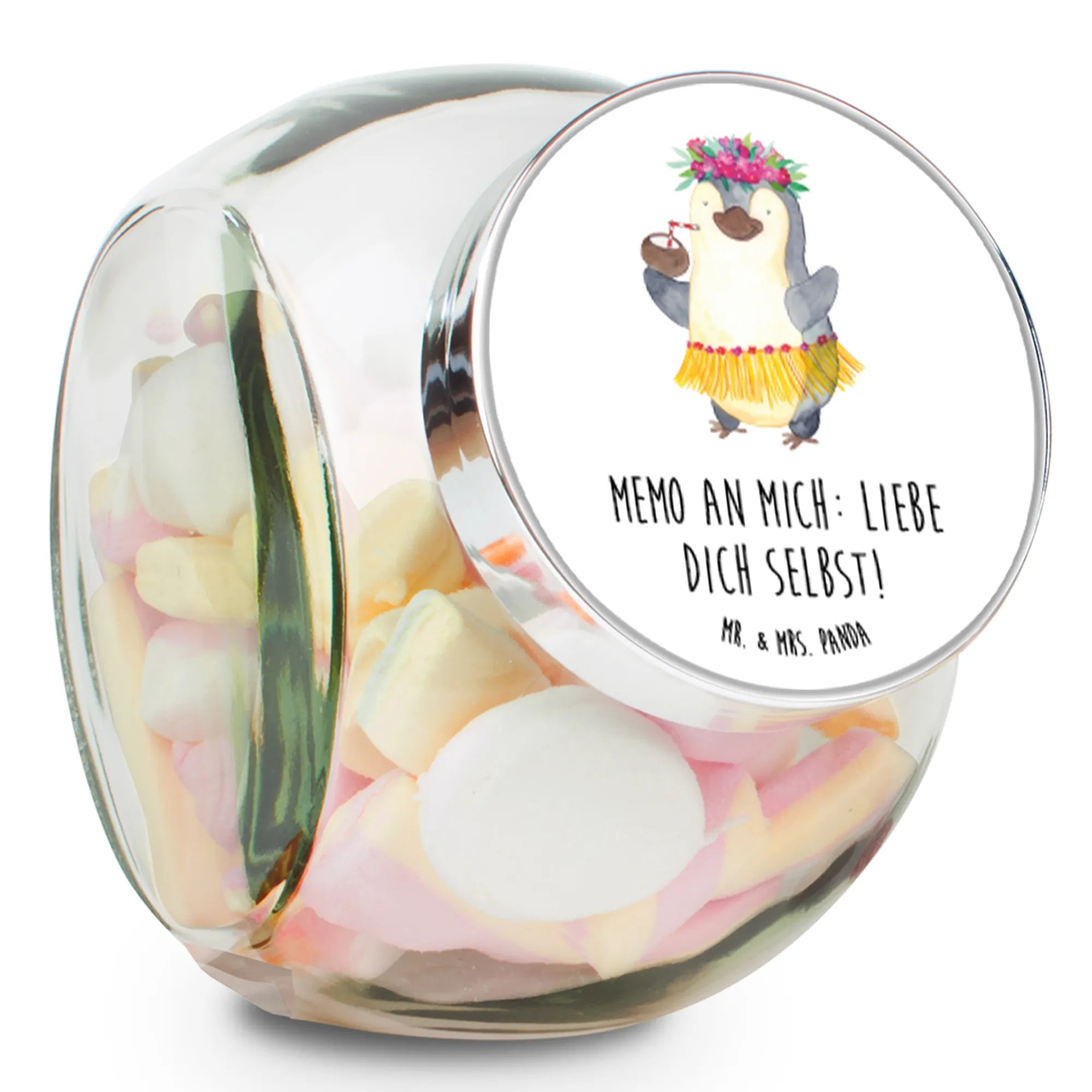 Das wunderschöne Bonbonglas mit dem fröhlichen Pinguin Kokosnuss-Motiv aus der Pinguin-Kollektion von Mr. & Mrs. Panda ist das perfekte Geschenk für jeden Anlass! Ob zum Geburtstag, zur Hochzeit oder einfach als kleine Aufmerksamkeit für deine Liebsten – dieses Glas bringt mit seinem charmanten Design und dem liebevollen Spruch "Memo an mich: Liebe dich selbst!" immer ein Lächeln ins Gesicht.
