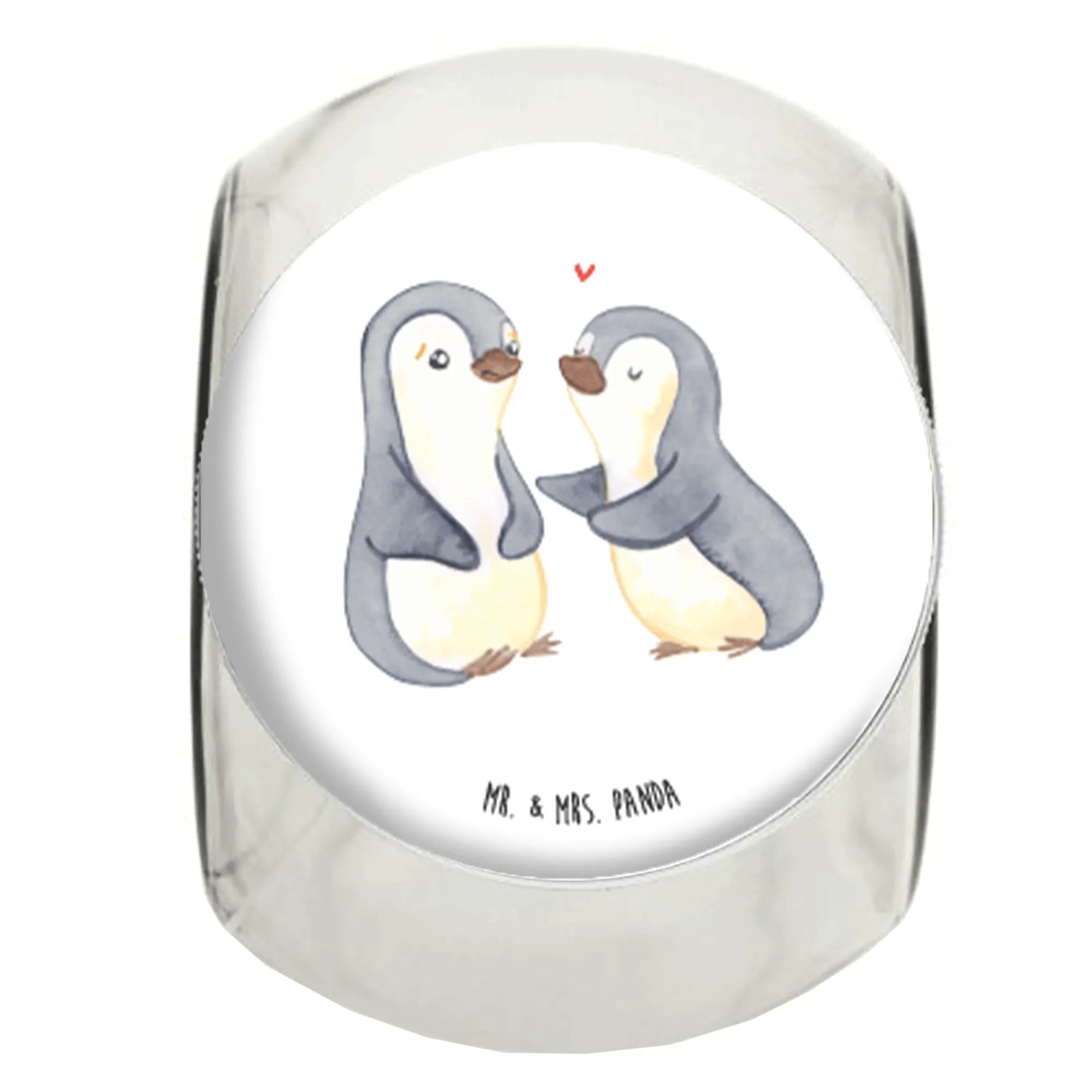 Das wunderschöne Bonbonglas mit dem Motive "Pinguine trösten" von Mr. & Mrs. Panda ist der perfekte Aufbewahrungsbehälter für Süßigkeiten, Kekse, Müsli oder Tee. Dieses hochwertige Vorratsglas wird nicht nur deine Küche verschönern, sondern sorgt auch dafür, dass Deine Leckereien frisch und aromatisch bleiben.