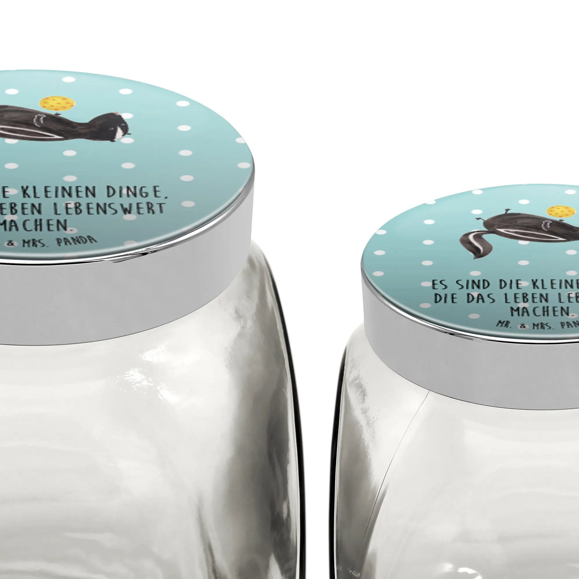Das wunderschöne Bonbonglas von Mr. & Mrs. Panda, mit dem charmanten Stinktier Ball Motiv aus der Stinktier-Kollektion, ist der perfekte Begleiter für deine Küche! Ob du nun Bonbons, Kekse, Kaffee oder Tee aufbewahren möchtest, diesem Glas hält alles frisch und aromatisch. Das süße Stinktier lächelt fröhlich und bringt eine verspielte Note in dein Zuhause. Mit einer Füllmenge von 2000 ml hast du genug Platz für all deine Lieblingssnacks und Vorräte.