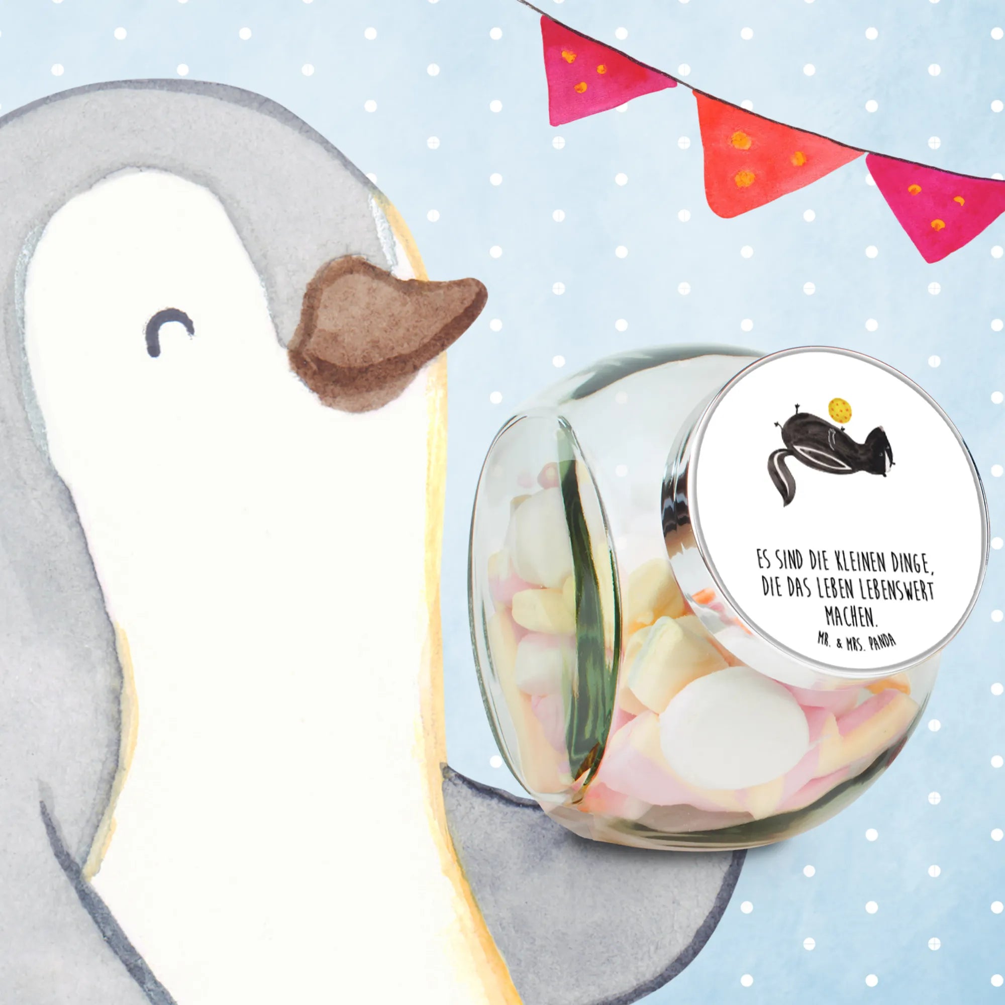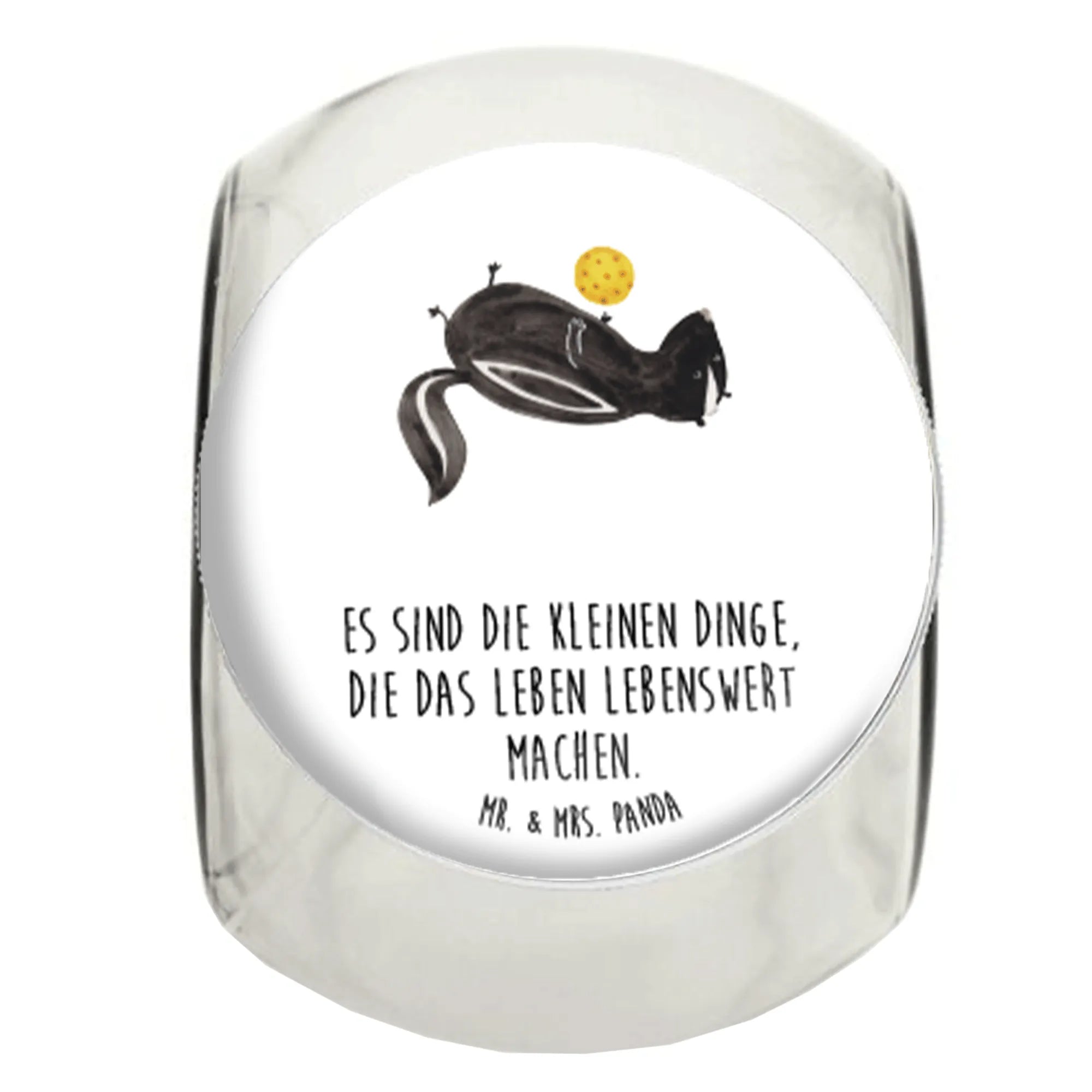 Das Bonbonglas mit dem süßen Stinktier Ball von Mr. & Mrs. Panda ist das perfekte Geschenk für alle, die das Leben in vollen Zügen genießen wollen. Durch das fröhliche Design, das ein charmantes Stinktier zeigt, das ausgelassen mit einem Ball spielt, zaubert es jedem ein Lächeln ins Gesicht. Ein echtes Highlight in jeder Küche oder im Kinderzimmer!