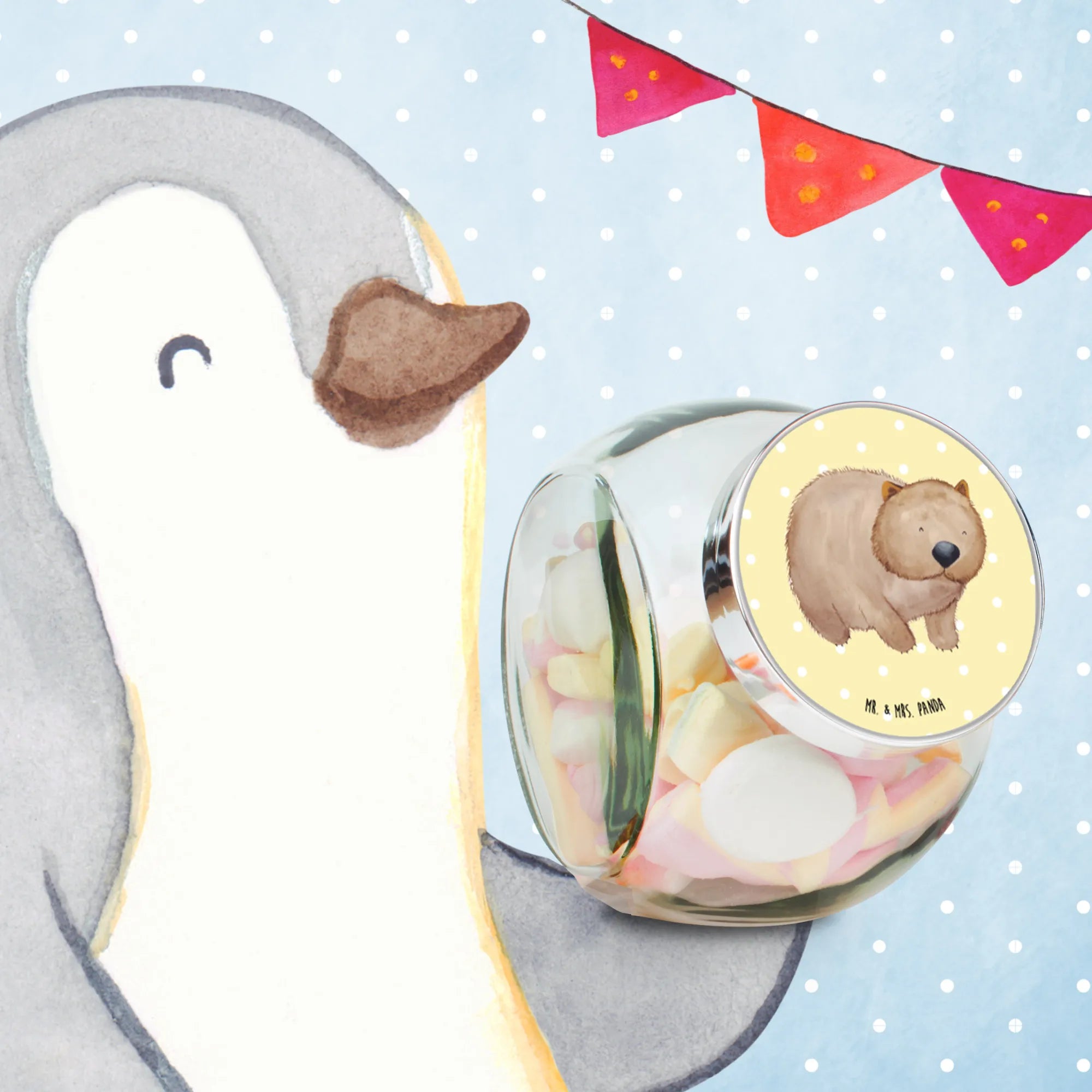 Słoik na cukierki Wombat - L 870ml - z napisem - Pastelowy żółty