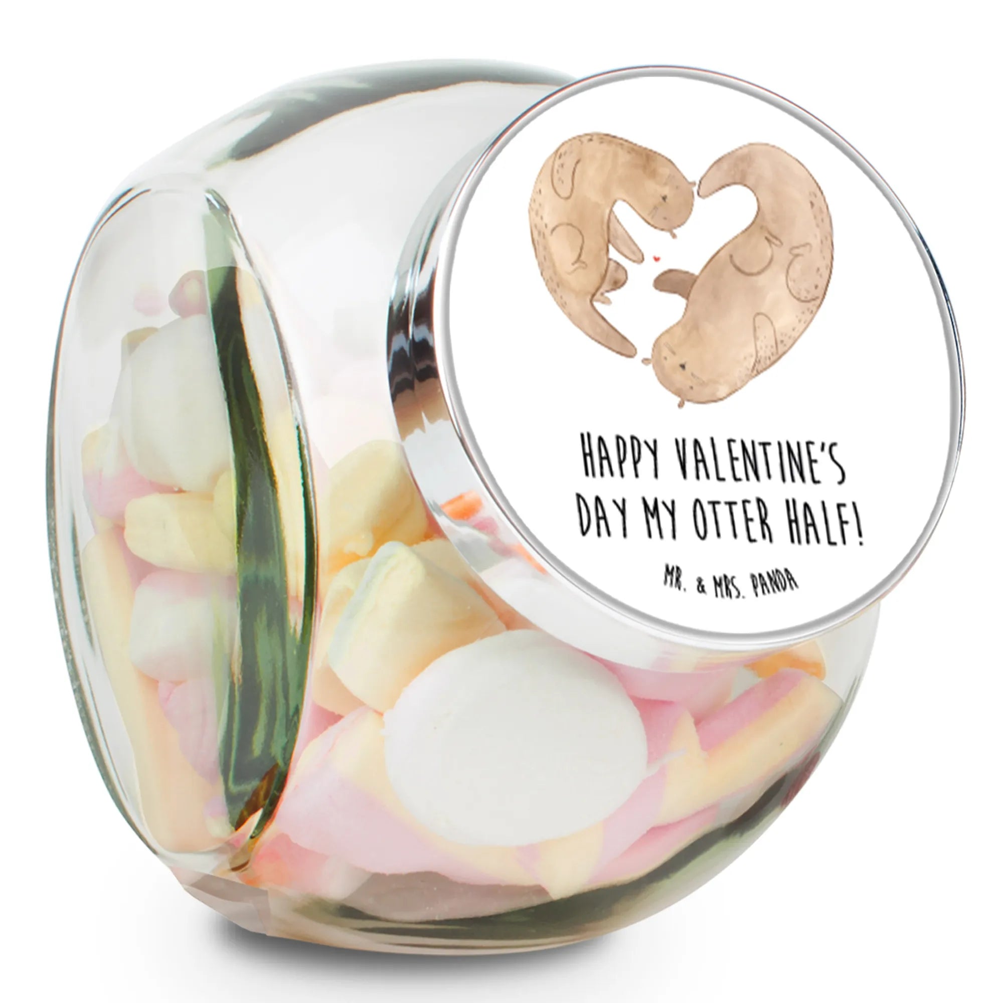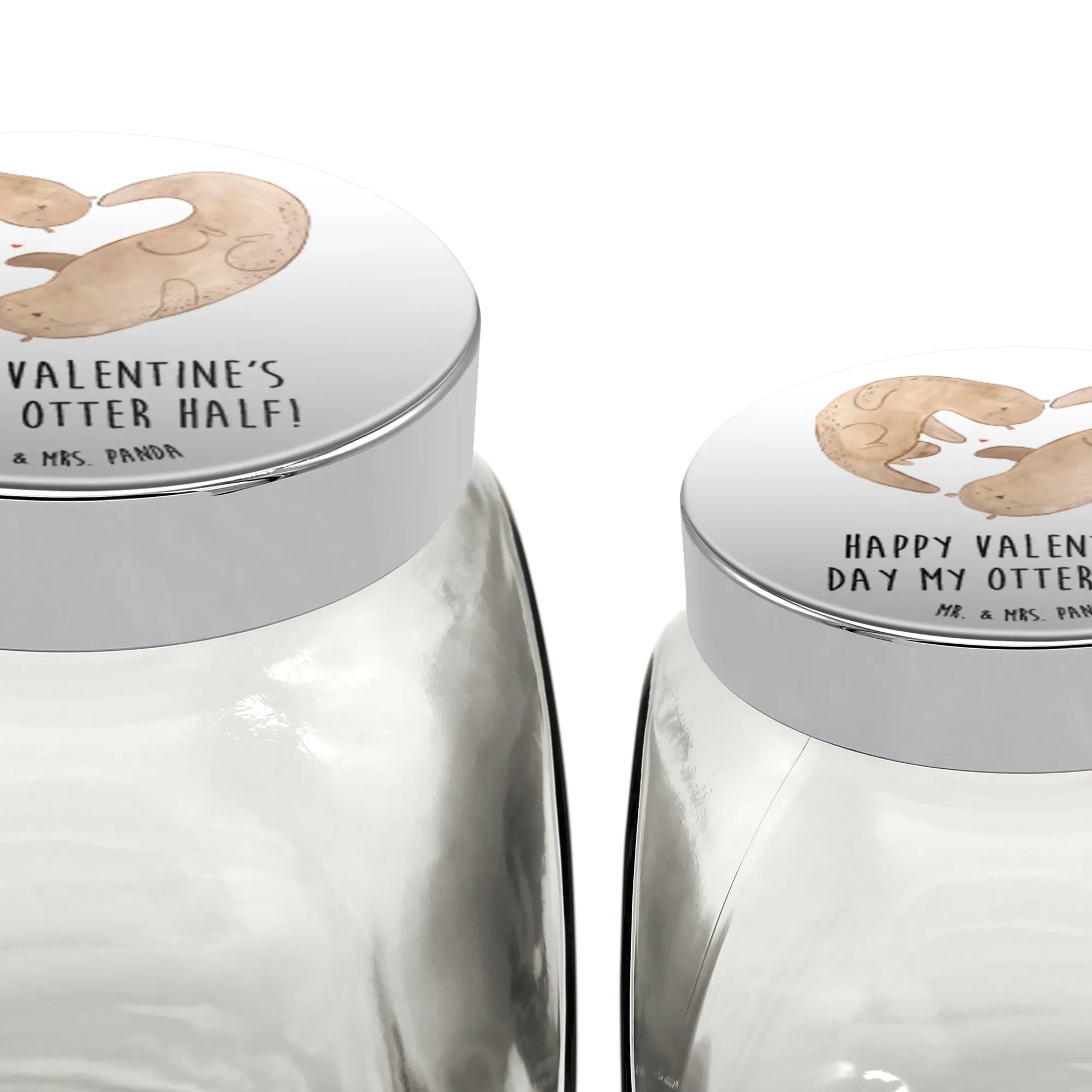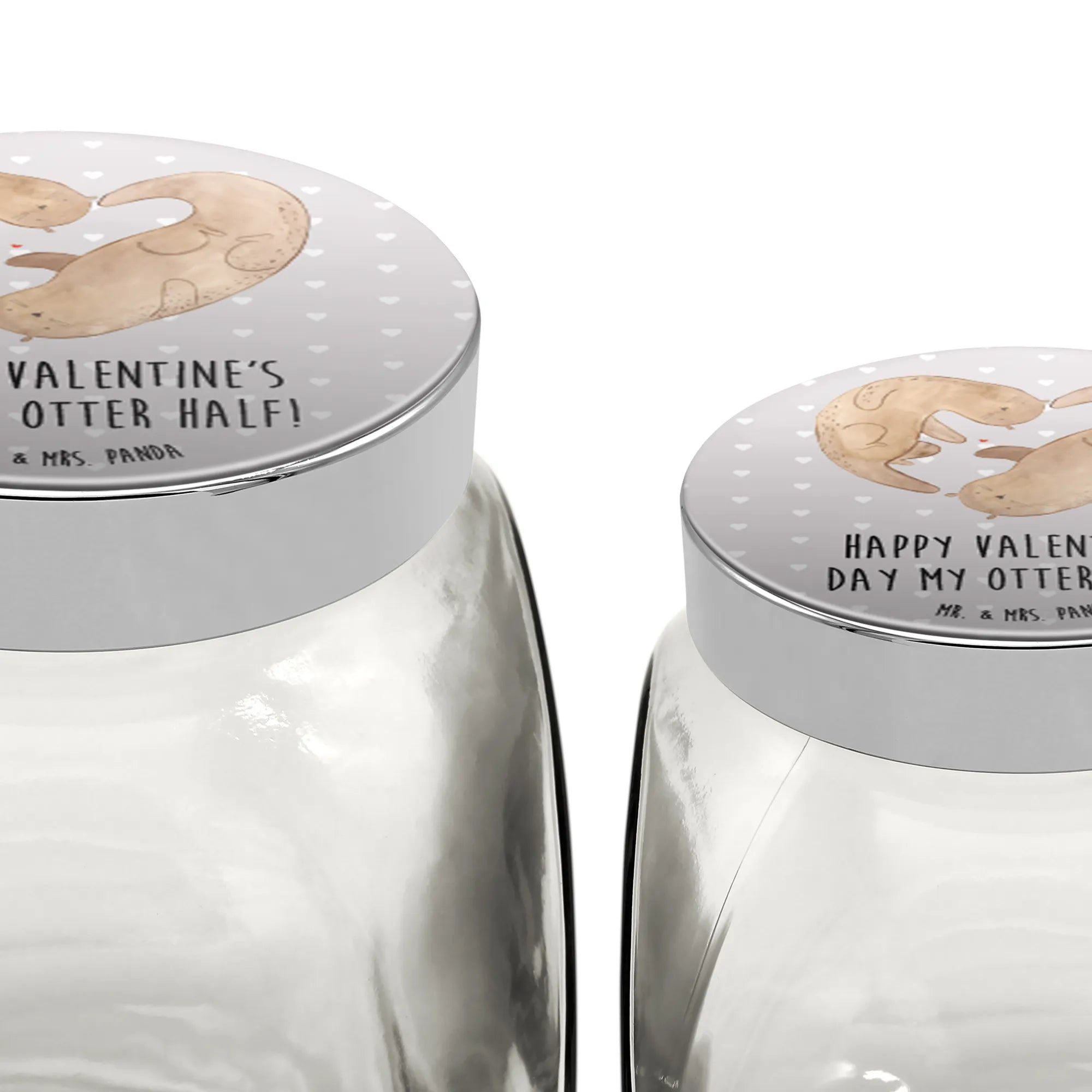 Das wunderschöne Bonbonglas von Mr. & Mrs. Panda, bedruckt mit dem zauberhaften Motiv "Otter Valentine", ist das perfekte Geschenk für jeden Anlass. Egal ob Valentinstag, Hochzeitstag oder einfach als liebevolles Mitbringsel für deine Freundin oder deinen Freund - dieses Glas zaubert jedem ein Lächeln ins Gesicht. Die zwei süßen Otter, die sich an den Händen halten und ein herzförmiges Motiv bilden, strahlen pure Zuneigung aus. Die warmen Brauntöne und die sanften Gesichtszüge der Otter schaffen eine Atmosphäre der Verbundenheit und Zärtlichkeit.