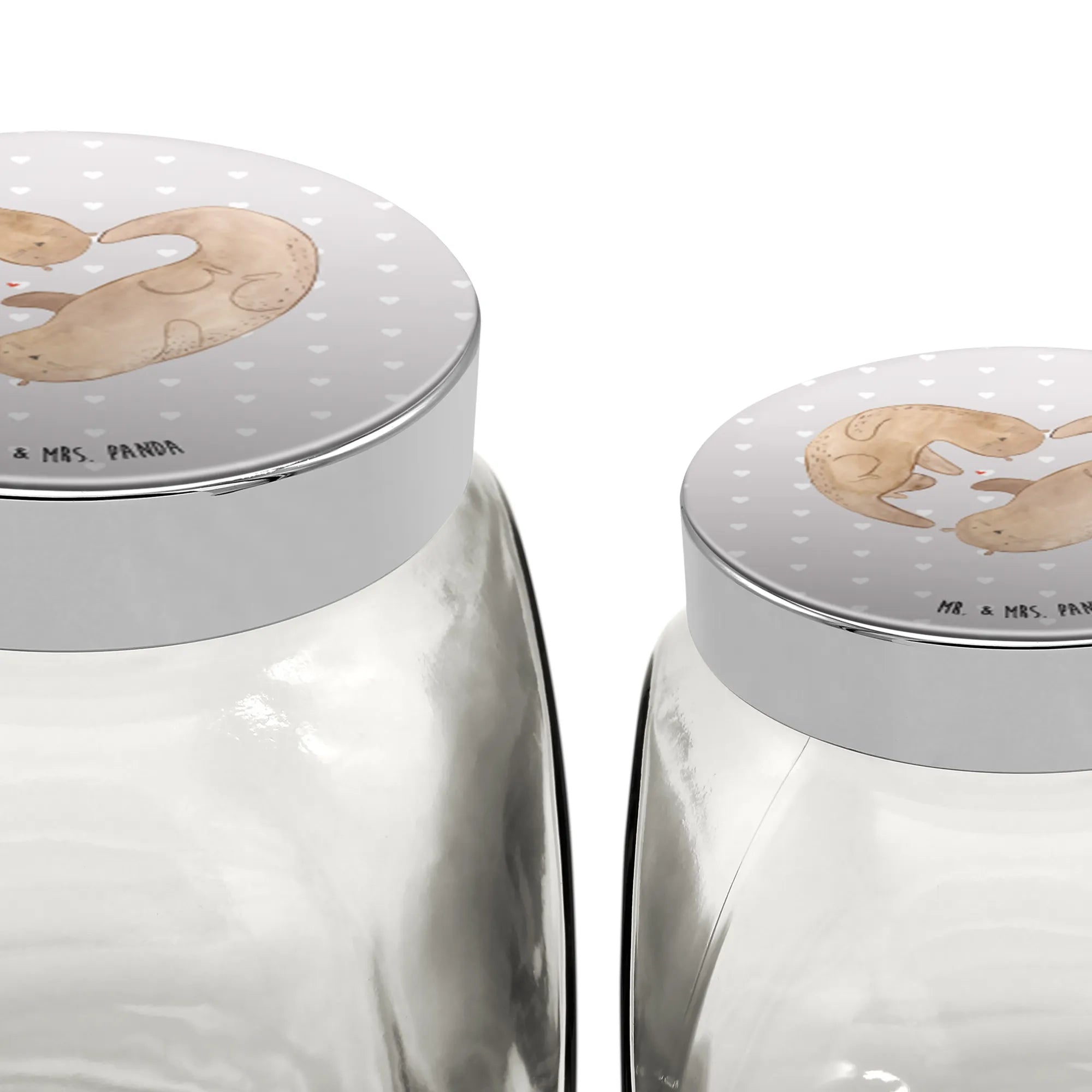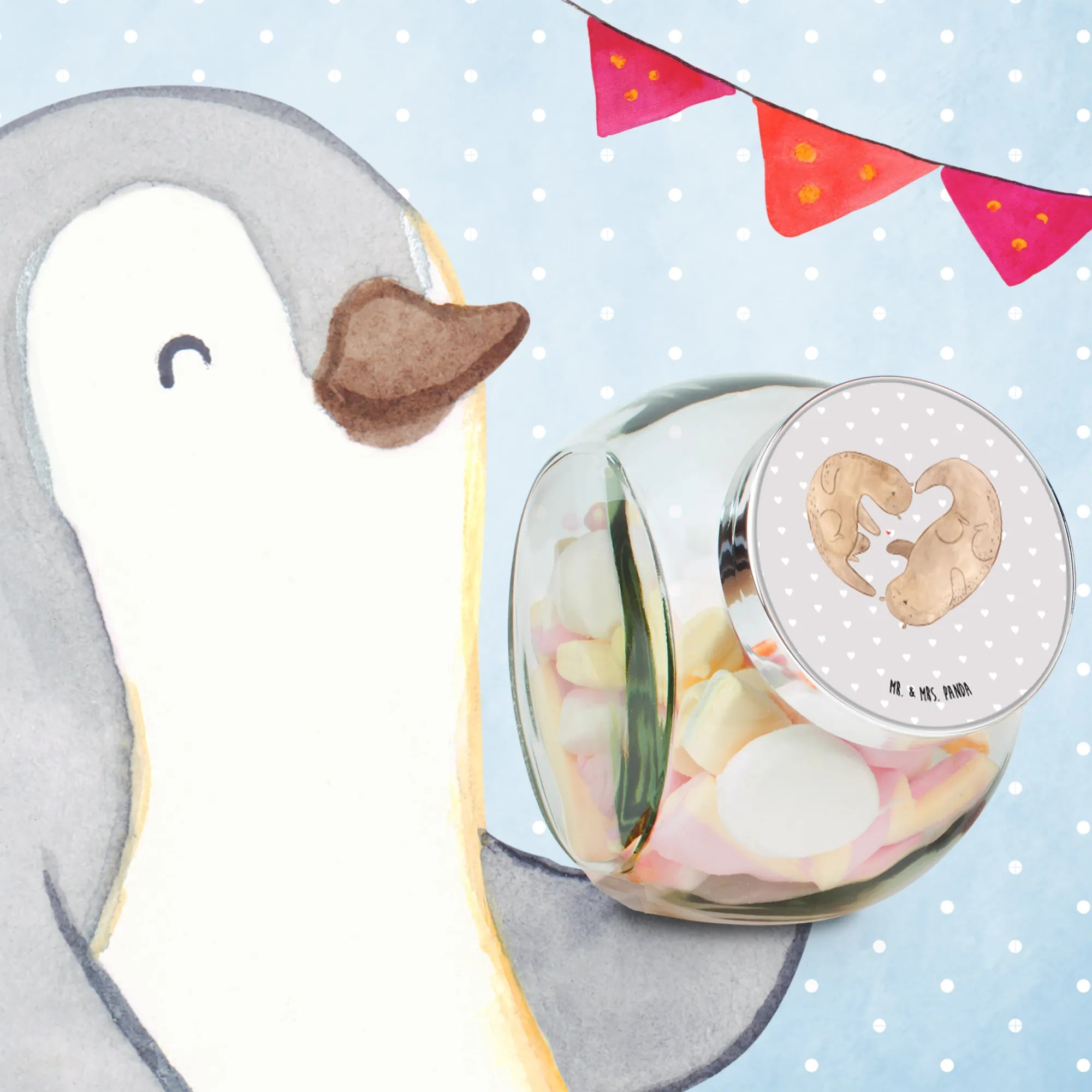 Das wunderschöne Bonbonglas mit dem Motive von Mr. & Mrs. Panda ist das perfekte Geschenk für verliebte Paare und süße Naschkatzen. Es zaubert nicht nur ein Lächeln ins Gesicht, sondern bietet auch eine stilvolle Möglichkeit, Süßigkeiten, Kekse, Müsli, Tee oder Gewürze aufzubewahren. Die superschöne Illustration von zwei Ottern, die sich an den Pfoten halten und so ein Herz bilden, ist nicht nur niedlich, sondern erzählt auch eine süße Liebesgeschichte.