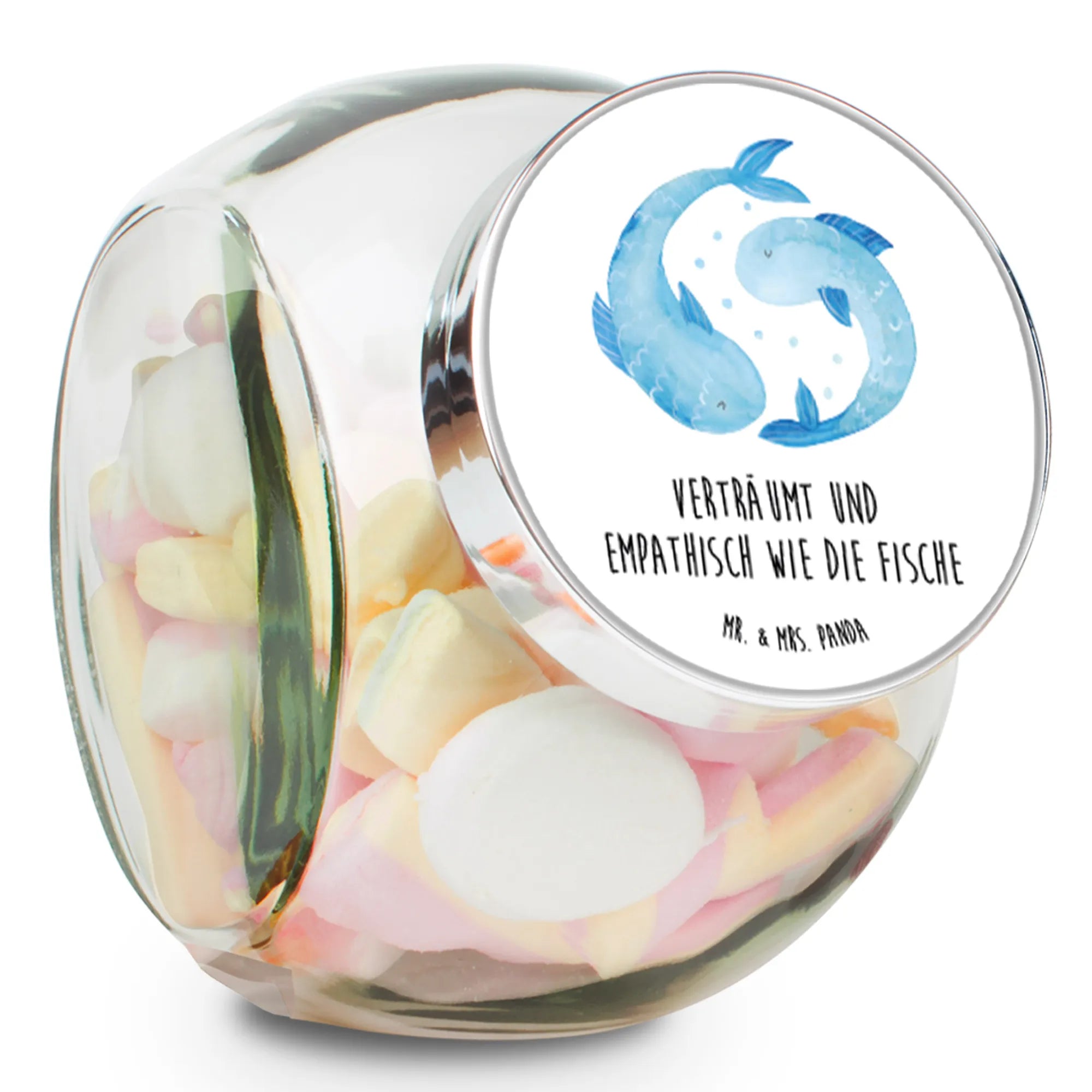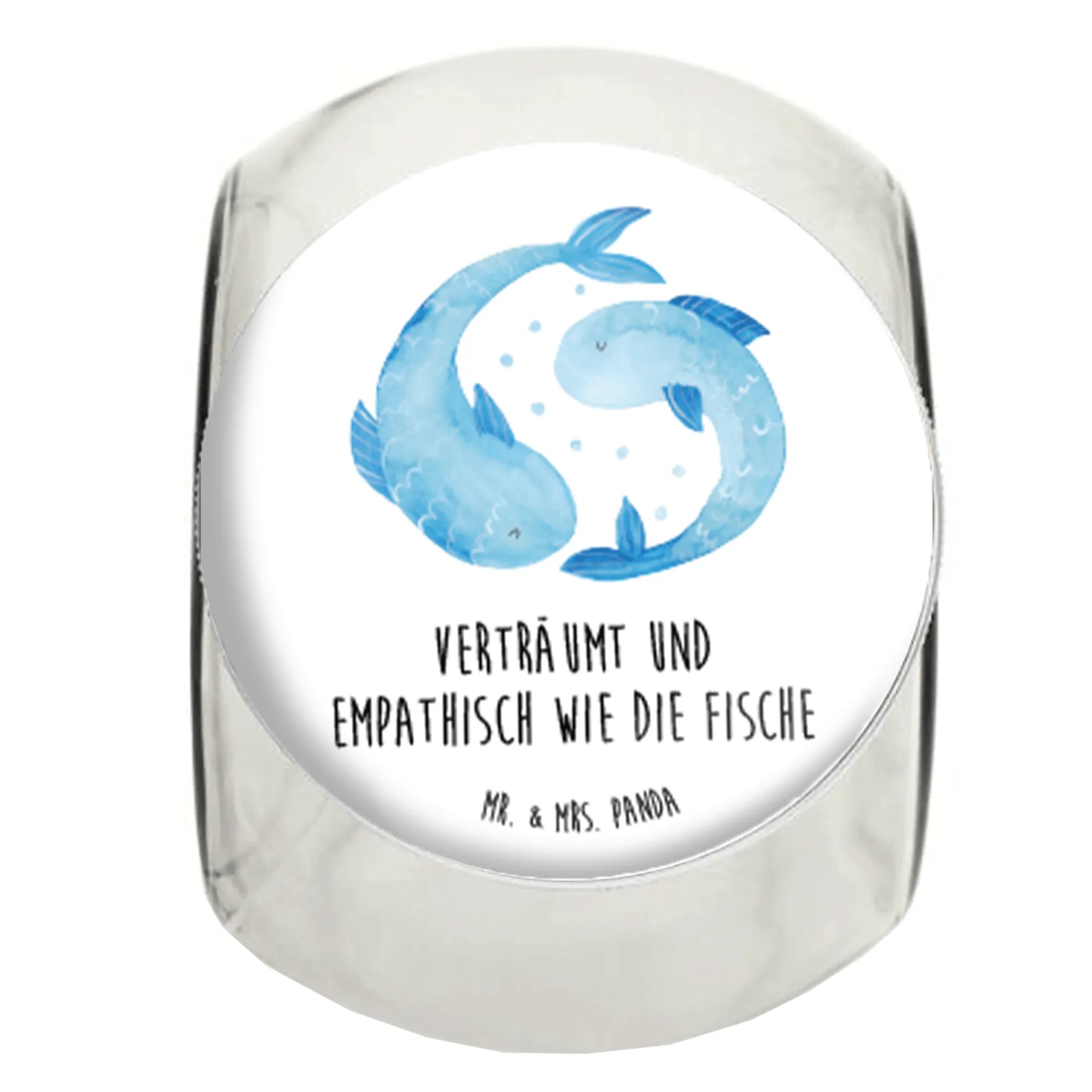 Das wunderschöne Bonbonglas mit dem Motiv "Sternzeichen Fische" von Mr. & Mrs. Panda ist das ideale Geschenk für alle, die in den Monaten Februar und März geboren wurden. Mit einem Füllvolumen von 870 ml ist es perfekt geeignet, um deine Süßigkeiten, Kekse oder Gewürze stilvoll zu präsentieren.