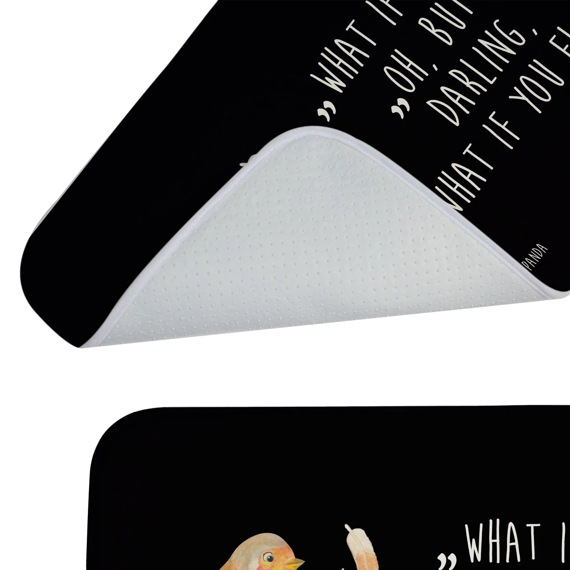 dywanik łazienkowy rudzik Pióra - z napisem - Czarny