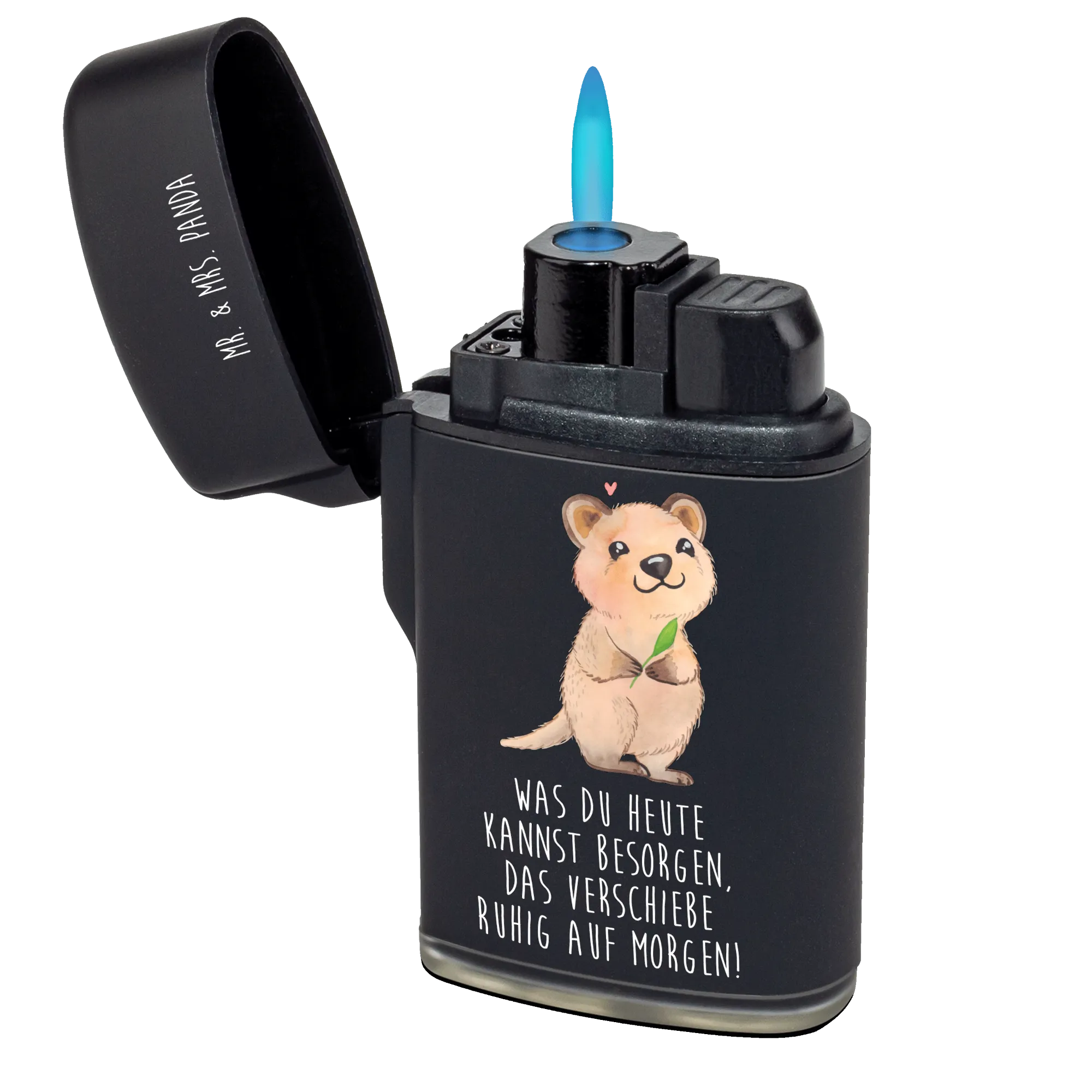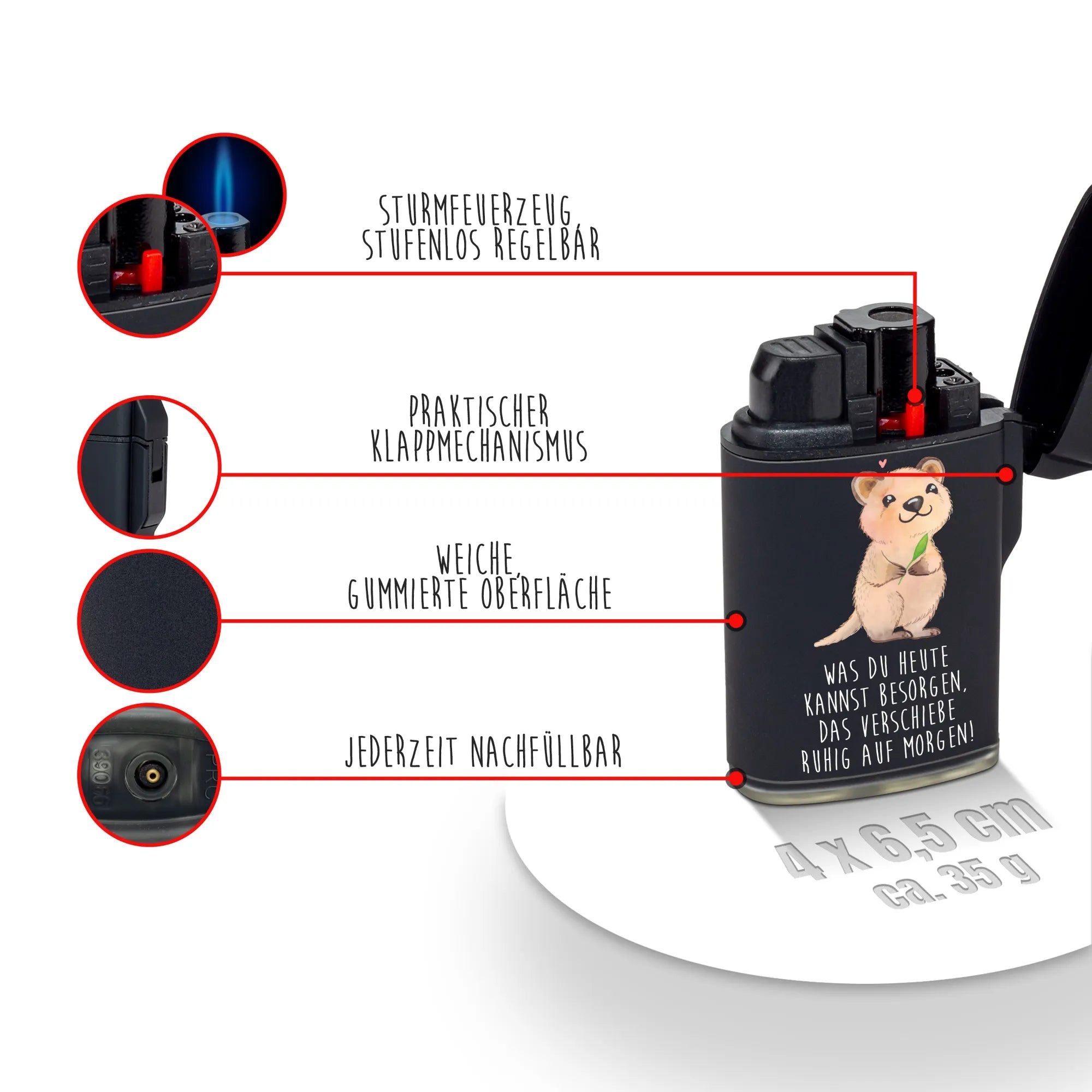 Mit seinem niedlichen Quokka-Motiv und dem witzigen Spruch "Was du heute kannst besorgen, das verschiebe ruhig auf morgen!" bringt es nicht nur gute Laune, sondern motiviert auch dazu, die Dinge endlich anzugehen. Das Feuerzeug ist hochwertig aus Kunststoff mit einem angenehmen Gummi-Sleeve gefertigt und liegt super in der Hand.