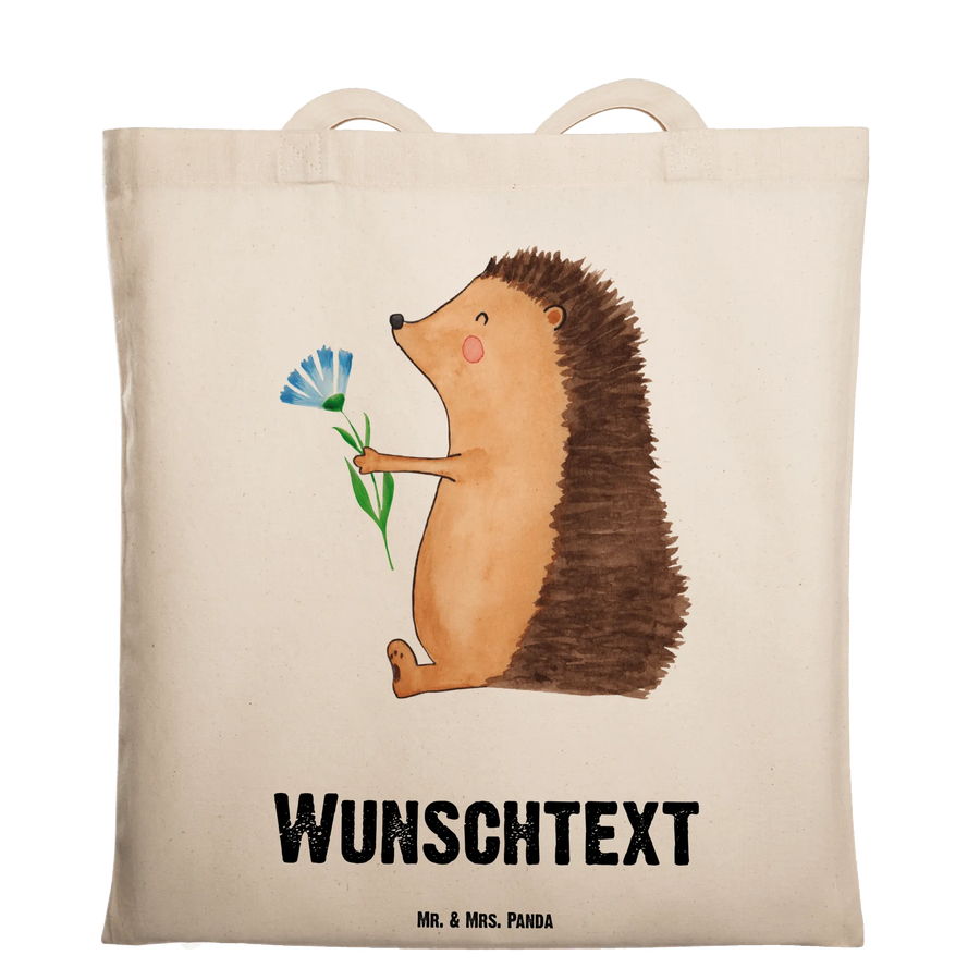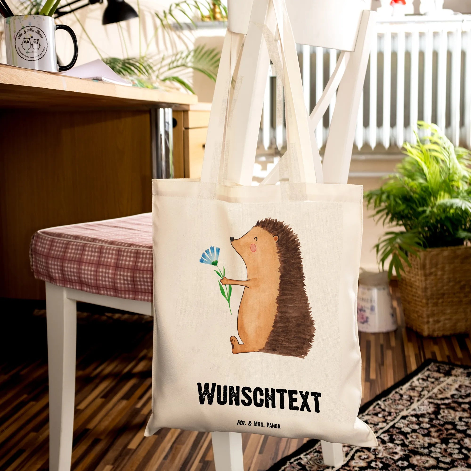 Personalisierte Tragetasche Igel mit Blume - Transparent