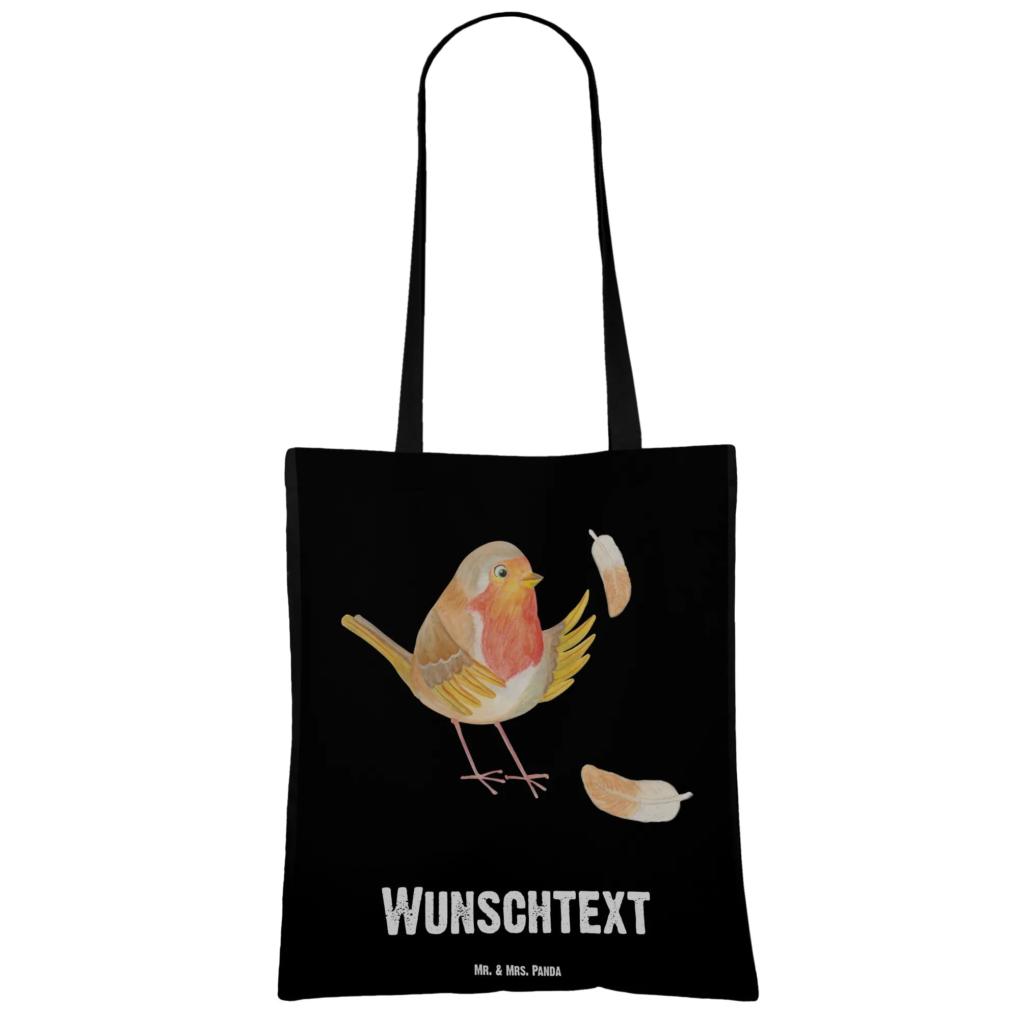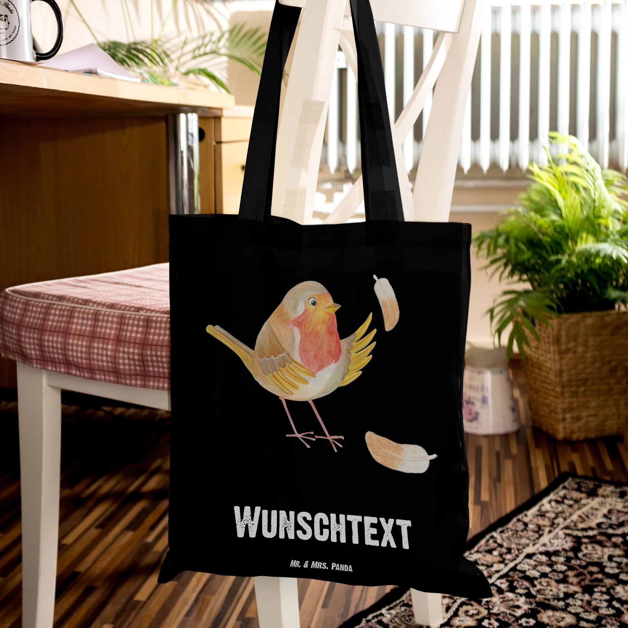 Personalisierte Tragetasche Rotkehlchen mit Federn - Schwarz