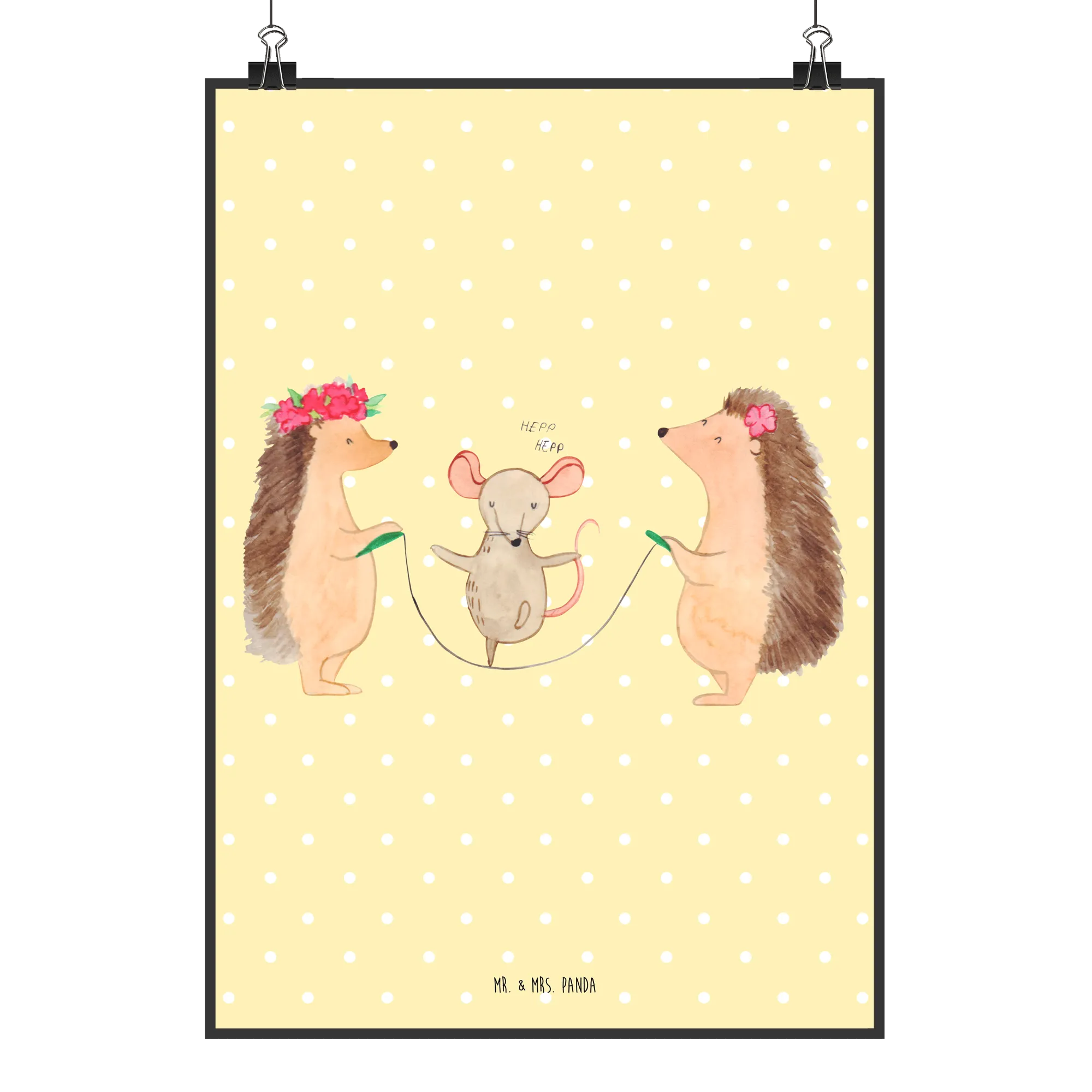 Plakat jeż Skakanie na skakance - DIN A5 - z napisem - biały
