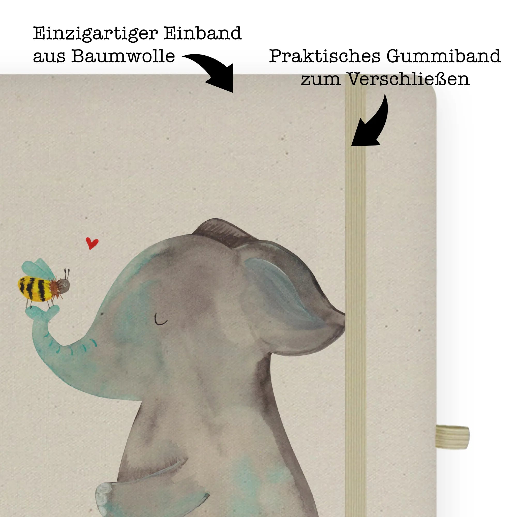 słoń pszczoła - DIN A5 Baumwoll Notizbuch - z napisem