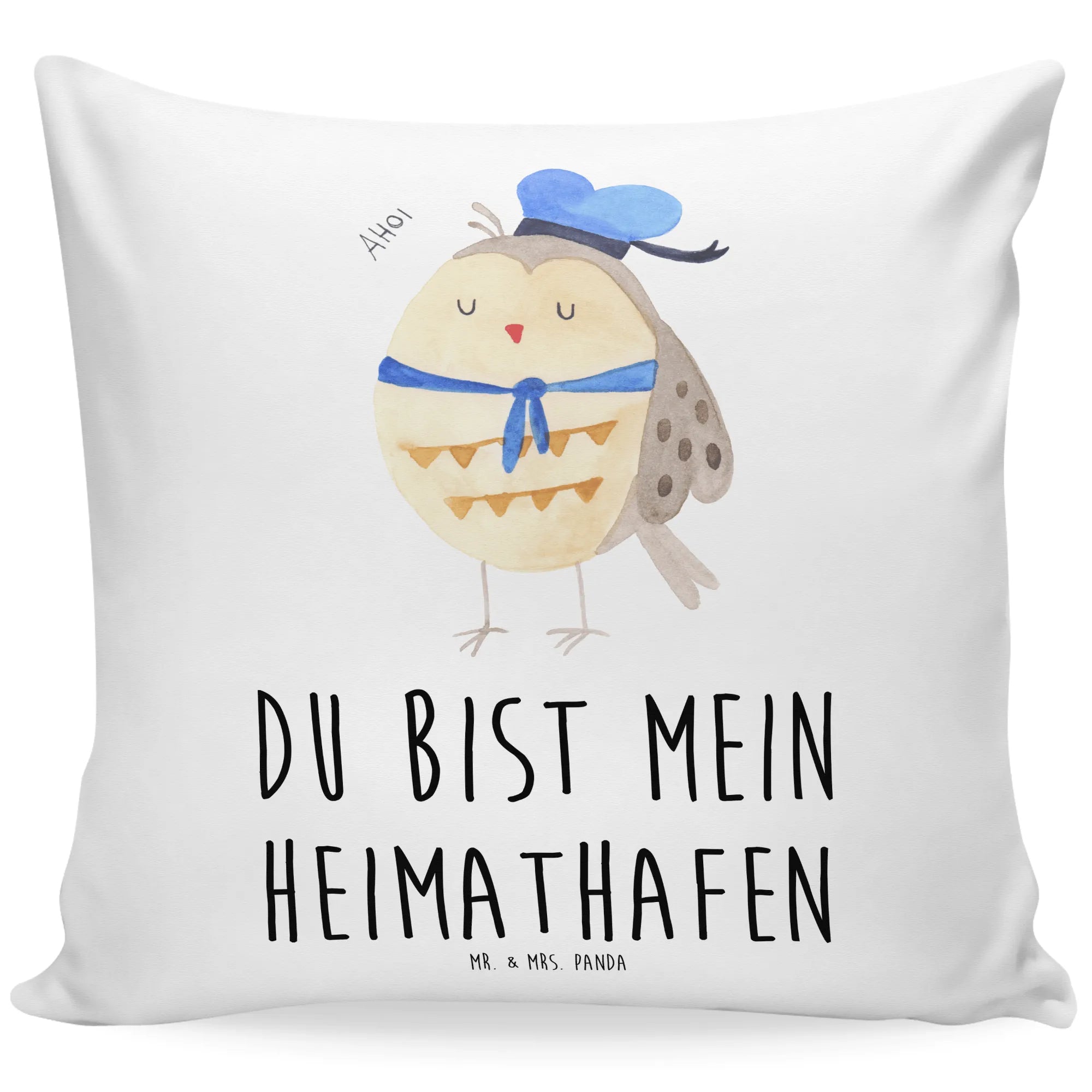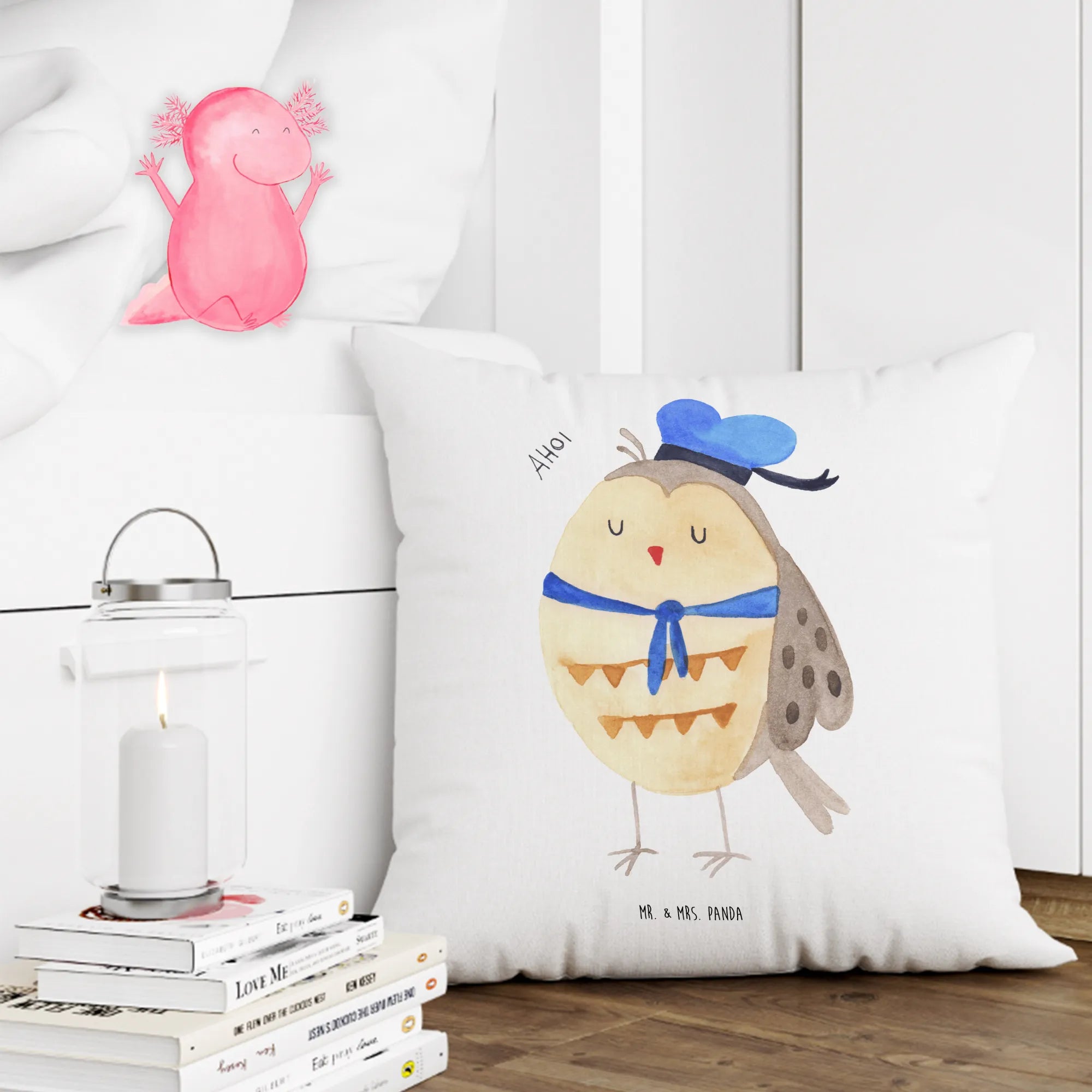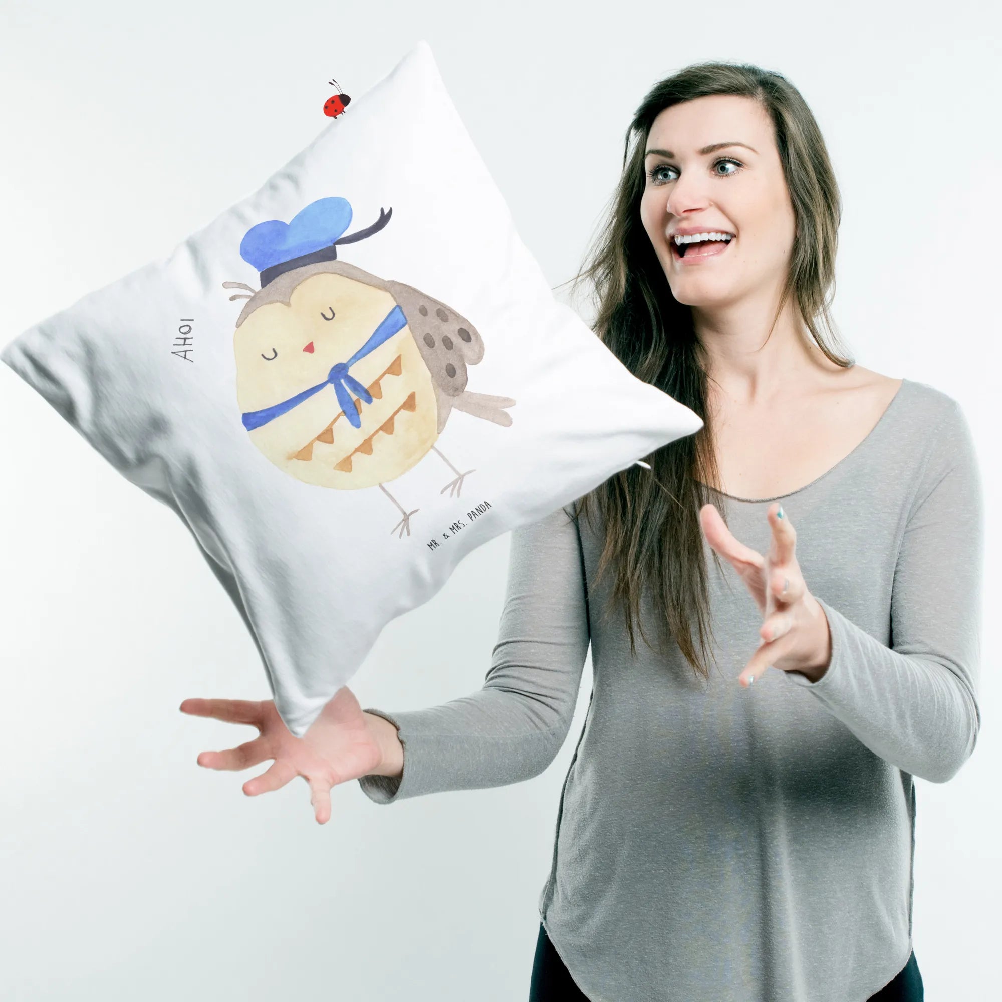 40x40 poduszka sowa Marynarz - z napisem - Biały