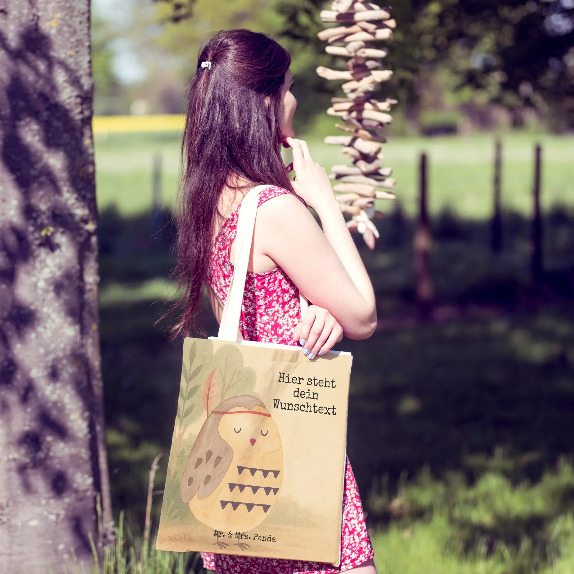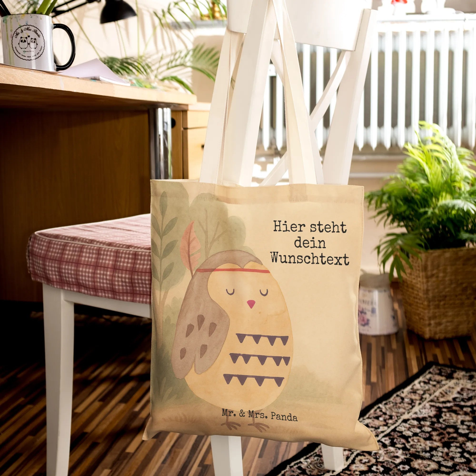 Personalisierte Einkaufstasche Eule Federschmuck Design – Mr. & Mrs. Panda