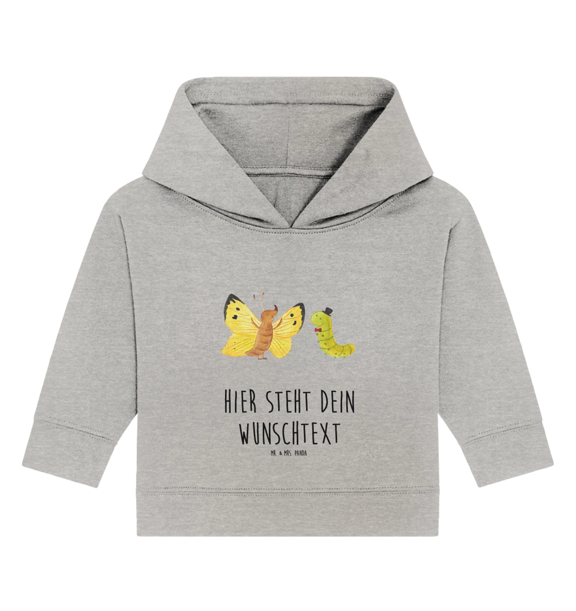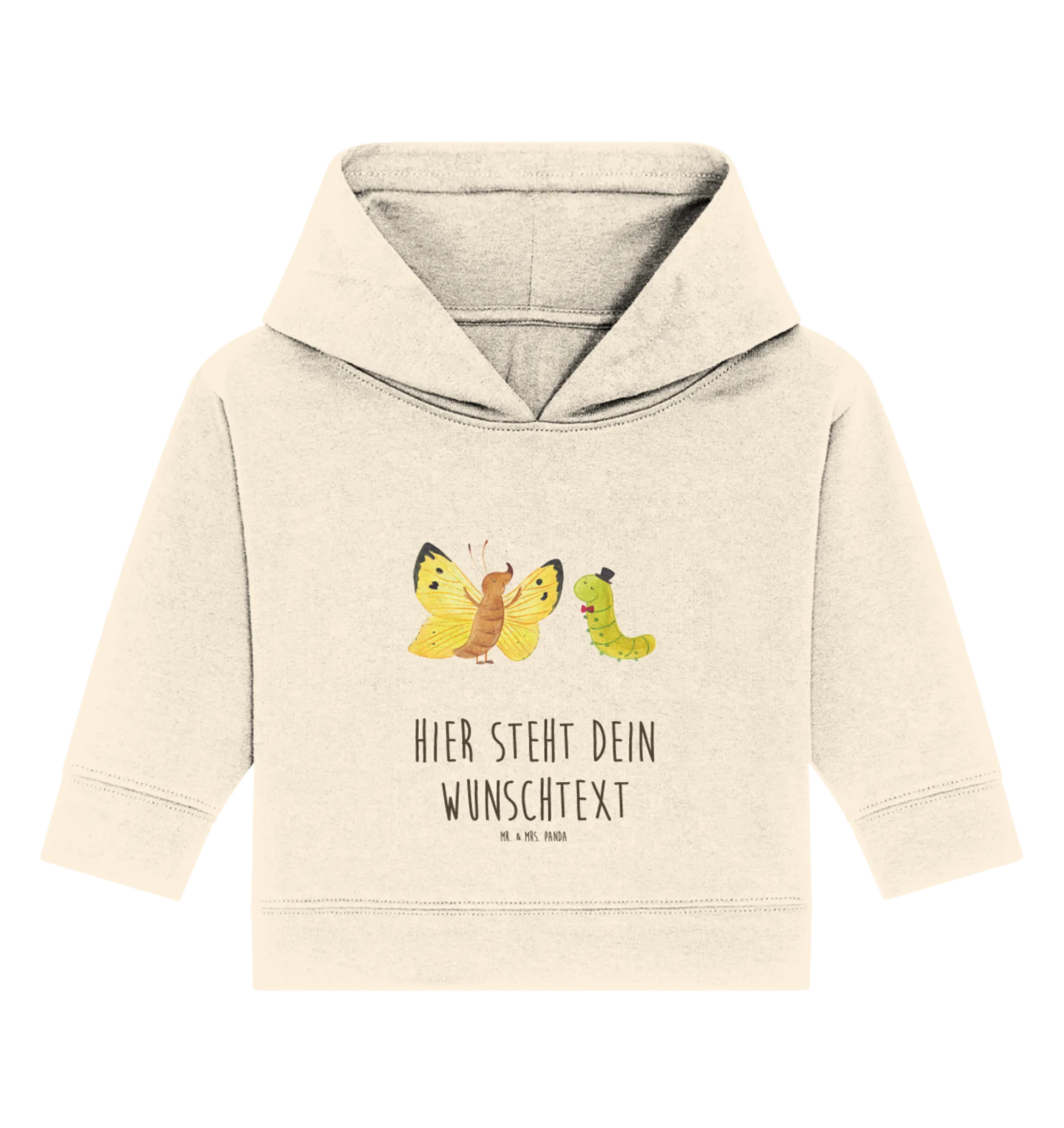 Der personalisierte Baby Hoodie mit dem lustigen Motiv von Raupe und Schmetterling aus der Small World Kollektion von Mr. & Mrs. Panda ist das perfekte Geschenk für alle kleinen Abenteurer! 🎉