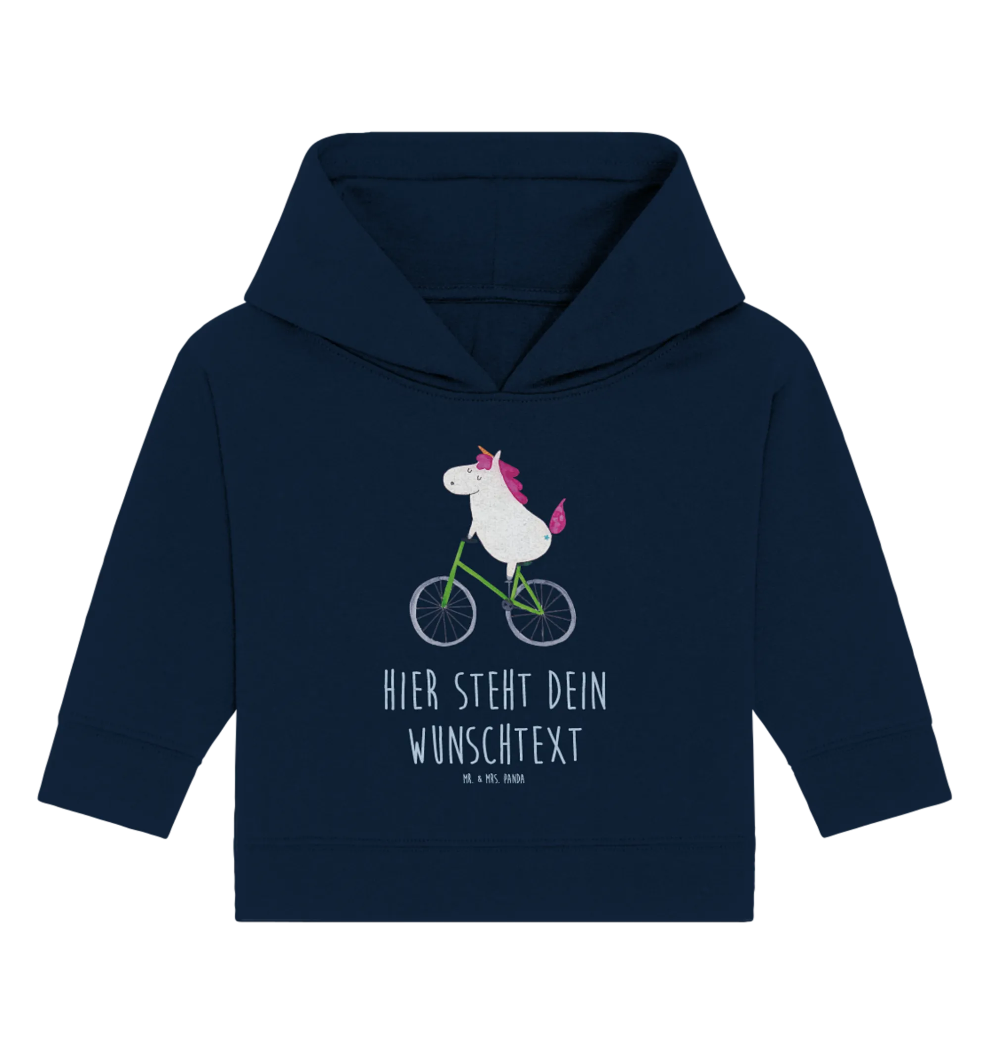 Der personalisierte Baby Hoodie mit dem zauberhaften Einhorn Radfahrer aus unserer Einhorn - Kollektion ist das perfekte Geschenk für kleine Abenteurer und ihre Eltern!