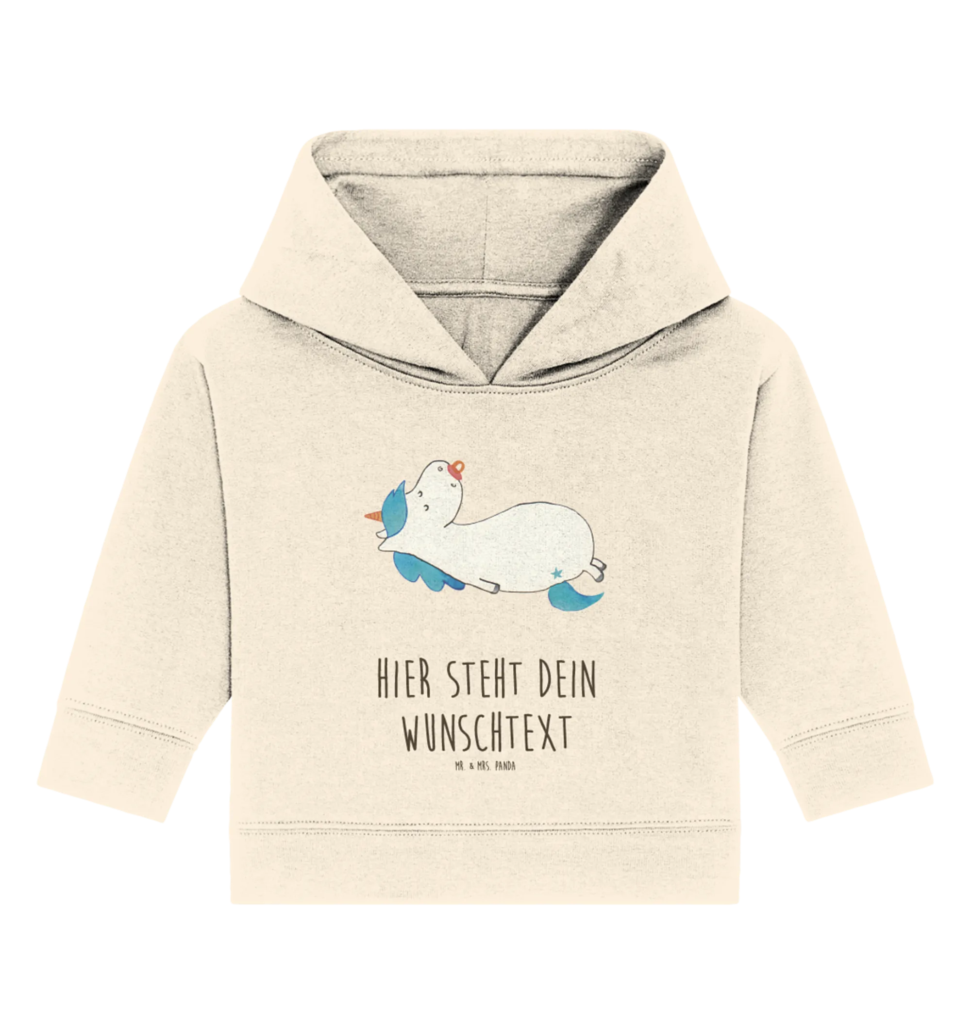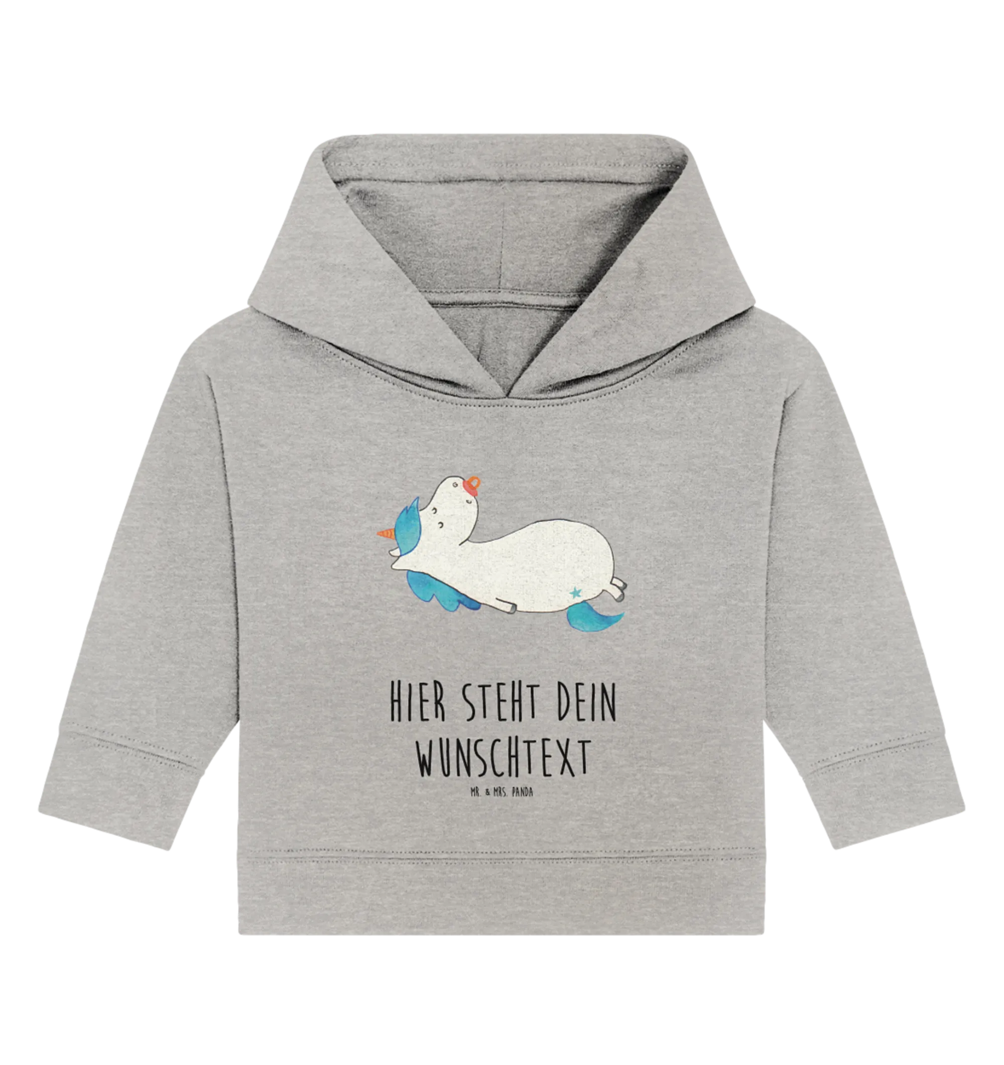 Entdecke den zauberhaften personalisierten Baby Hoodie mit dem süßen Einhorn Schnullie Motiv aus der besonderen Einhorn-Kollektion von Mr. & Mrs. Panda! Dieser niedliche Hoodie ist nicht nur ein echter Hingucker, sondern auch das perfekte Geschenk zur Geburt oder zum Geburtstag eines kleinen Einhorn-Liebhabers.