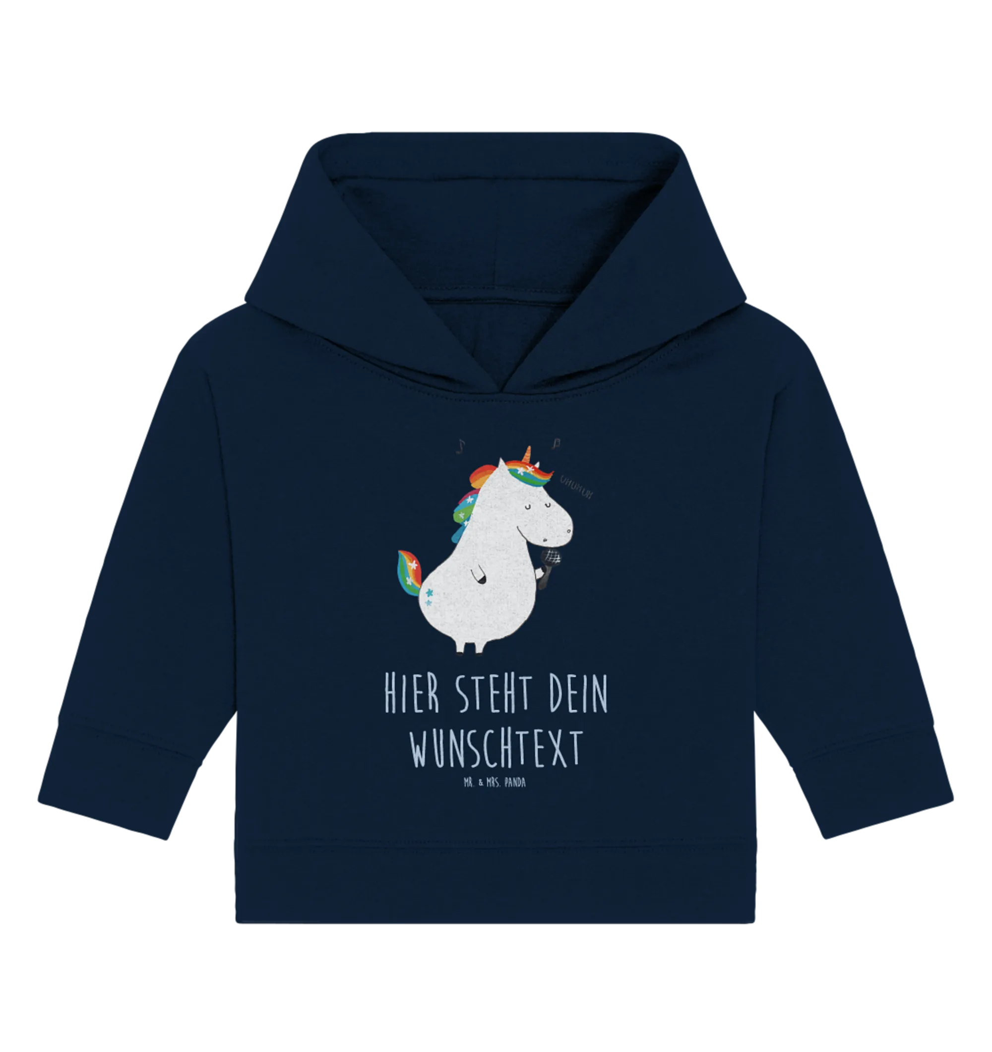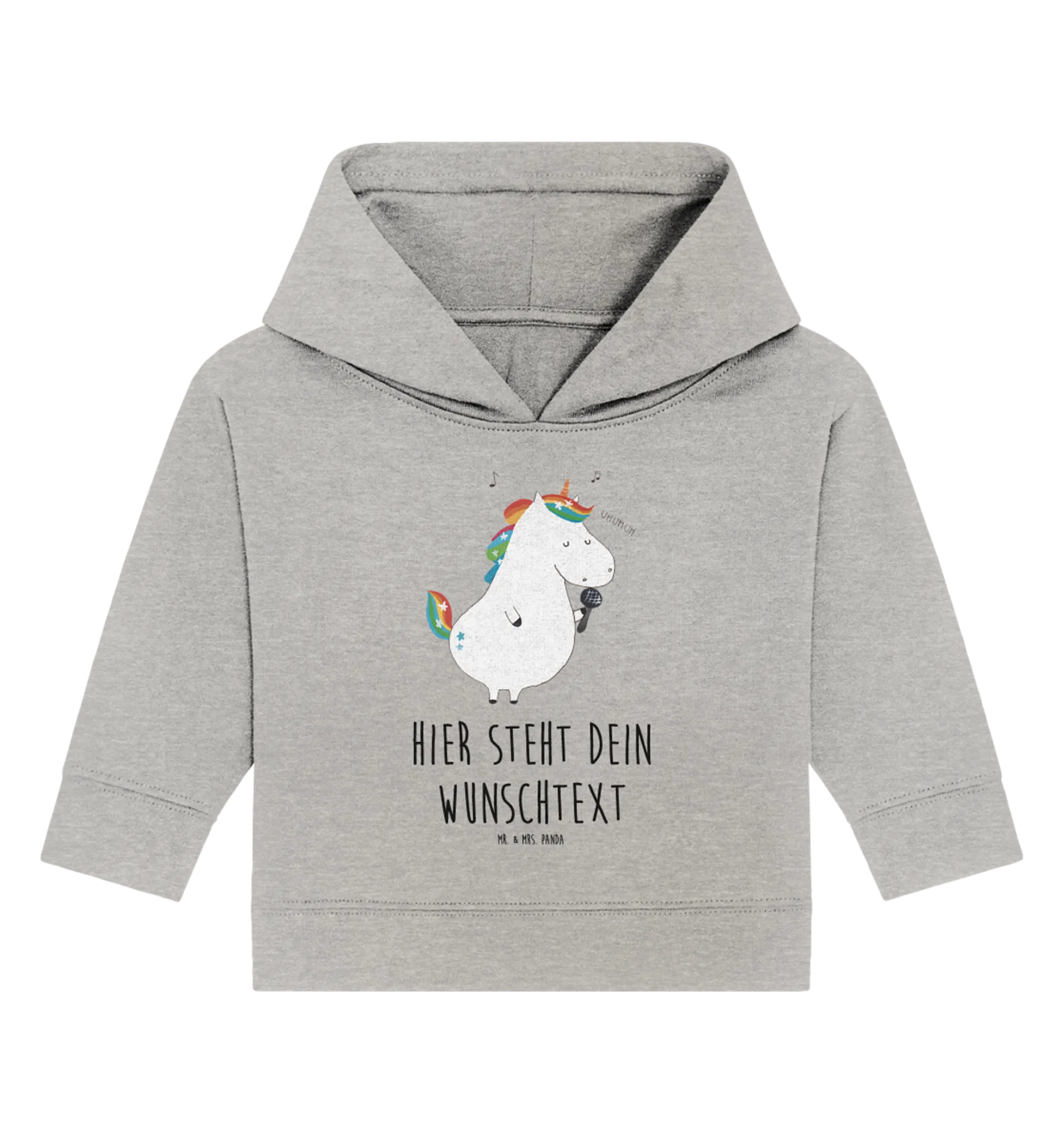Die Einhorn-Kollektion bietet eine Vielzahl von Produkten, die perfekt zusammenpassen, sodass du auch die passende Dekoration oder Geschenkidee findest. Mr. & Mrs. Panda stehen für Qualität und einzigartigen Stil – und jeder Hoodie wird mit viel Herz in Norddeutschland gefertigt. Verschenke Freude, Stil und ein wenig Zauber mit dem personalisierten Baby Hoodie "Einhorn Sänger"! Es ist nicht nur ein Kleidungsstück, sondern ein Teil unvergesslicher Momente und magischer Erinnerungen!
