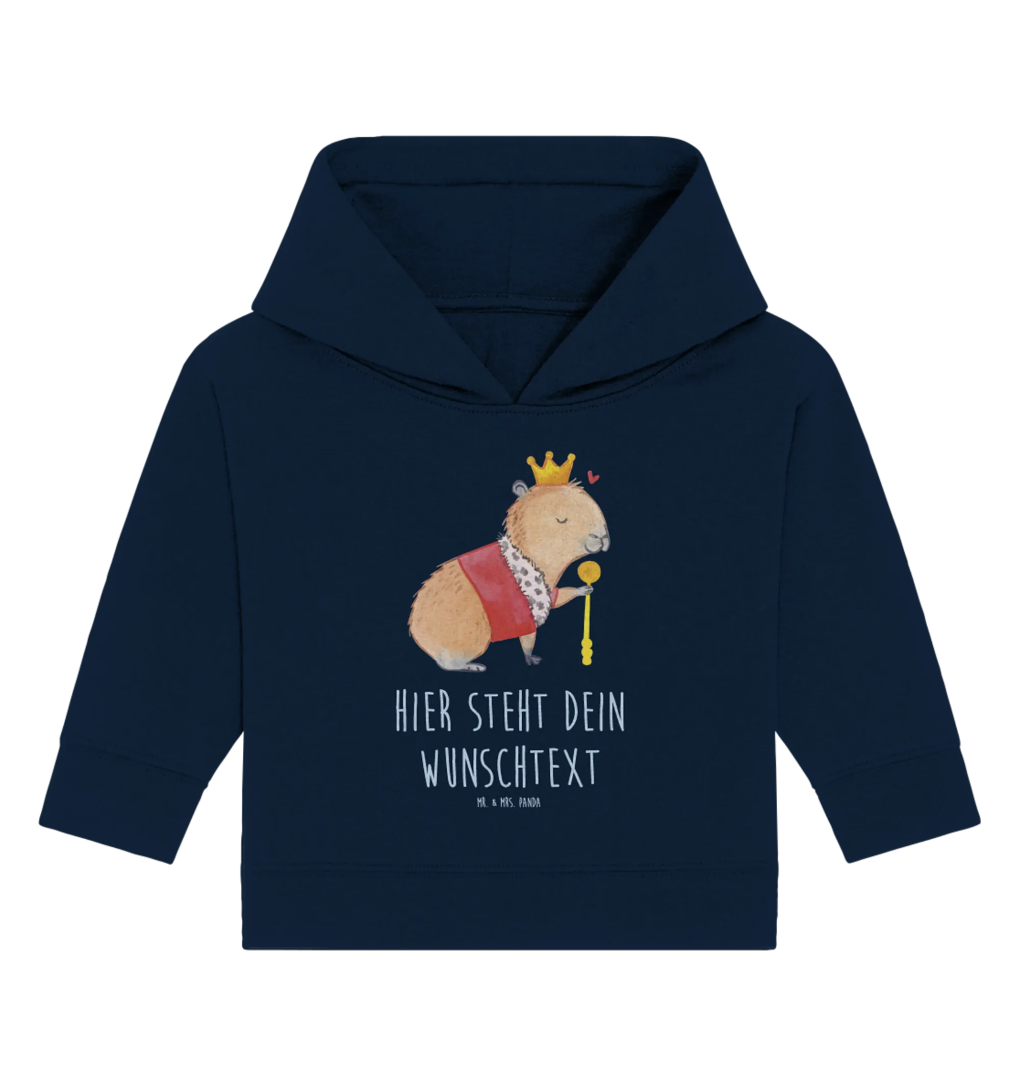 Entdecke den liebevollen, personalisierten Baby Hoodie mit dem zauberhaften Capybara König-Motiv aus der besonderen Small World Kollektion von Mr. & Mrs. Panda. Dieser Hoodie ist nicht nur ein Mode-Statement, sondern auch eine liebevolle Umarmung für dein kleines Wunder.