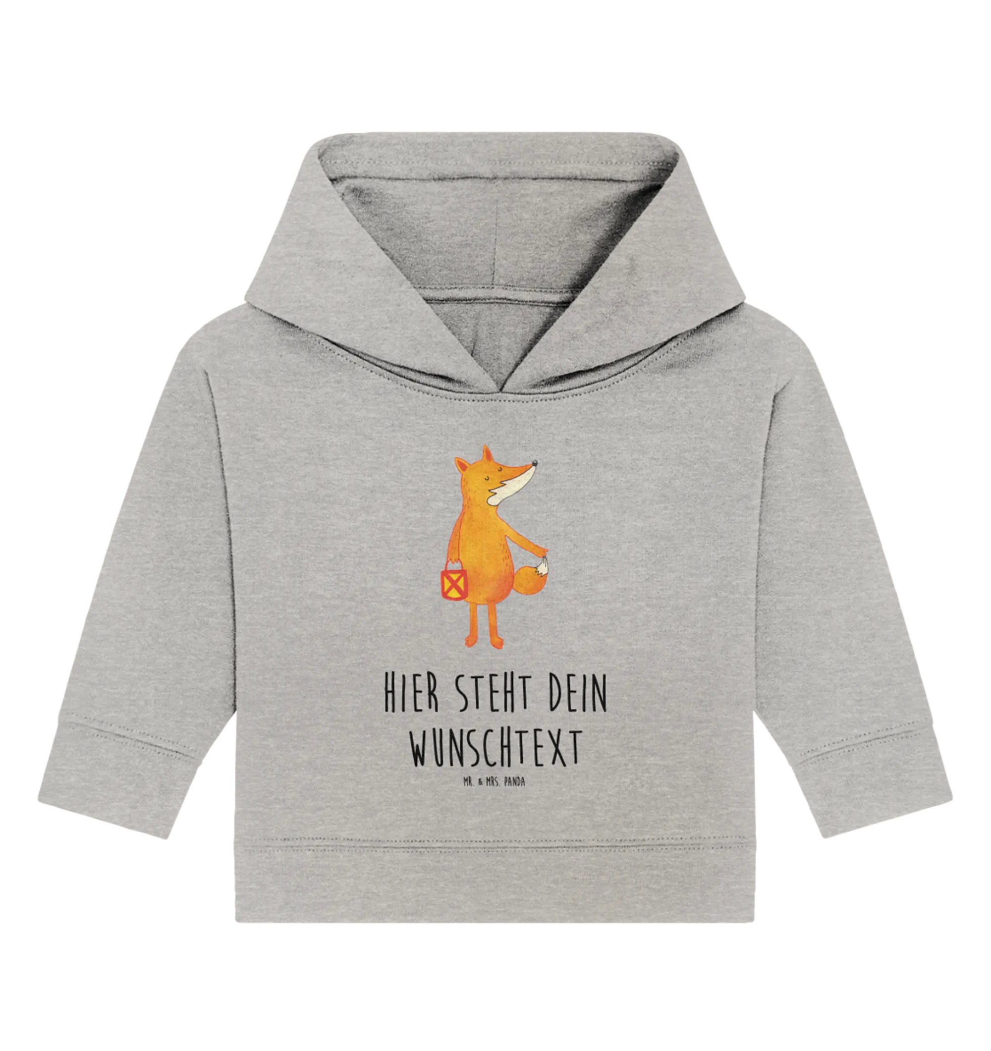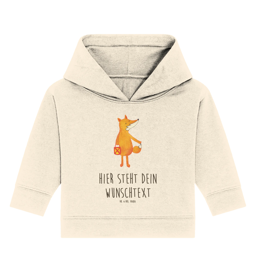 Entdecke den perfekten personalisierten Baby Hoodie mit dem zauberhaften Motiv Fuchs Laterne aus der Kollektion Fuchs von Mr. & Mrs. Panda! Dieser Hoodie ist nicht nur unglaublich süß, sondern auch einzigartig, da er mit dem Wunschtext deines kleinen Lieblings versehen werden kann.