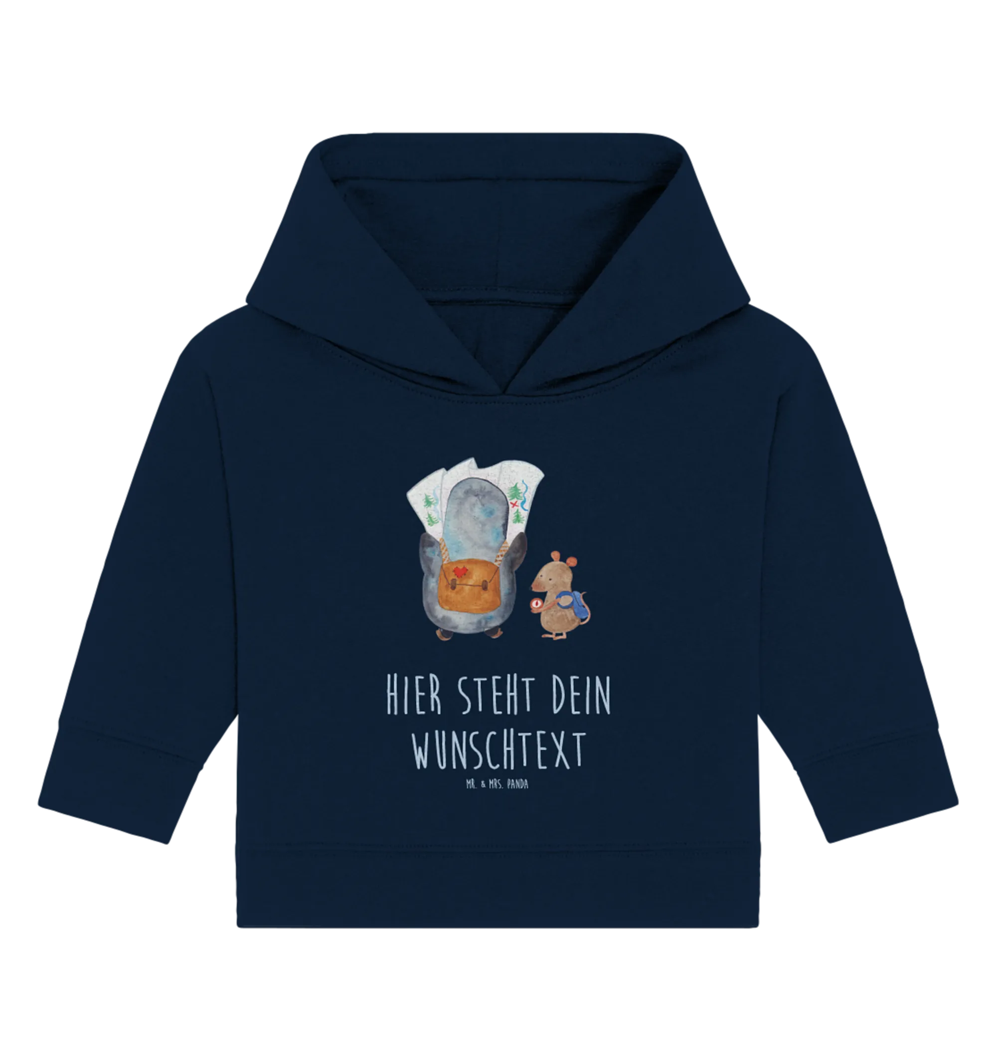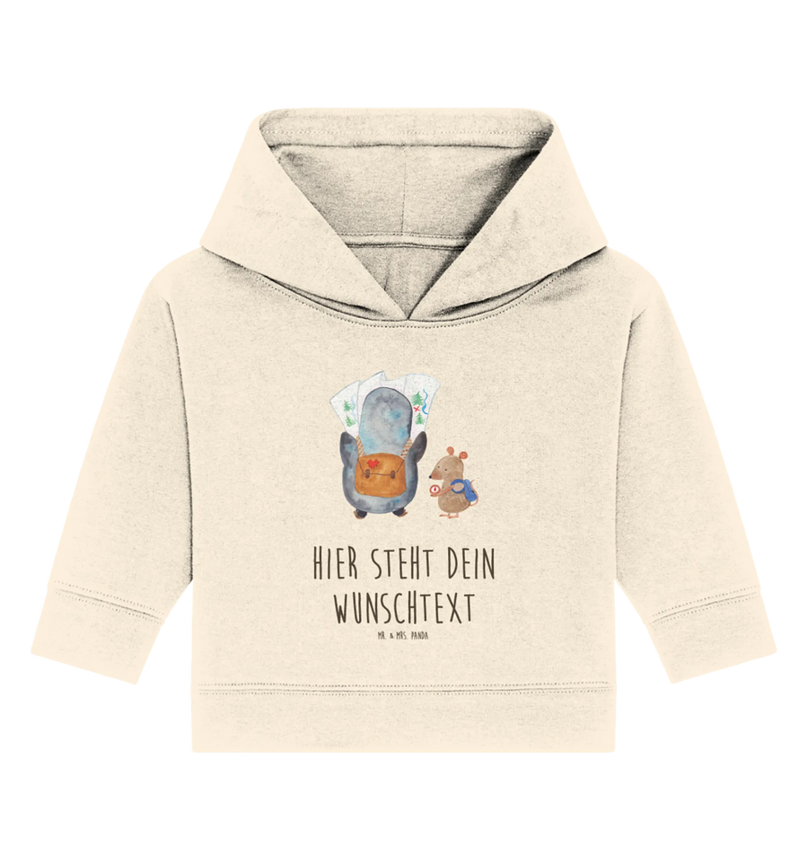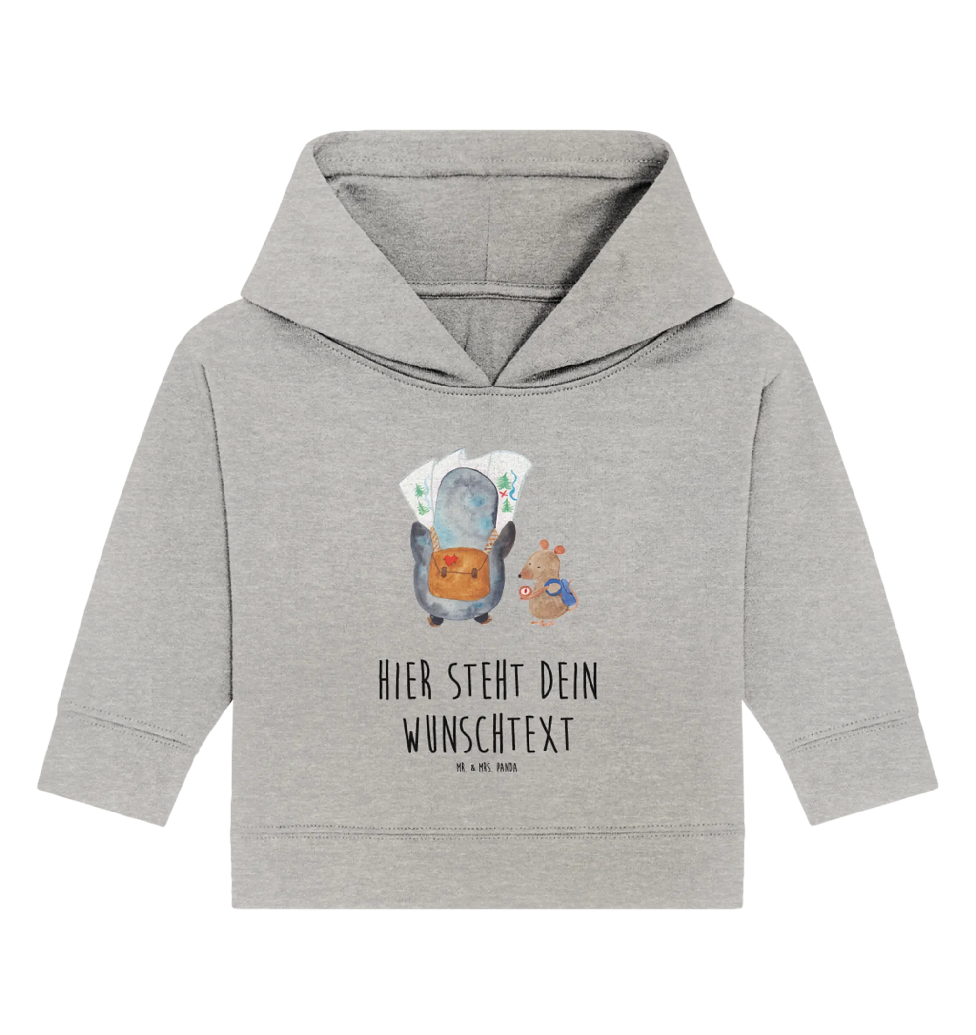 Lass die Abenteuer beginnen - mit dem personalisierten Baby Hoodie von Mr. & Mrs. Panda wird jedes Kind zum kleinen Pinguin-Rucksackträger auf seinen aufregenden Entdeckungsreisen.