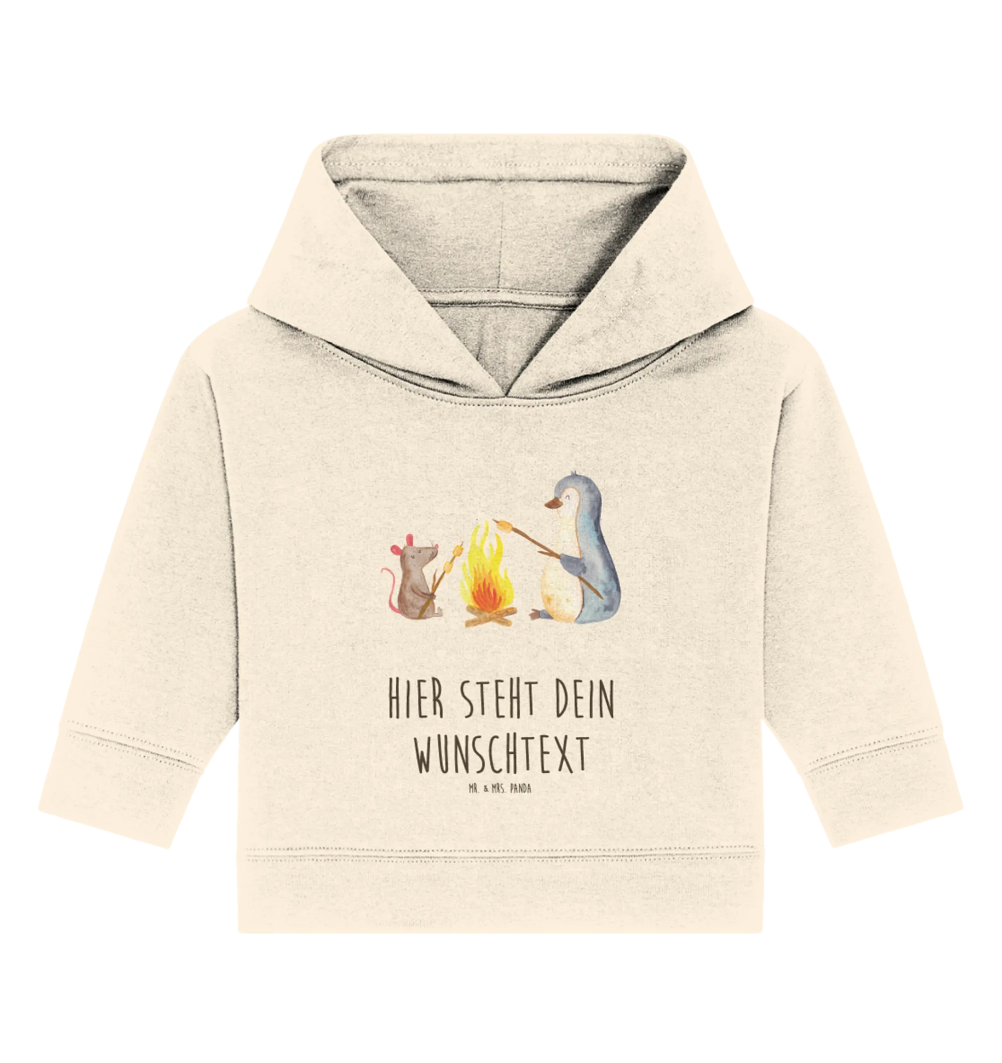 Der personalisierte Baby Hoodie mit dem entzückenden Pinguin Lagerfeuer-Motiv aus der Pinguin-Kollektion von Mr. & Mrs. Panda ist nicht nur ein modisches Must-Have für die Kleinsten, sondern auch das perfekte Geschenk für frischgebackene Eltern oder zur Geburt eines Babys. Dieser Hoodie ist aus hochwertiger, Öko-Baumwolle gefertigt, damit sich dein Baby jederzeit wohlfühlt. Das liebevoll gestaltete Design zeigt einen süßen Pinguin und eine niedliche Maus, die am Lagerfeuer sitzen und fröhlich Marshmallows rösten. So zaubert der Hoodie ein Lächeln auf jedes Gesicht und schafft eine neidische Atmosphäre bei Familie und Freunden.