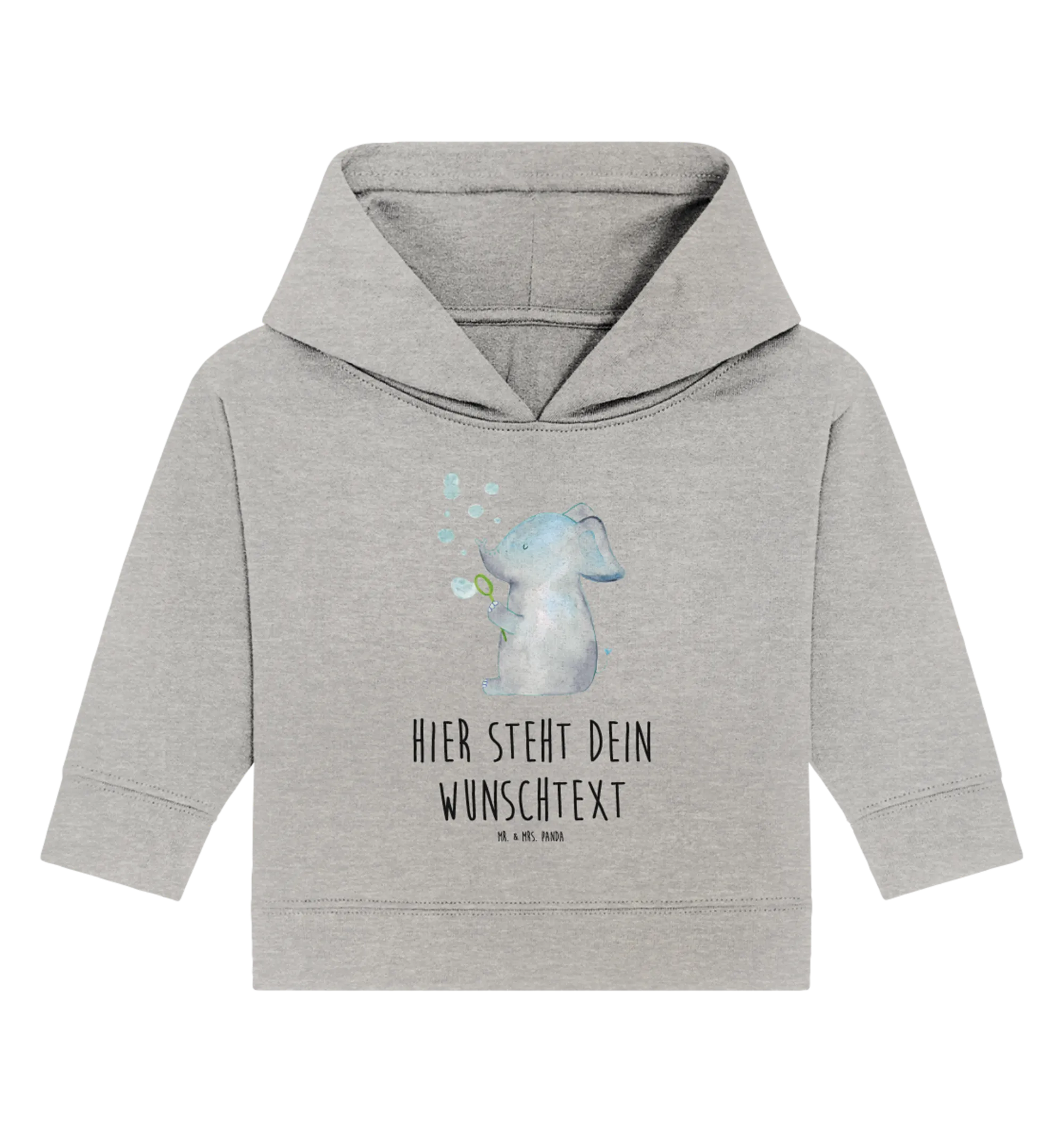 Entdecke den zauberhaften personalisierten Baby Hoodie mit dem süßen Motiv 'Elefant Seifenblasen' aus der Small World Kollektion von Mr. & Mrs. Panda. Dieses besondere Kleidungsstück bringt nicht nur Freude ins Kinderzimmer, sondern ist auch ein wundervolles Geschenk für kleine Abenteurer und ihre Eltern.