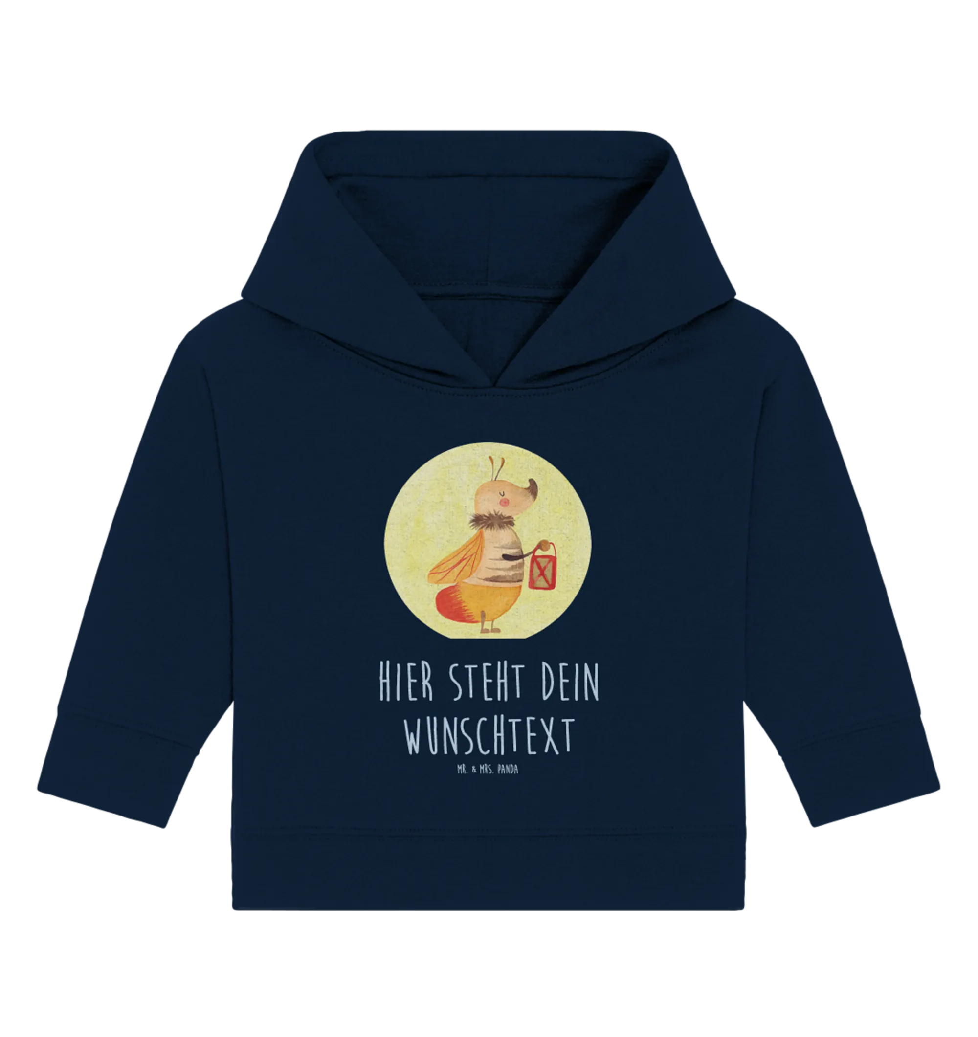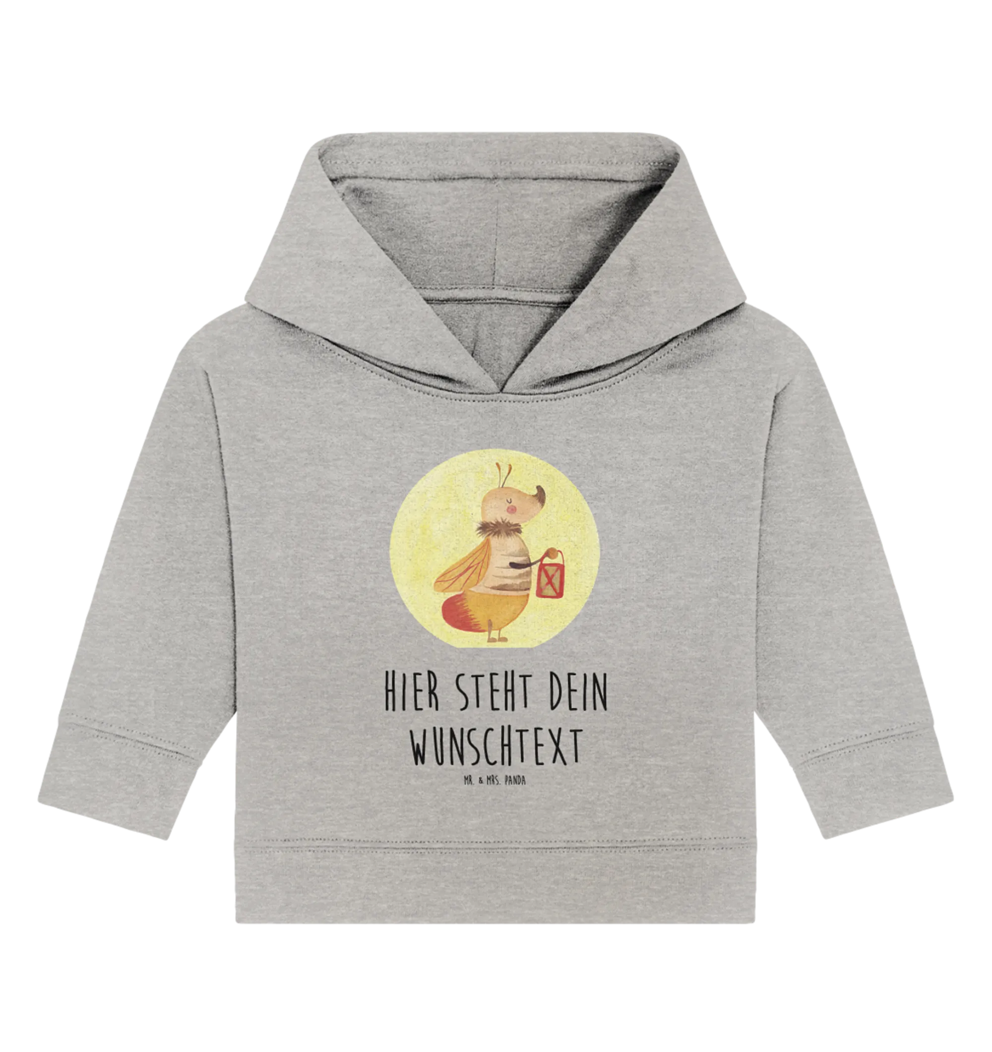 Entdecke den perfekten Begleiter für die kleinsten Abenteuer in deinem Leben – den personalisierten Baby Hoodie mit dem zauberhaften Glühwürmchen-Motiv von Mr. & Mrs. Panda! Dieser einzigartige Hoodie ist nicht nur ein Kleidungsstück, sondern ein liebevolles Geschenk für ganz besondere Anlässe in deinem Leben. Egal, ob zur Geburt, zur Taufe oder zum ersten Geburtstag – dieser Hoodie bringt nicht nur Freude, sondern auch einen wundervollen Spruch: 'Du bringst mein Leben zum Leuchten.' Das niedliche Glühwürmchen, das eine Laterne in der Hand hält, symbolisiert Hoffnung und Licht. Mit seinem sanften Schein wird dein kleines Lieblingsmensch überall zum Strahlen gebracht.