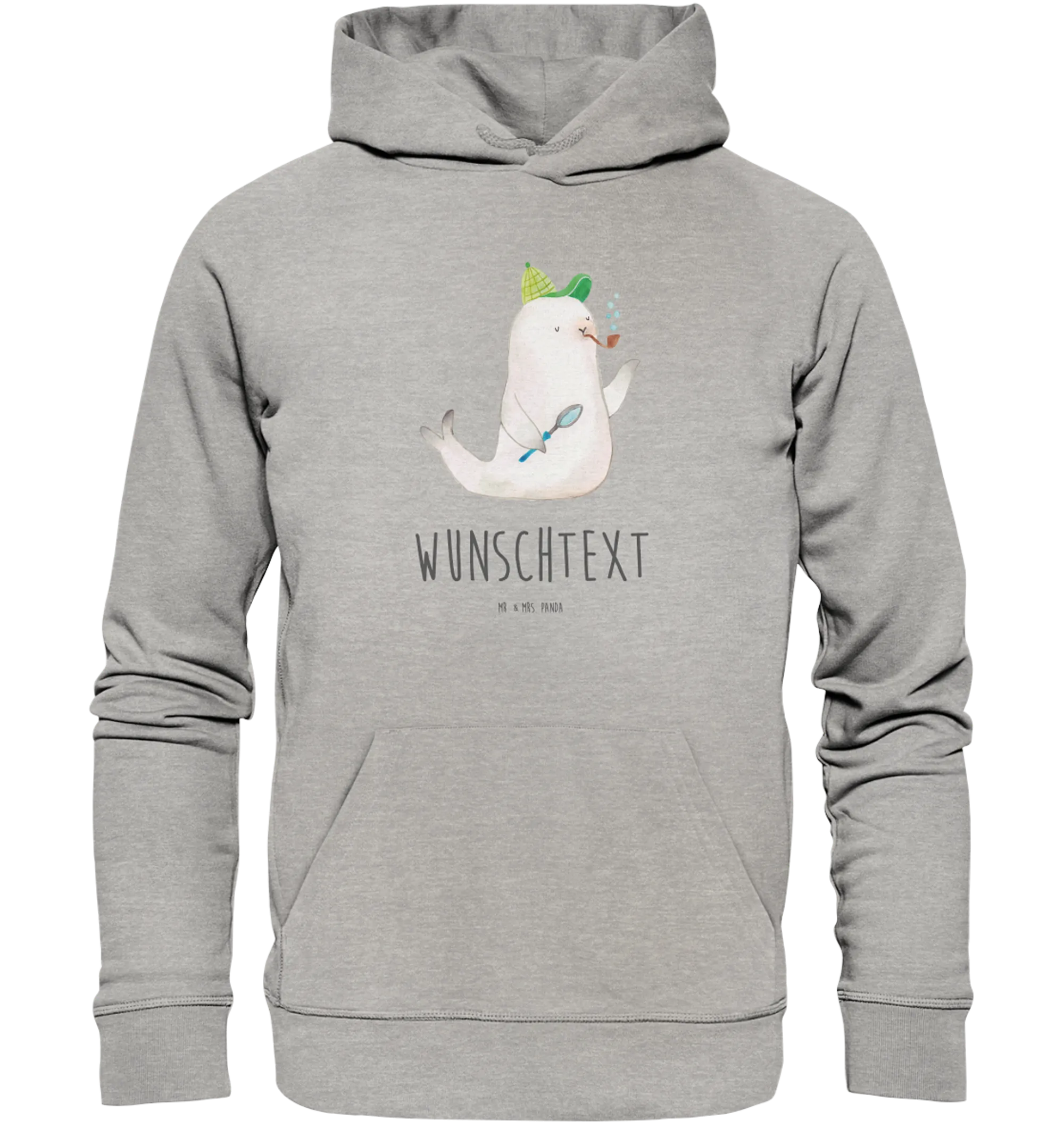 Entdecke den perfekten personalisierten Hoodie mit dem lustigen Motiv Robbe Sherlock aus der Small World Kollektion von Mr. & Mrs. Panda!