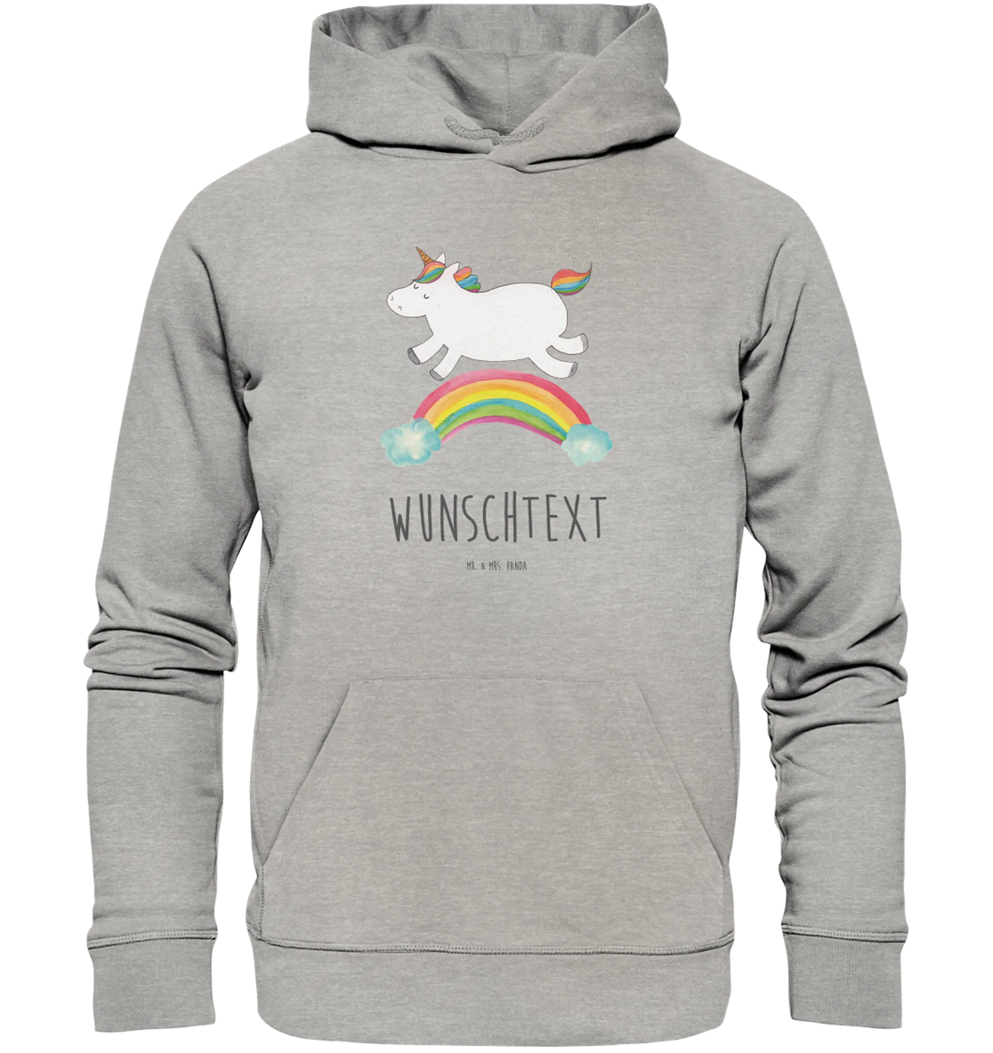 Du suchst nach dem perfekten Geschenk? Dann ist der personalisierte Hoodie "Einhorn Regenbogen" aus der einzigartigen Einhorn-Kollektion von Mr. & Mrs. Panda genau das Richtige! Dieser faaabuloose Kapuzenpullover ist nicht nur super stylisch, sondern auch richtig gemütlich! Hergestellt aus 85 % Bio-Baumwolle und 15 % recyceltem Polyester, sorgt er für ein angenehmes Tragegefühl und eine umweltfreundliche Entscheidung. Mit einem wunderschönen, handgezeichneten Design von Mrs. Panda zeigt dieser Hoodie ein fröhliches Einhorn, das über einen Regenbogen flitzt.