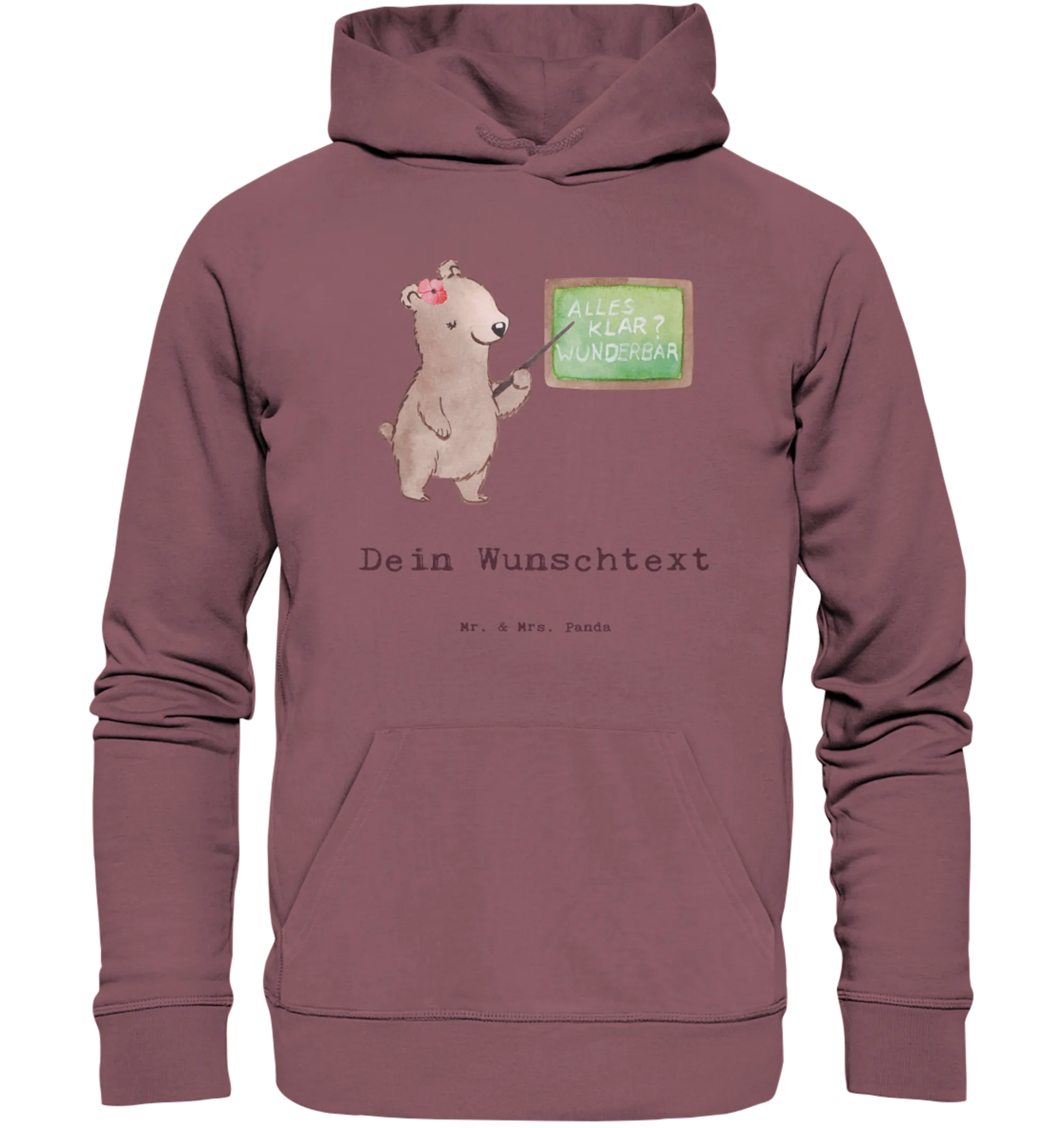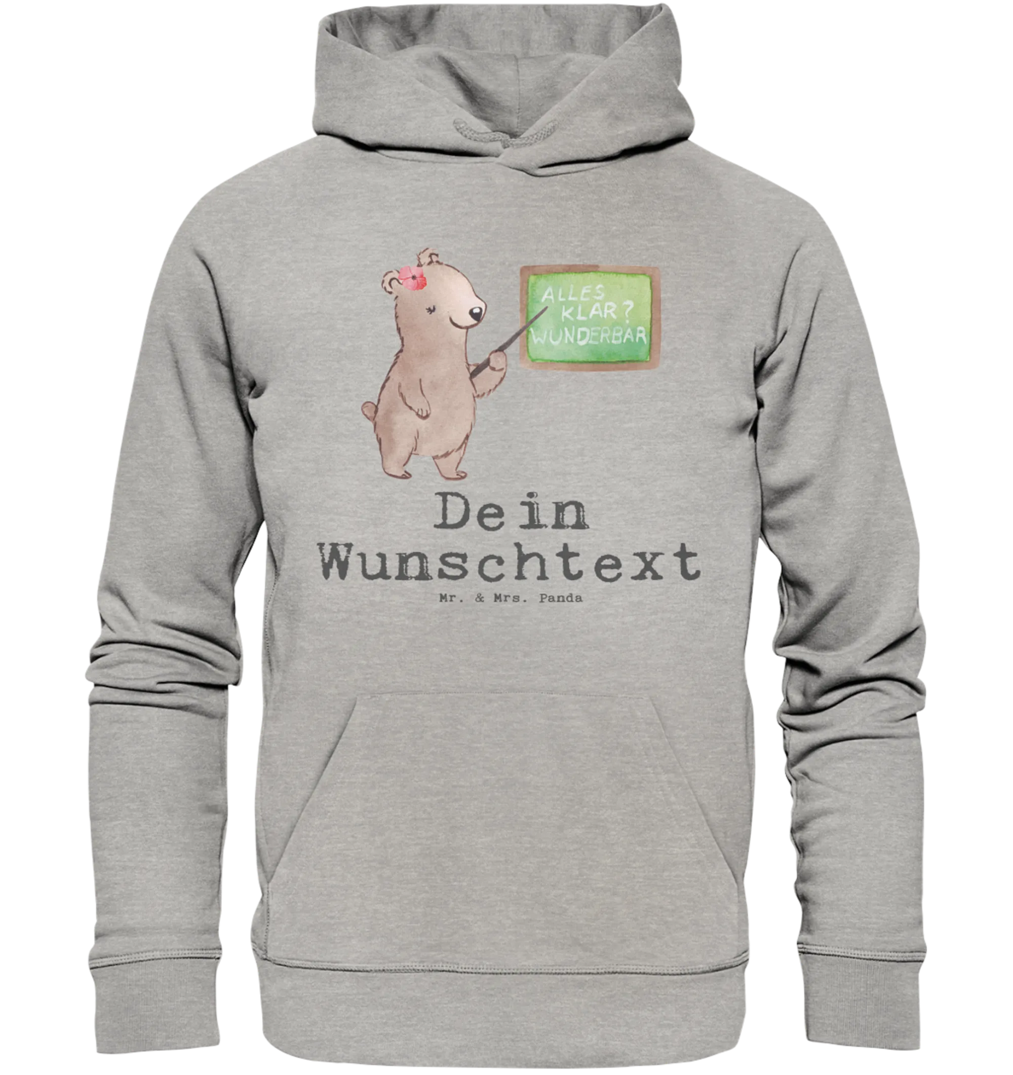 Der personalisierte Hoodie "Deutschlehrerin mit Herz" aus der Berufe-Kollektion von Mr. & Mrs. Panda ist das perfekte Geschenk für alle, die leidenschaftlich in der Welt des Deutschen unterrichten! Mit einem besonders liebevoll gestalteten Motiv, das eine charmante Bärenlehrerin vor einer Schultafel zeigt, fängt dieser Hoodie den Geist der Kreativität und des Engagements im Unterricht ein. Jeder, der mit Hingabe unterrichtet, weiß, dass die Arbeit als Deutschlehrerin keine langweilige Angelegenheit ist, sondern voller Spaß und Freude stecken kann!