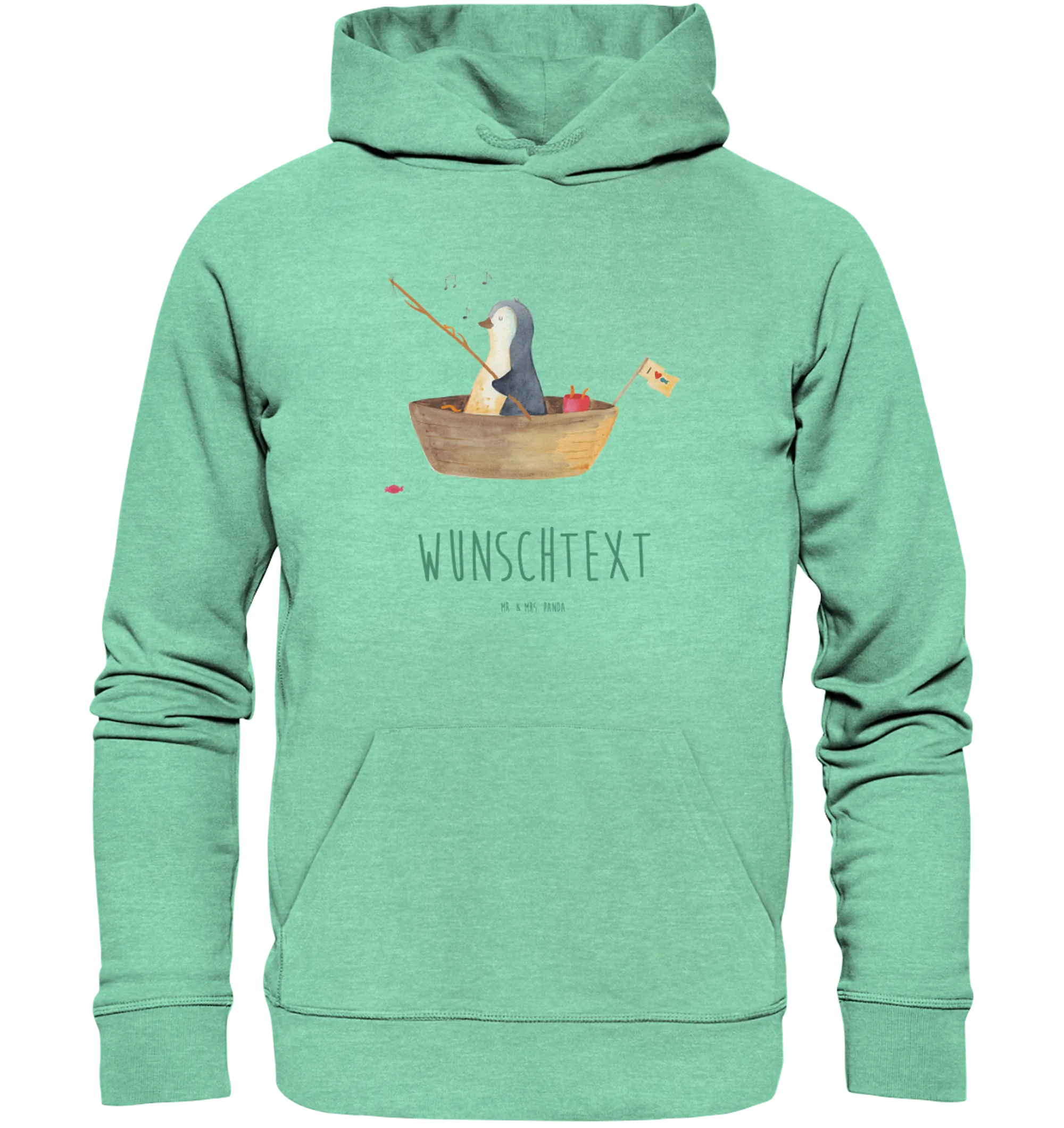 Entdecke den perfekten Hoodie für alle Pinguinliebhaber – unseren personalisierten Hoodie mit dem niedlichen Motiv eines Pinguins im Angelboot. Dieser Hoodie, gefertigt aus 85 % Bio-Baumwolle und 15 % recyceltem Polyester, bietet dir nicht nur ein unvergleichliches Tragegefühl, sondern auch die Möglichkeit, ihn mit deinem Wunschtext oder Namen zu personalisieren. Die weich gebürstete Innenseite sorgt dafür, dass du ihn gerne das ganze Jahr über trägst.