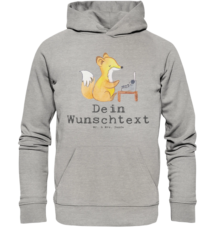 Entdecke den personalisierten Hoodie Schriftsteller mit Herz aus der Wohlfühl-Kollektion von Mr. & Mrs. Panda! Dieser Hoodie ist nicht nur besonders weich und bequem, sondern auch ein echtes Must-Have für jeden kreativen Kopf und leidenschaftlichen Schriftsteller. Mit einem süßen Fuchs, der in einer Schreibmaschine sitzt und gerade eine Geschichte verfasst, bringt dieser Hoodie deinen kreativen Geist perfekt zum Ausdruck.