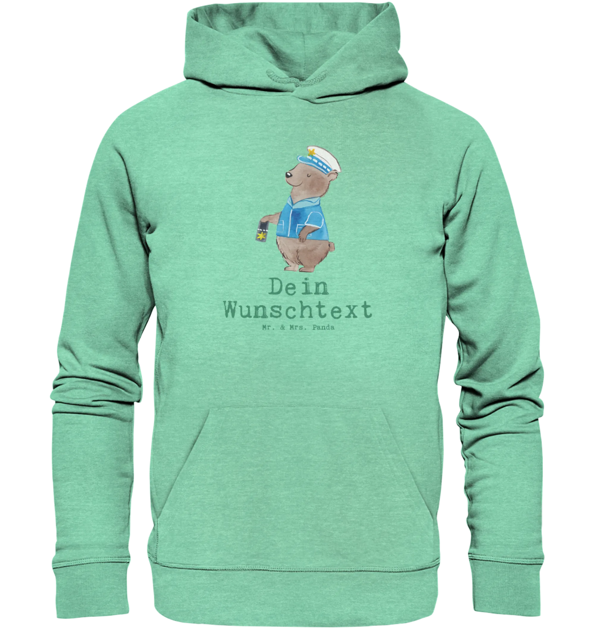 Der personalisierte Hoodie "Polizist mit Herz" aus der Kollektion Berufe von Mr. & Mrs. Panda ist das ideale Geschenk für alle Polizeibeamten, Polizisten und angehenden Cops. Dieser wundervoll flauschige Organic Hoodie verbindet Stil mit persönlicher Note. Mit einem liebevollen Design, das einen stolzen Bären in Polizeiuniform zeigt, und dem Spruch "Du bist nur ein halber Mensch, wenn du kein Polizist bist", ist er perfekt für jeden Anlass. Ob zum Berufsstart, als Dankeschön für die hervorragende Arbeit oder als besonderes Abschiedsgeschenk – dieser Hoodie überzeugt immer!