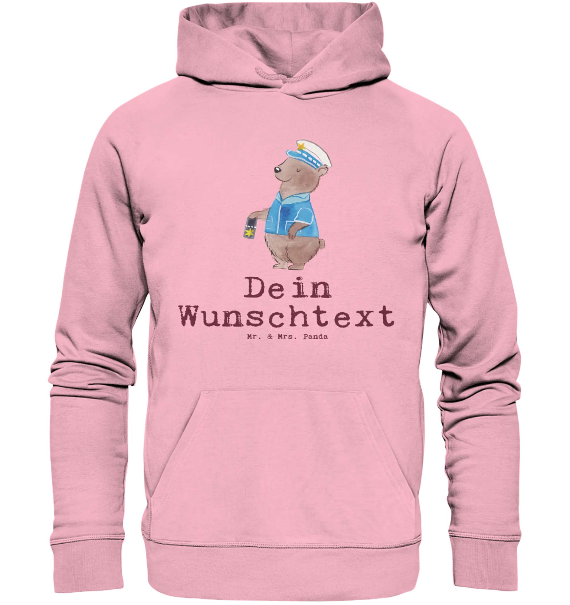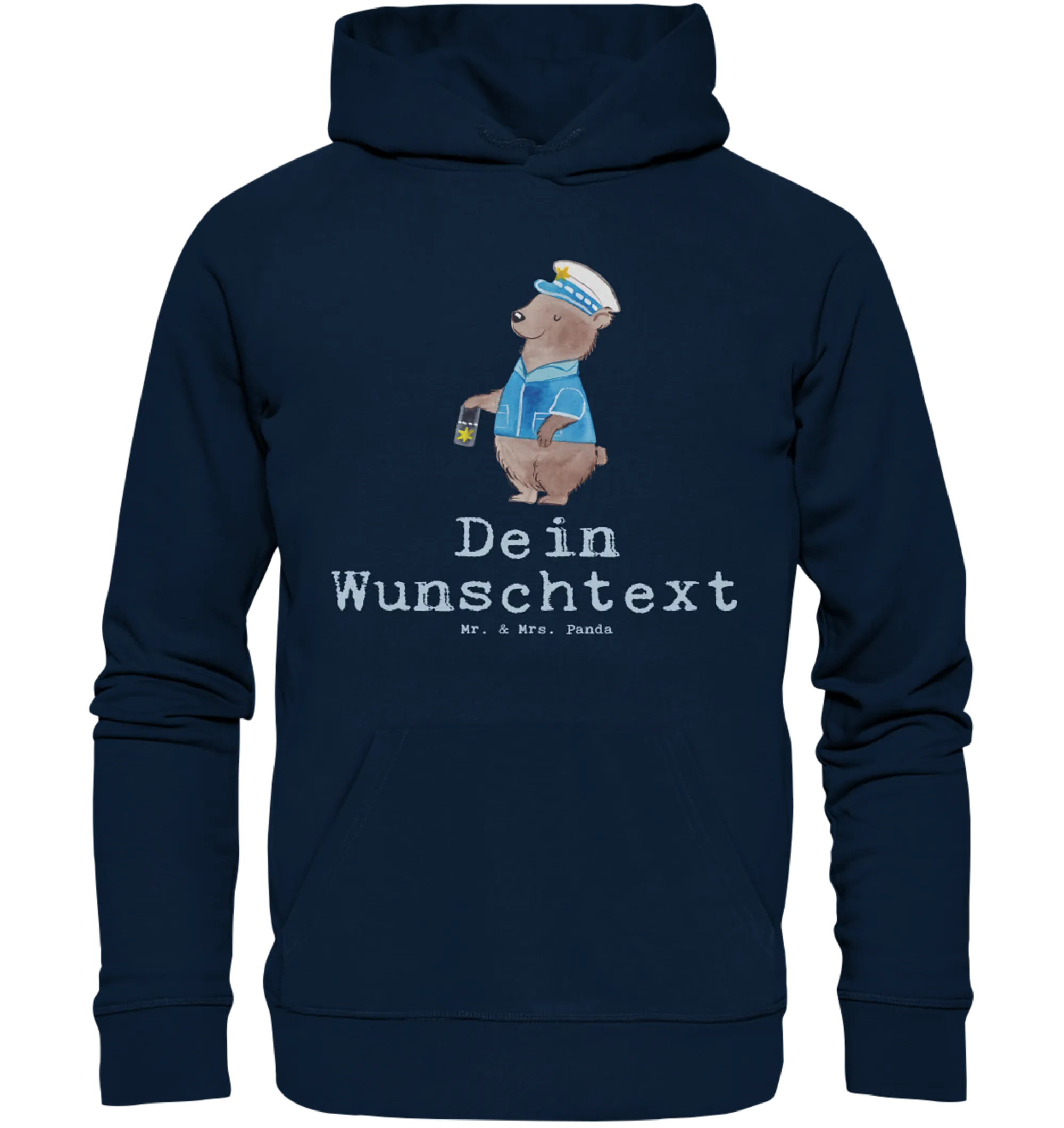 Mit dem süßen Motiv eines niedlichen Bären in Polizeiuniform, der stolz seine Dienstmarke präsentiert, wird der Hoodie schnell zum Lieblingsstück. Und das Besondere: Du kannst den Hoodie mit deinem eigenen Wunschtext personalisieren.