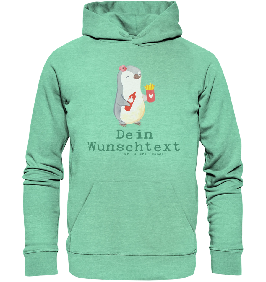 Der personalisierte Hoodie "Imbissverkäuferin mit Herz" von Mr. & Mrs. Panda ist das perfekte Geschenk für all die lieben Imbissverkäuferinnen, die unsere Gaumenfreuden mit ihren köstlichen Pommes und dem herzlichen Lächeln versüßen. Hergestellt aus wundervoller Bio-Baumwolle ist dieser Hoodie nicht nur super weich und flauschig, sondern auch umweltfreundlich.