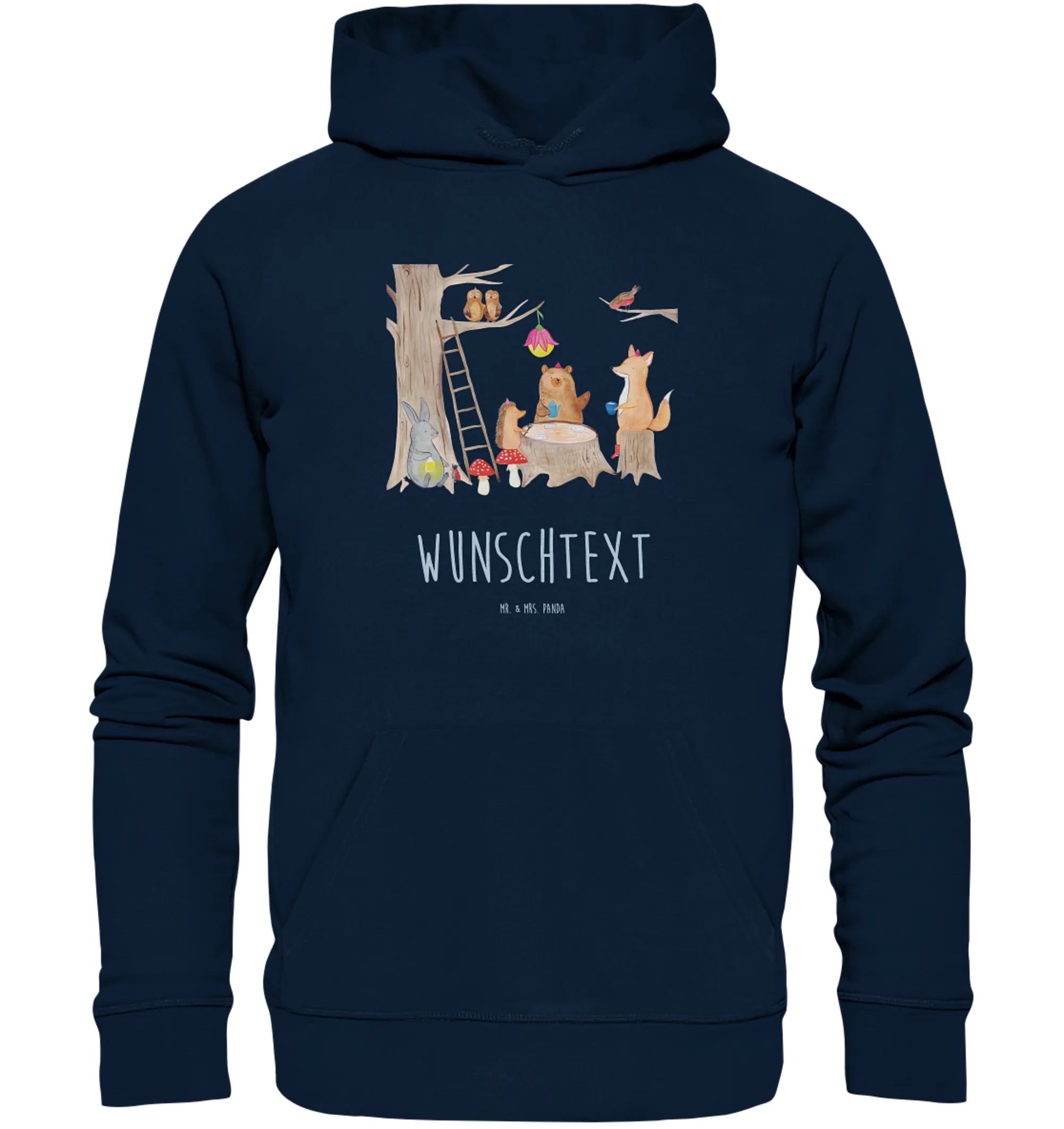 Schaffe Erinnerungen, die bleiben, und erlebe den Alltag mit einem Hauch von Magie und Naturverbundenheit – mit dem personalisierten Hoodie "Waldtiere Picknick" von Mr. & Mrs. Panda! Wenn du auf der Suche nach einem besonderen Geschenk bist, das von Herzen kommt und sowohl ganz persönlich als auch modisch ist, dann ist dieser Hoodie genau das Richtige für dich.