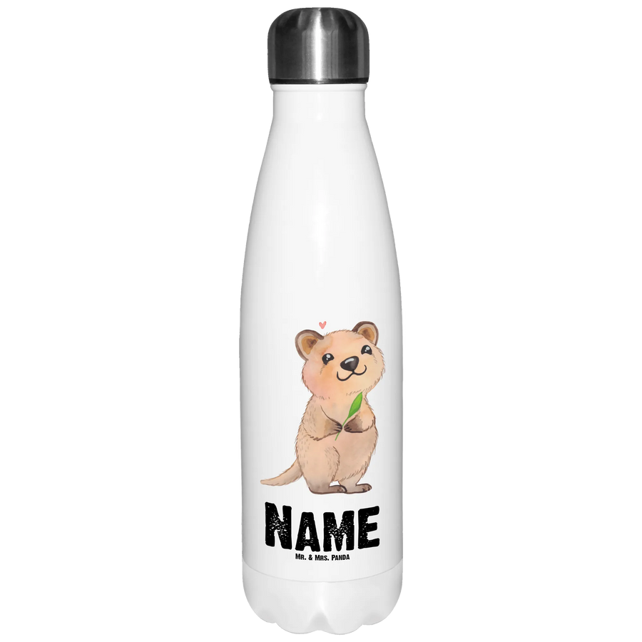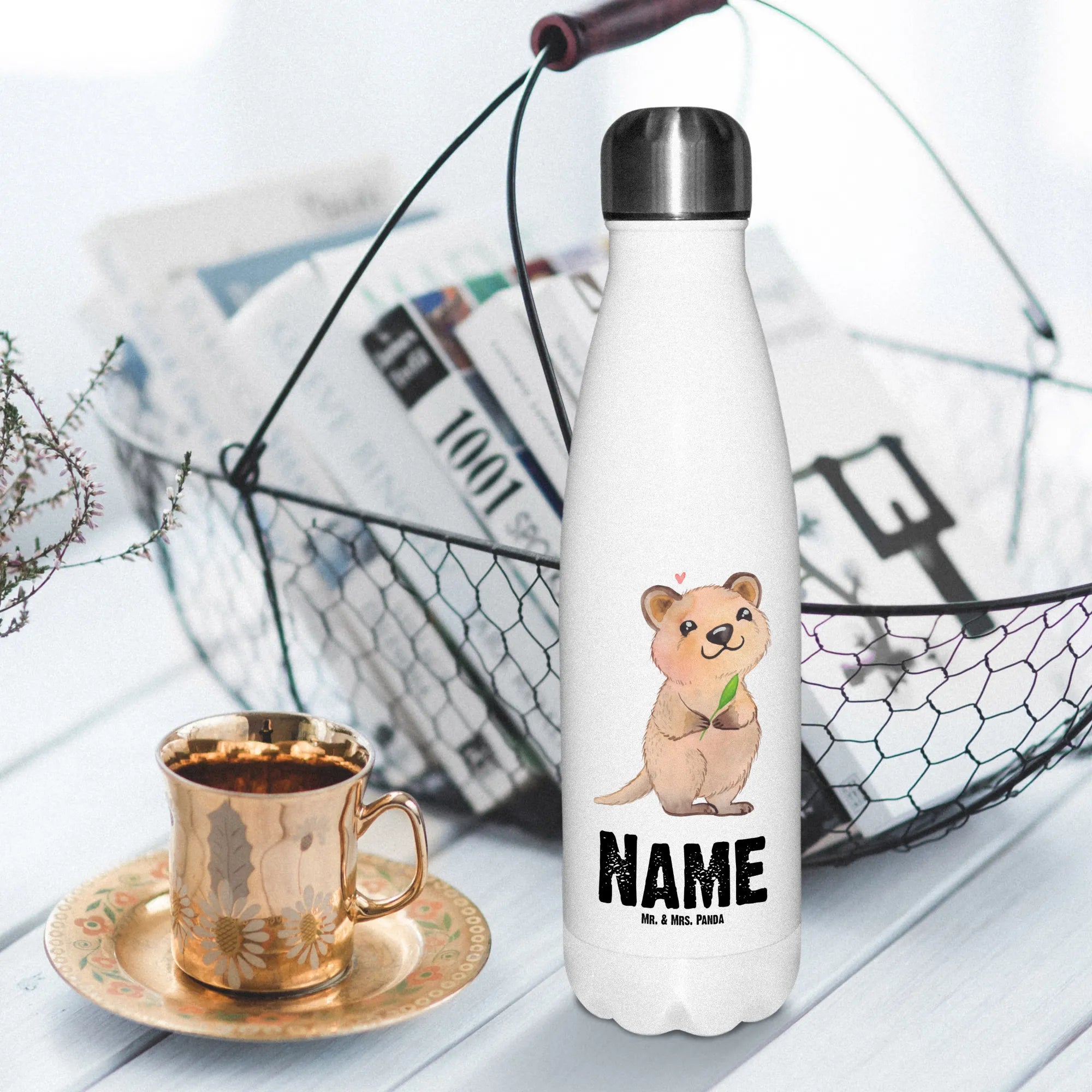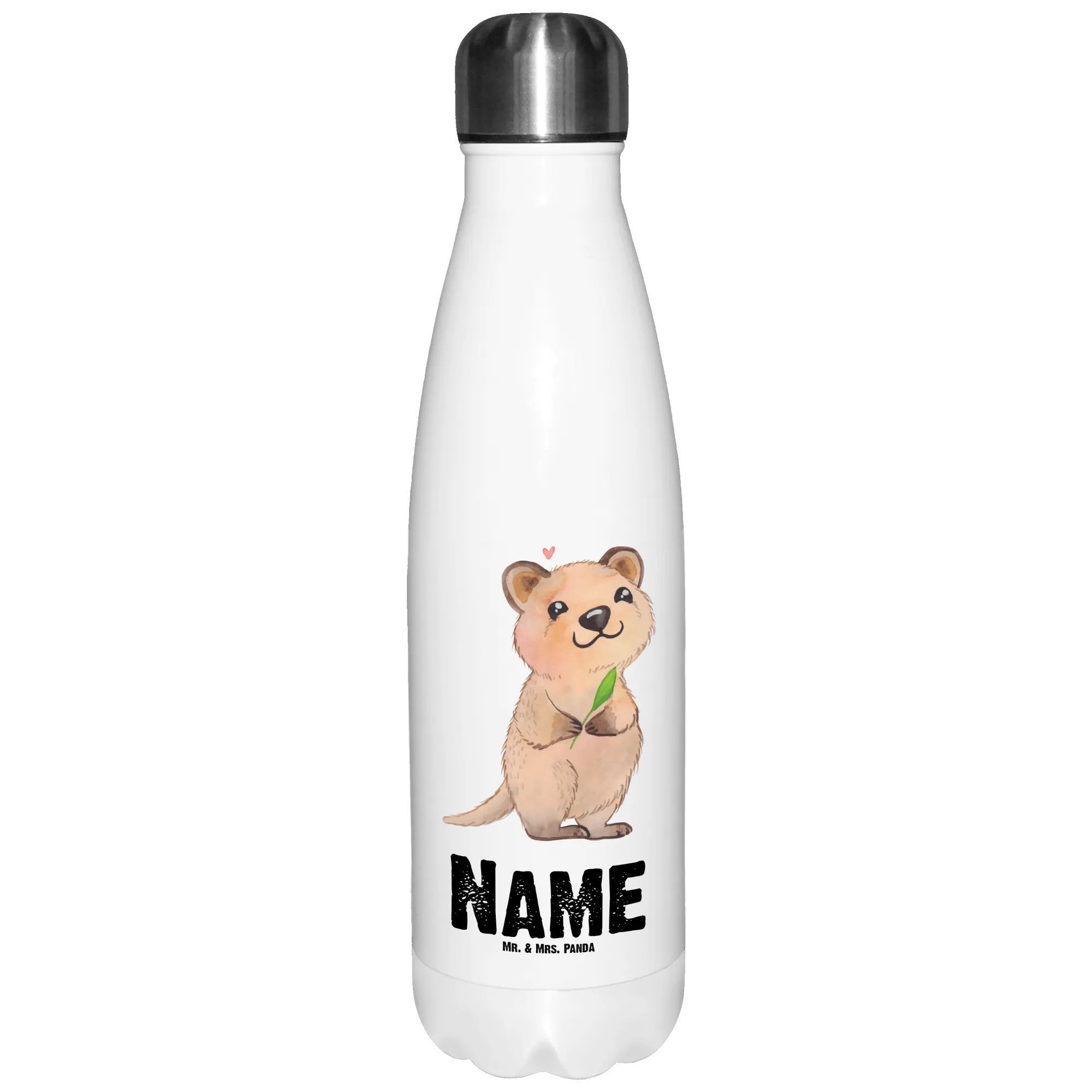 Die personalisierte Thermosflasche "Quokka Happy" aus der zauberhaften Small World Kollektion von Mr. & Mrs. Panda ist das ideale Geschenk für alle, die das Leben mit einem Lächeln angehen! Mit ihrem fröhlichen Motif eines niedlichen Quokkas, das ein herzhaftes Lächeln präsentiert und ein kleines Herz über seinem Kopf schwebt, bringt diese Flasche gute Laune in jeden Alltag.