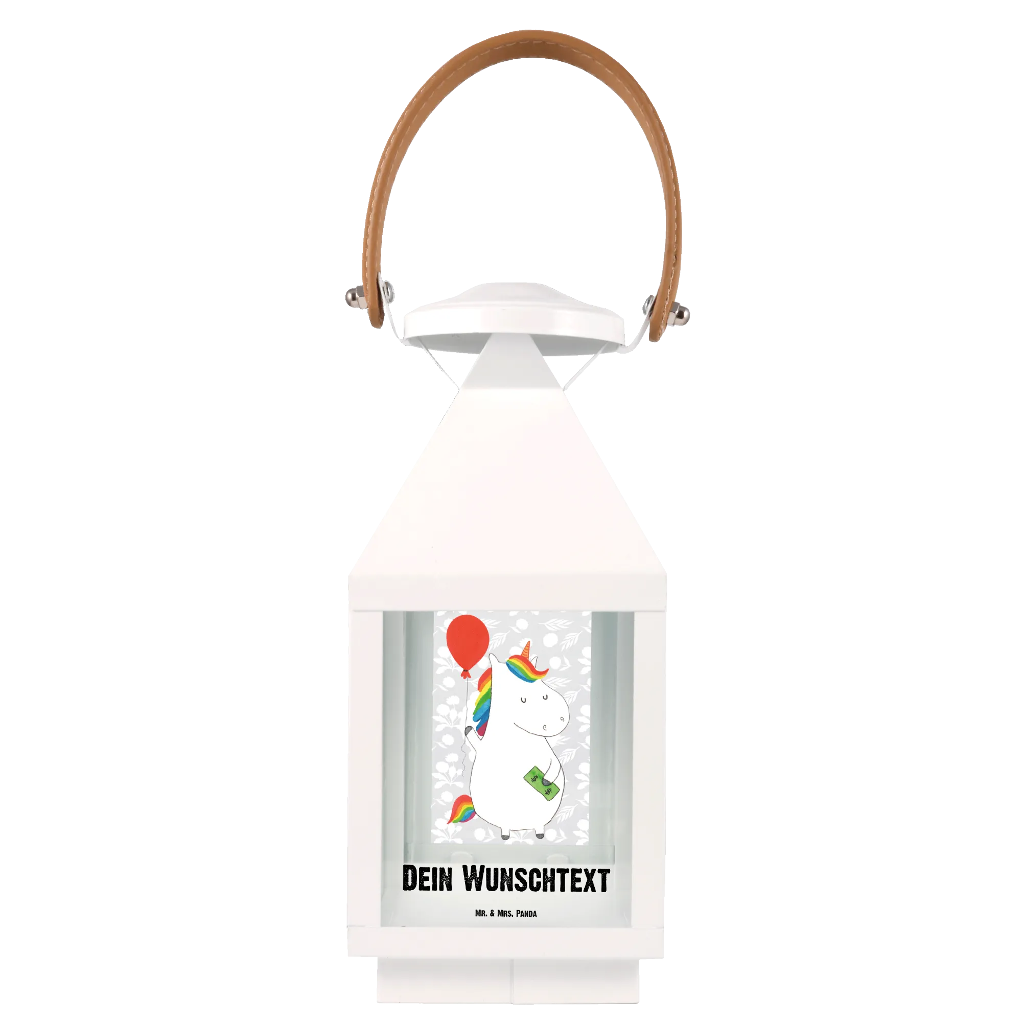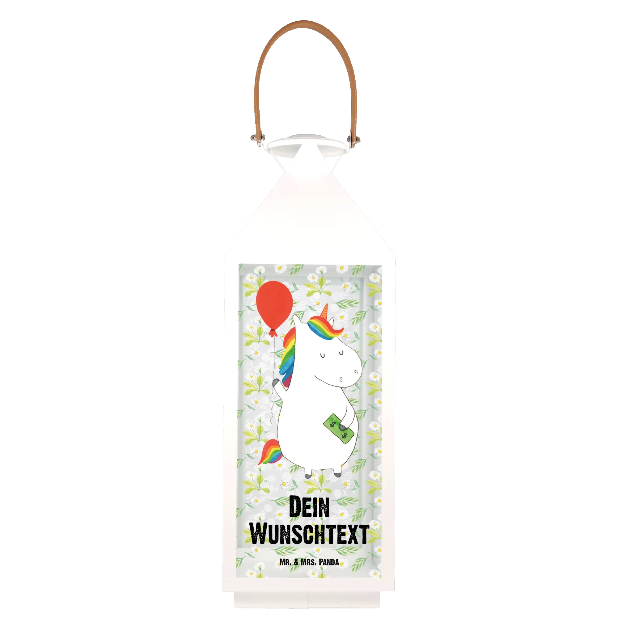Du suchst nach einer ganz besonderen Deko für deinen Garten oder Balkon? Dann ist die personalisierte Deko Laterne Einhorn Luftballon aus der wunderbaren Einhorn-Kollektion von Mr. & Mrs. Panda genau das richtige Geschenk für dich oder deine Liebsten!