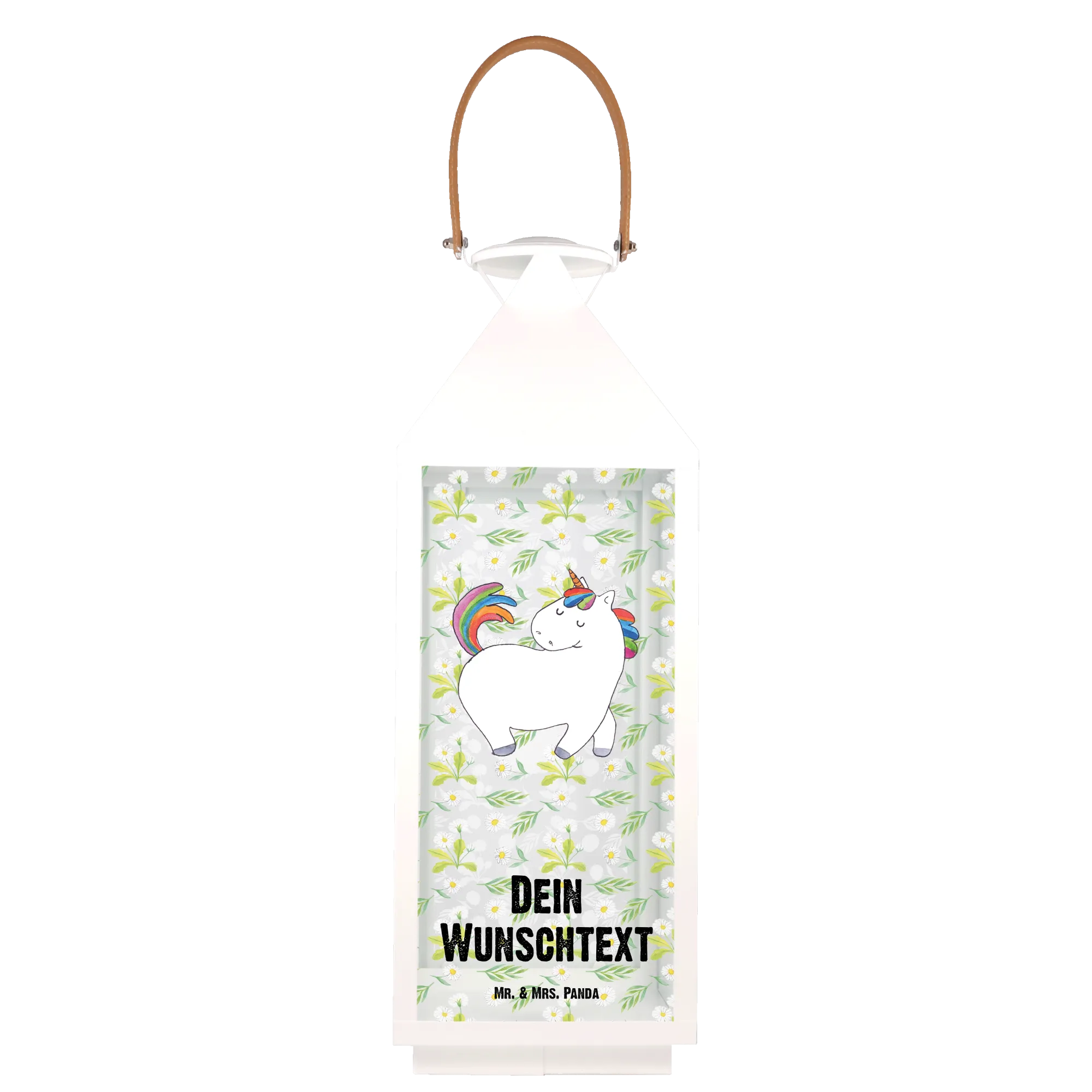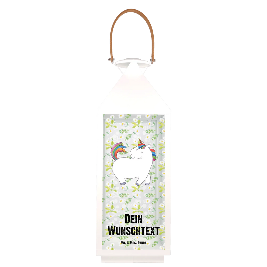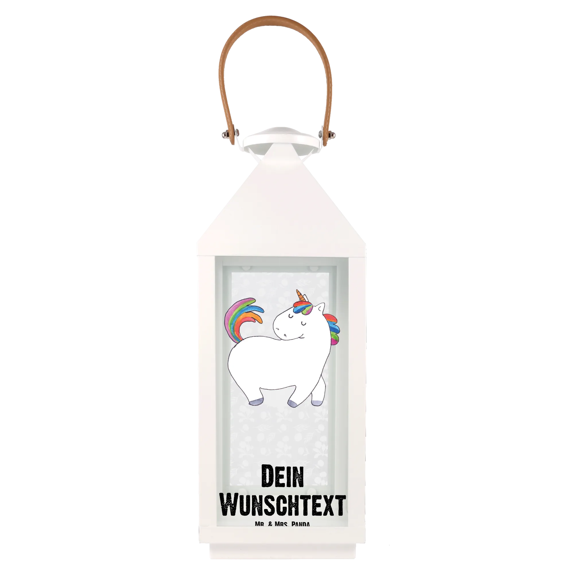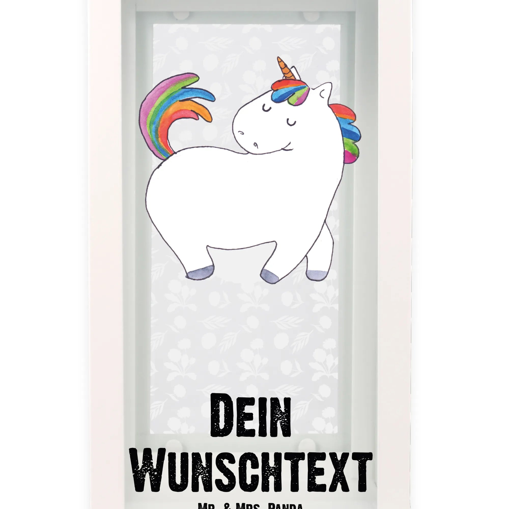 Bring ein Stückchen Zauber in dein Leben mit der personalisierten Deko Laterne "Einhorn stolzierend" von Mr. & Mrs. Panda.