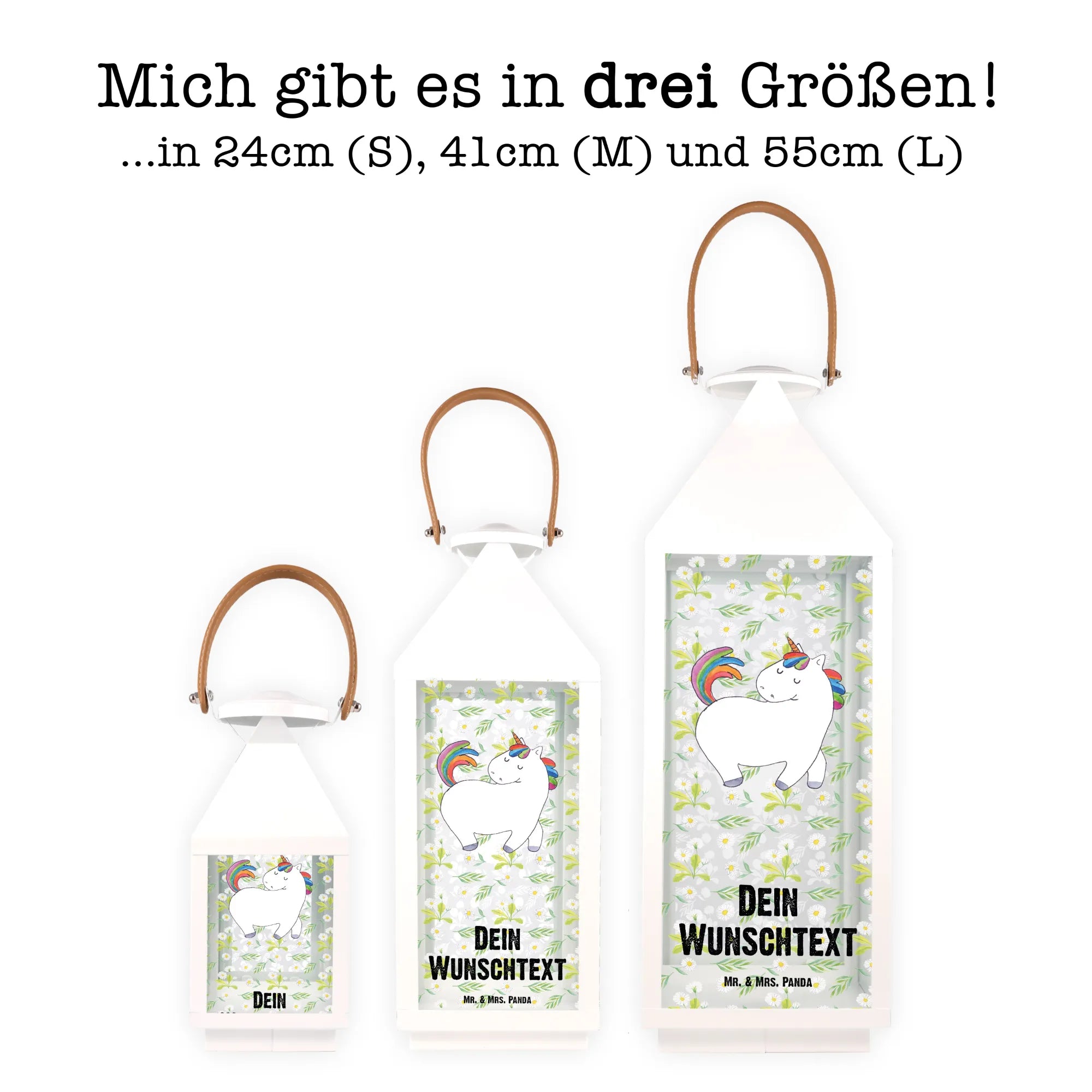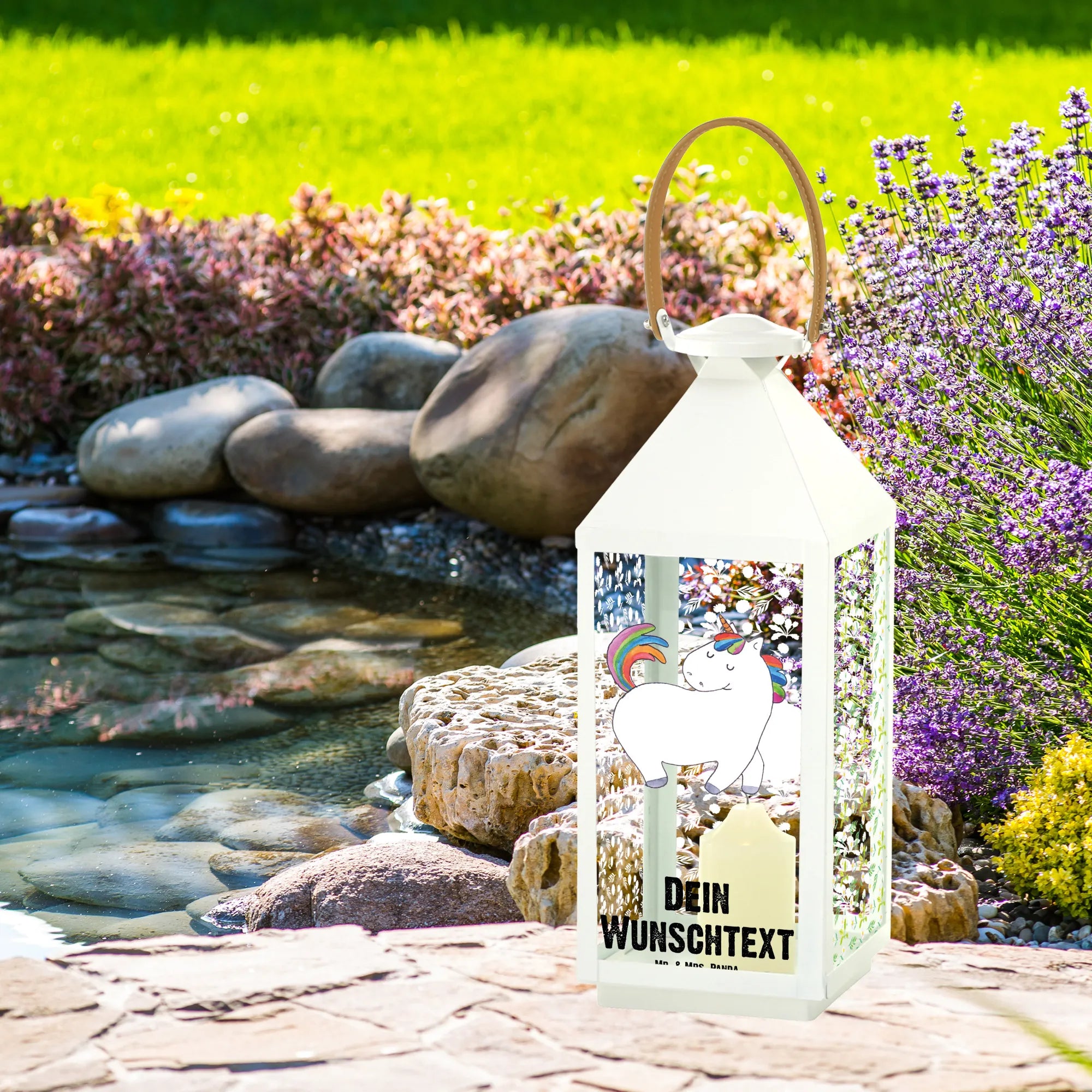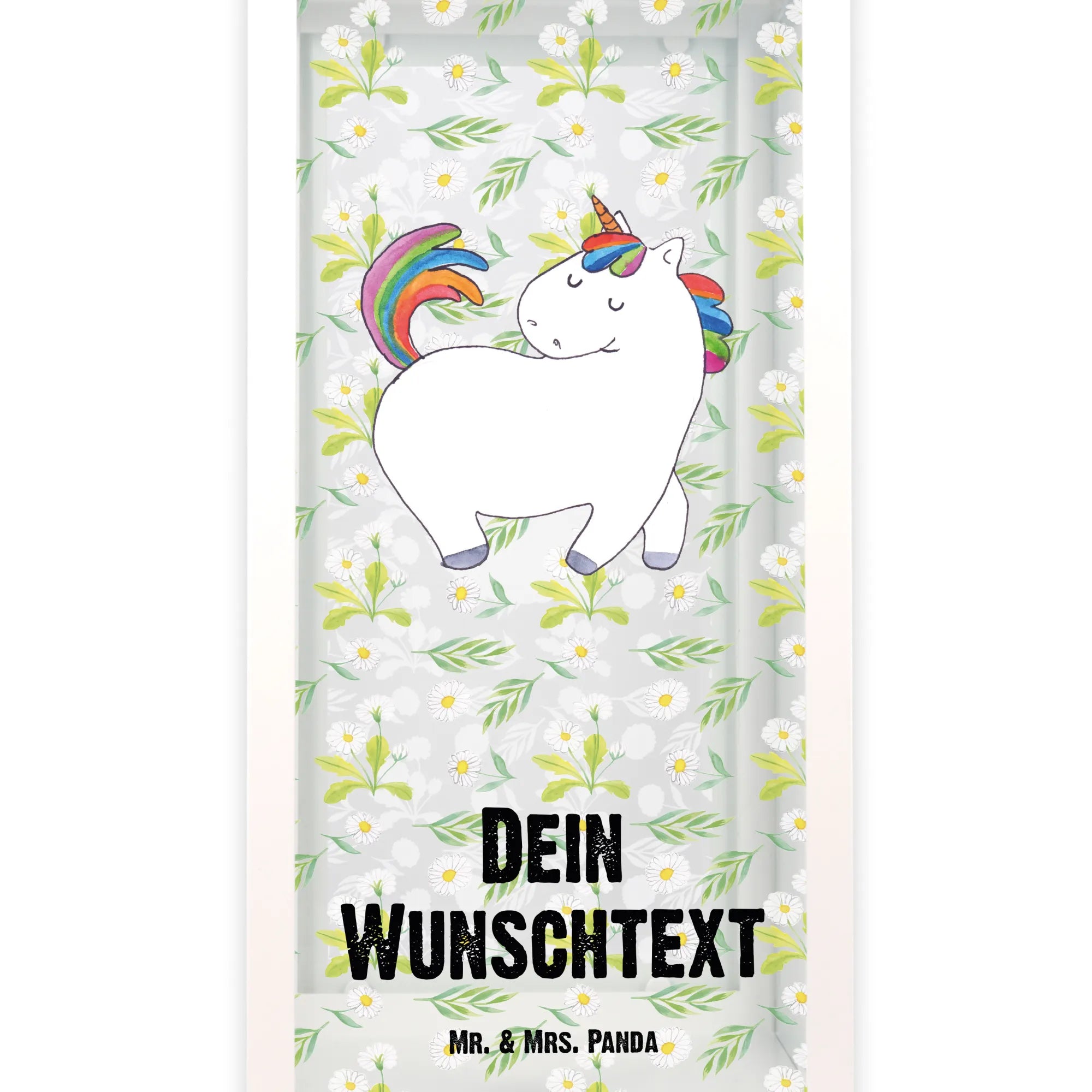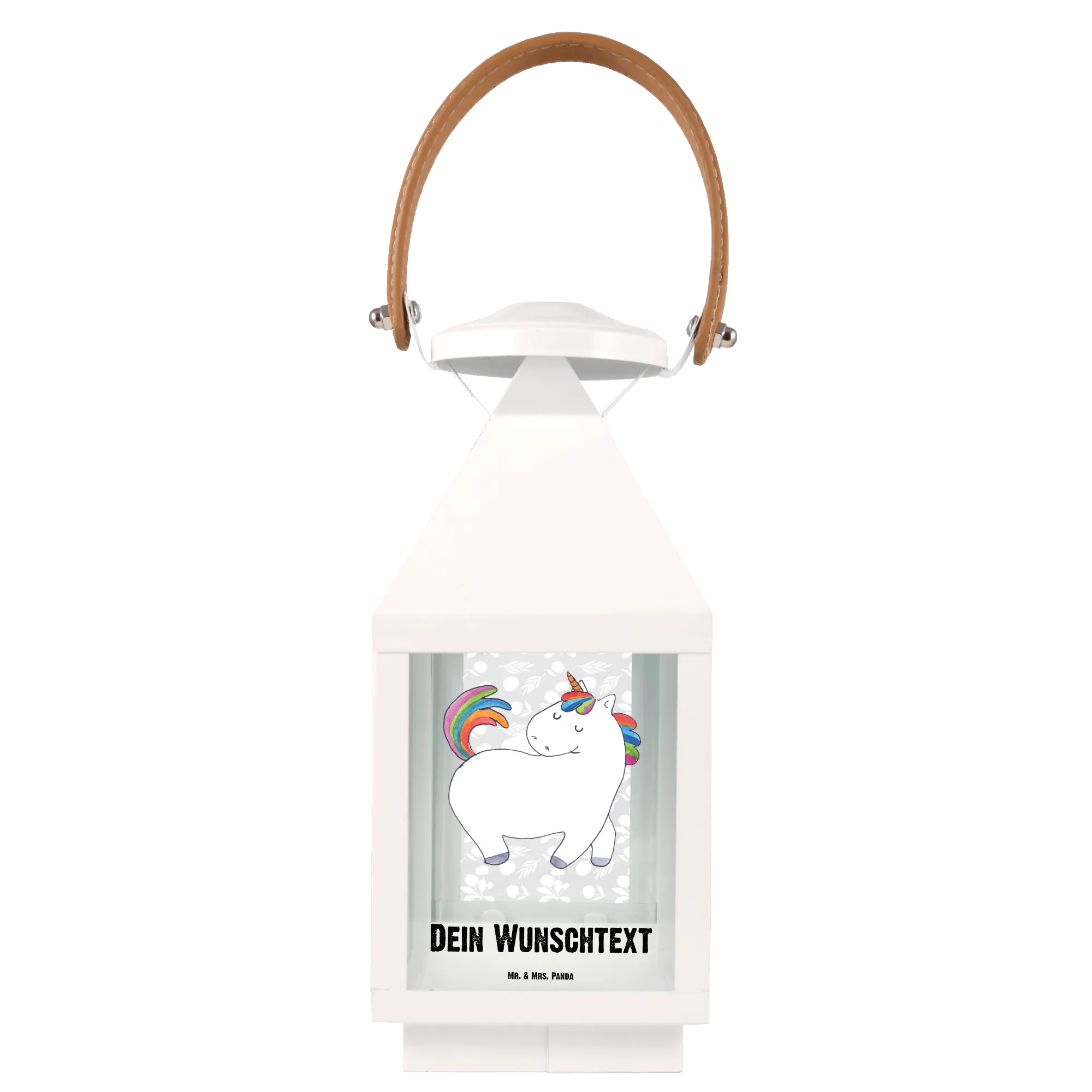 Bring ein Stückchen Zauber in dein Leben mit der personalisierten Deko Laterne "Einhorn stolzierend" von Mr. & Mrs. Panda.