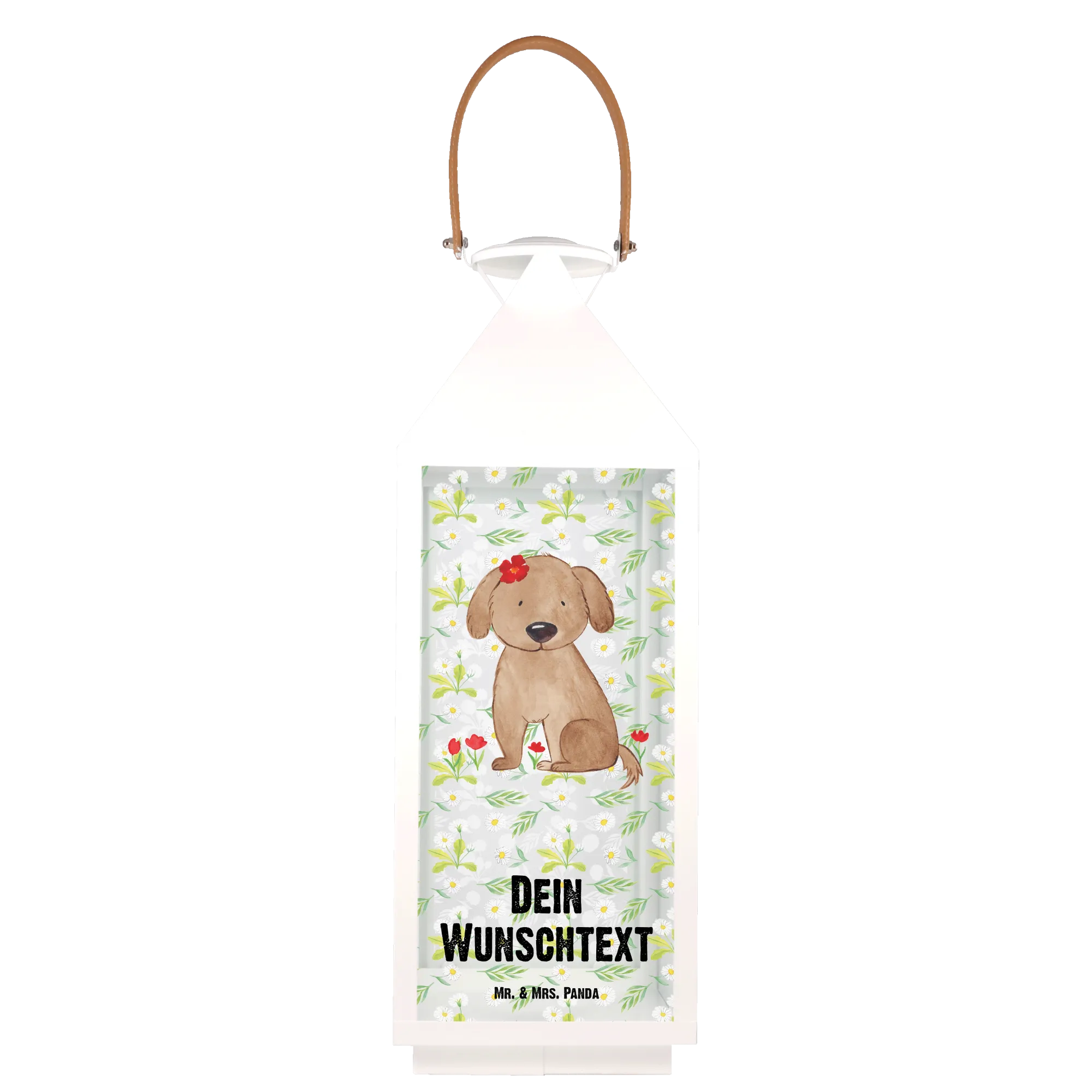 Die personalisierte Deko Laterne "Hund Hundedame" von Mr. & Mrs. Panda ist nicht nur ein wunderschönes Deko-Element, sondern auch ein liebevolles Geschenk für jeden Hundebesitzer und Tierliebhaber.