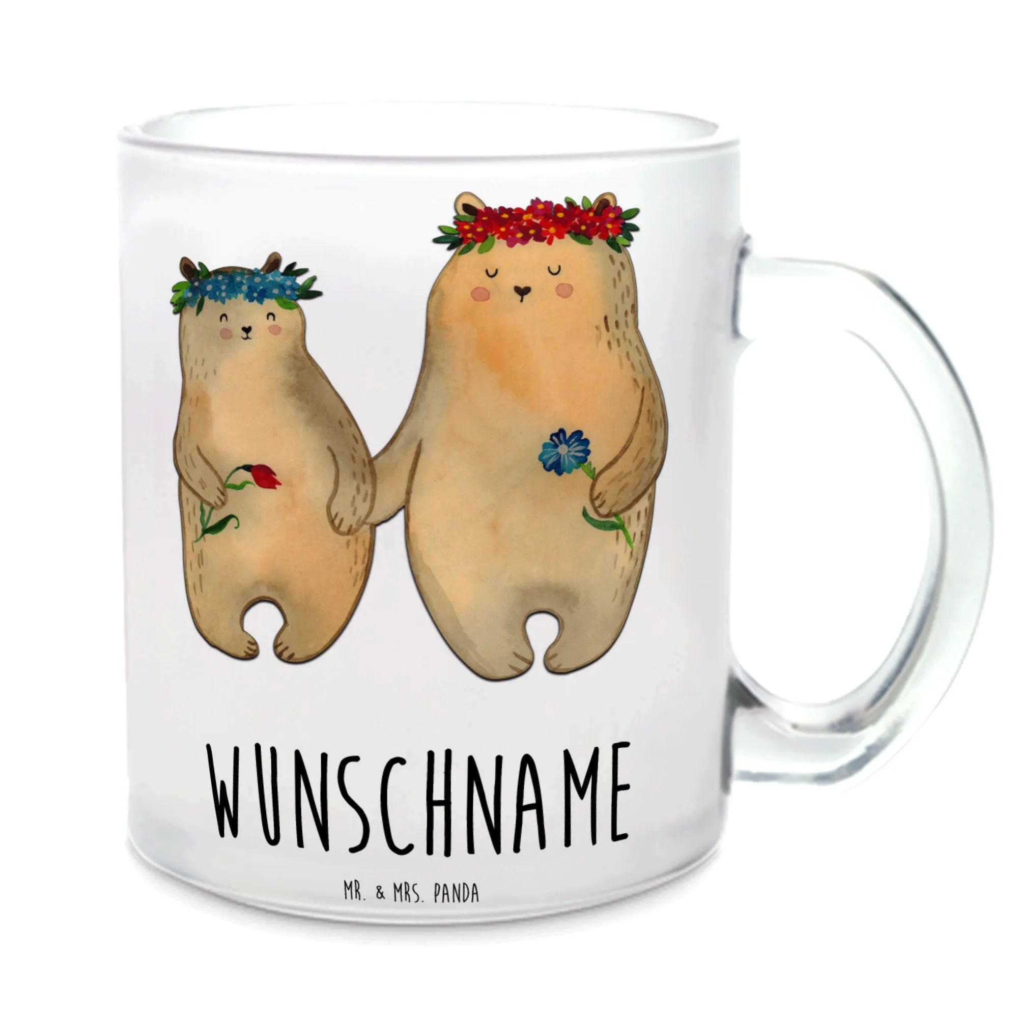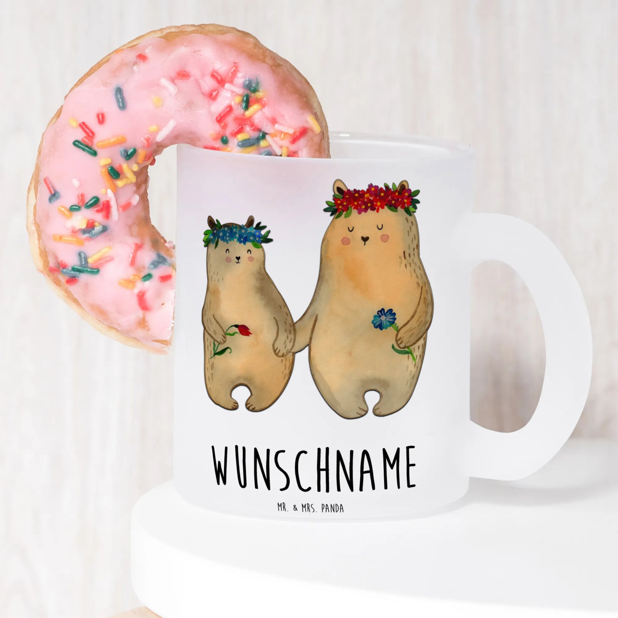 Personalisierte Teetasse Bären mit Blumenkranz – Mr. & Mrs. Panda