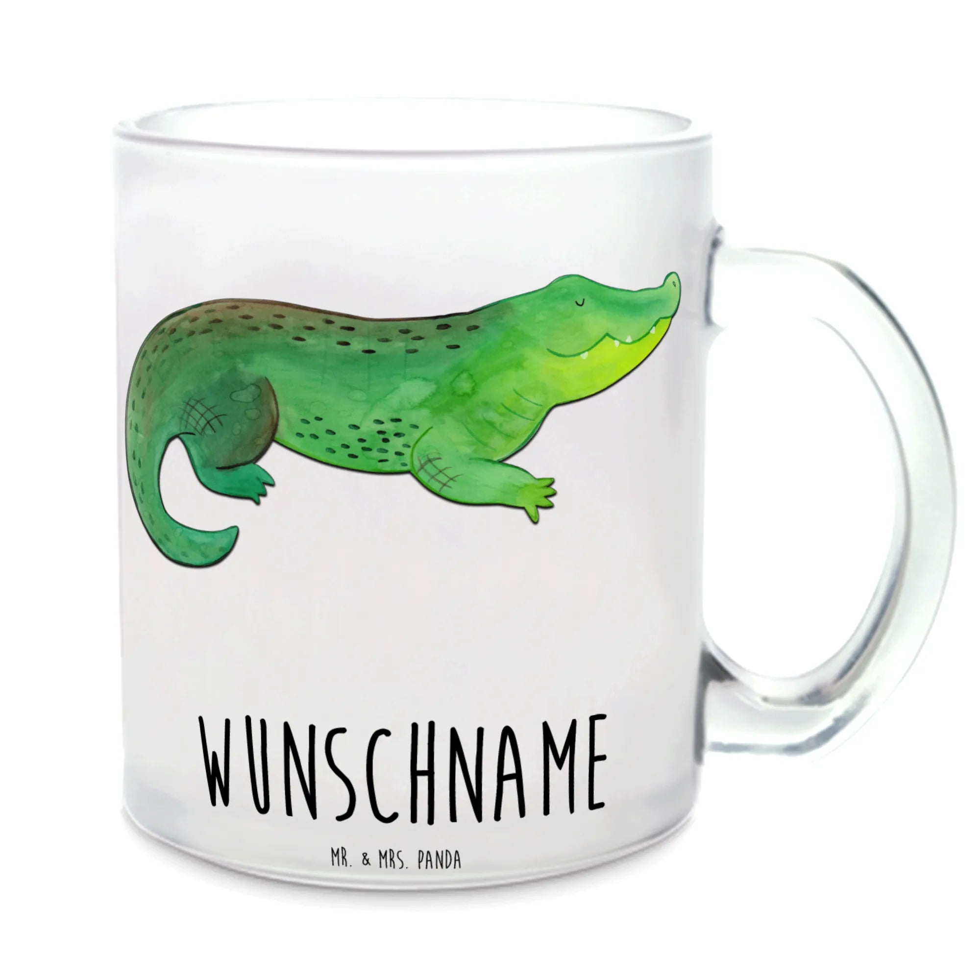 Suchst du das perfekte Geschenk für deinen Lieblingsmenschen? Dann ist unsere personalisierte Teetasse mit dem fröhlichen Krokodil-Motiv aus der Meerestiere-Kollektion genau das Richtige für dich!