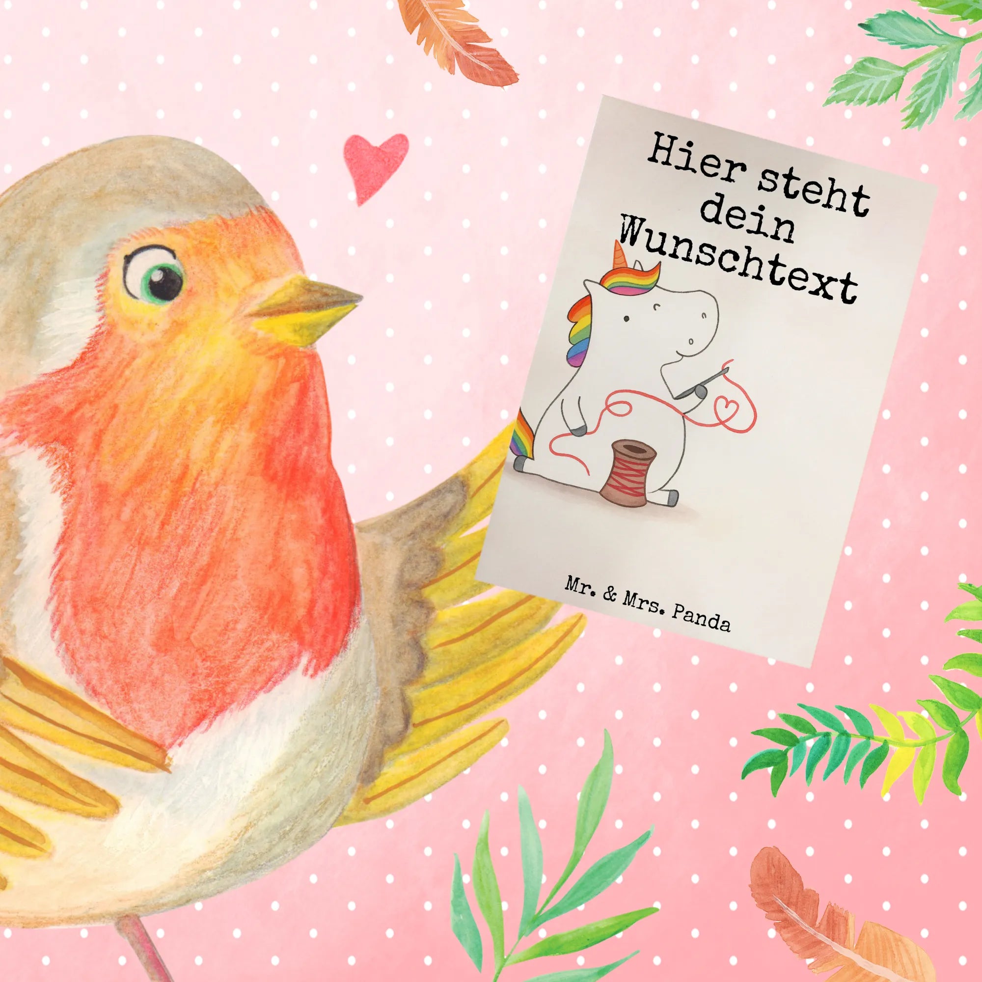 Zauberhafte personalisierte Grußkarte – Einhorn Näherin