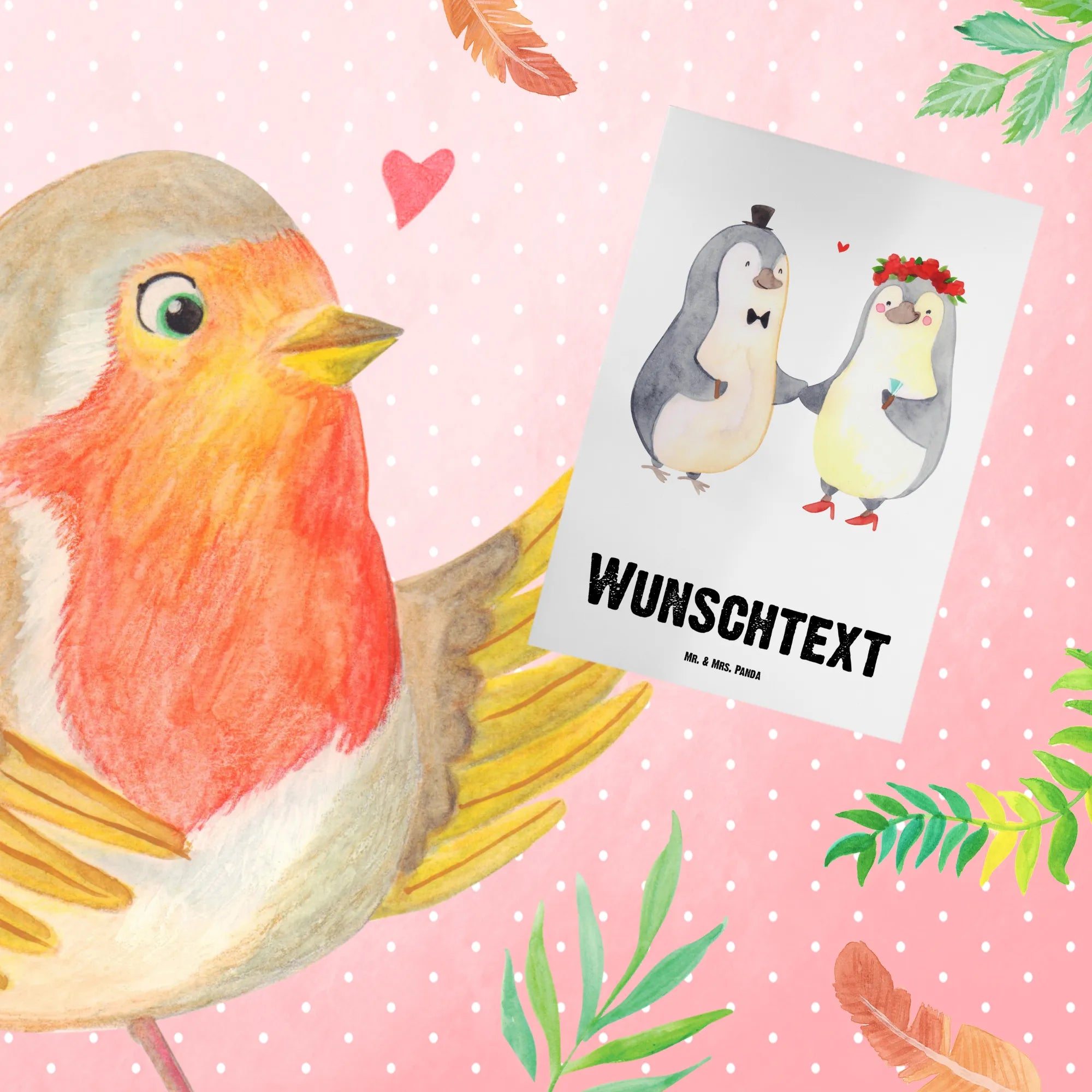Spersonalizowana kartka z życzeniami ślub Pingwin