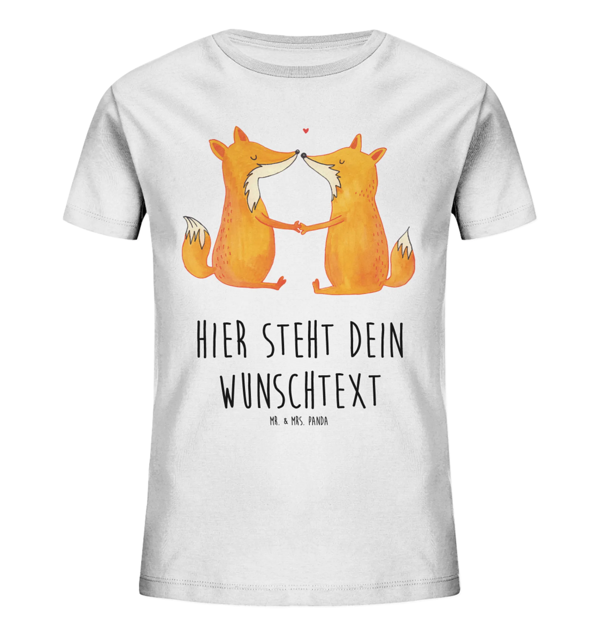 Dieses wunderschöne personalisierte Kinder T-Shirt von Mr. & Mrs. Panda mit dem süßen Füchse Liebe Motiv ist das perfekte Geschenk für kleine Herzchen! Hast du schon einmal Liebe auf den ersten Blick erlebt? Bei unseren niedlichen Füchsen, die freudig Hand in Hand sitzen und ihre Verbundenheit ausstrahlen, wirst du es sofort spüren.