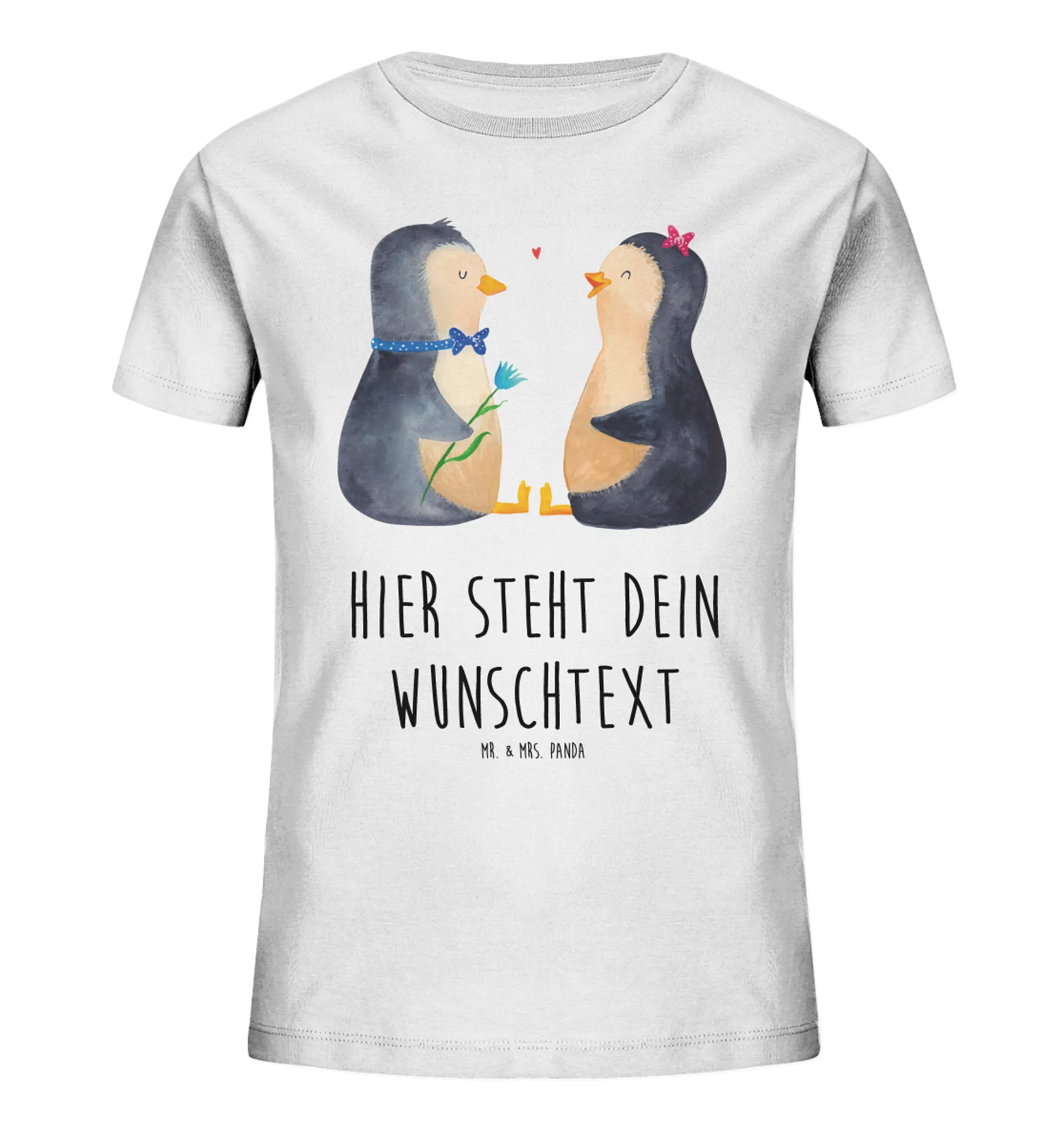 Das personalisierte Kinder T-Shirt mit dem süßen Pinguin Pärchen von Mr. & Mrs. Panda ist der perfekte Begleiter für kleine Herzchen! 🌟 Dieses T-Shirt vereint nicht nur höchste Qualität, sondern auch liebevolle Individualität.