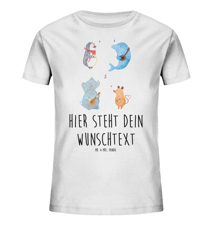 Entdecke das wunderschöne personalisierte Kinder T-Shirt mit dem Big Band Motiv aus der beliebten Small World Kollektion von Mr. & Mrs. Panda! Dieses T-Shirt ist nicht nur ein modisches Highlight, sondern auch ein ganz persönliches Geschenk, das die kleinen Musikliebhaber begeistern wird. Mit dem lustigen Motiv eines Pinguins, einer Maus, einem Delfin und einem Elefanten, die gemeinsam musizieren, wird dieses Shirt zum perfekten Begleiter für alle kleinen Künstler und Musikfans.
